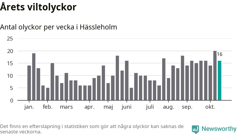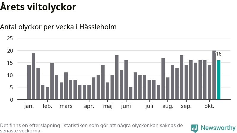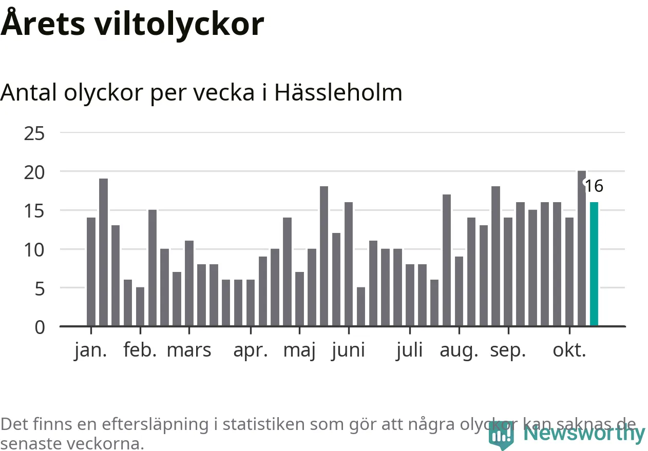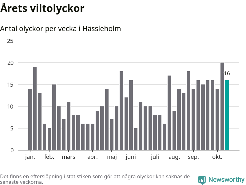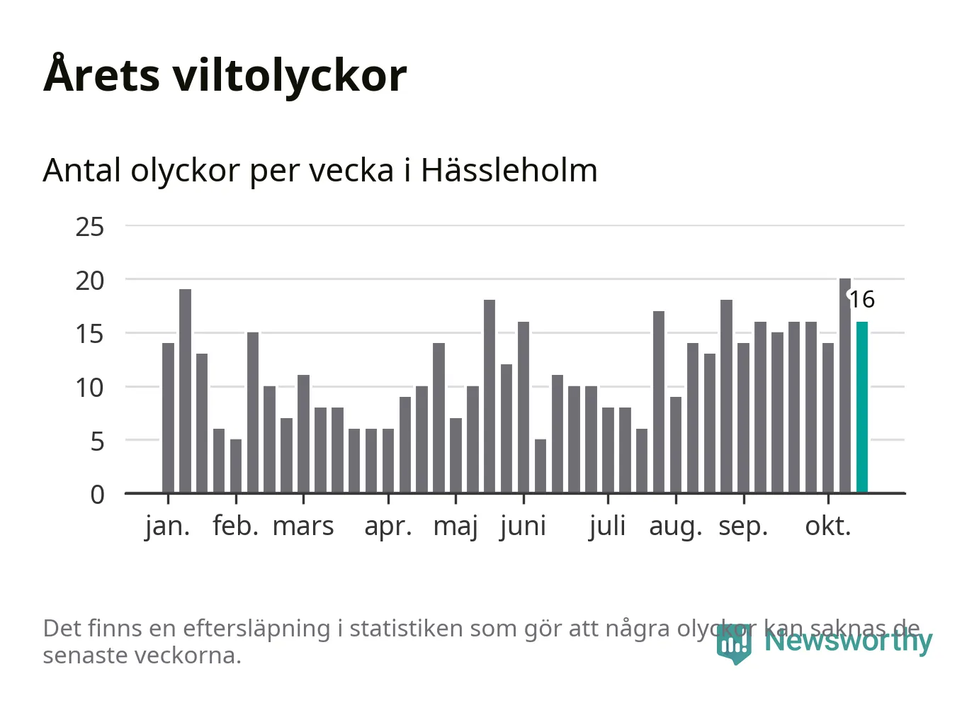 Hittills har 16 viltolyckor rapporterats in i Hässleholms kommun från vecka 43. Se listan här.
