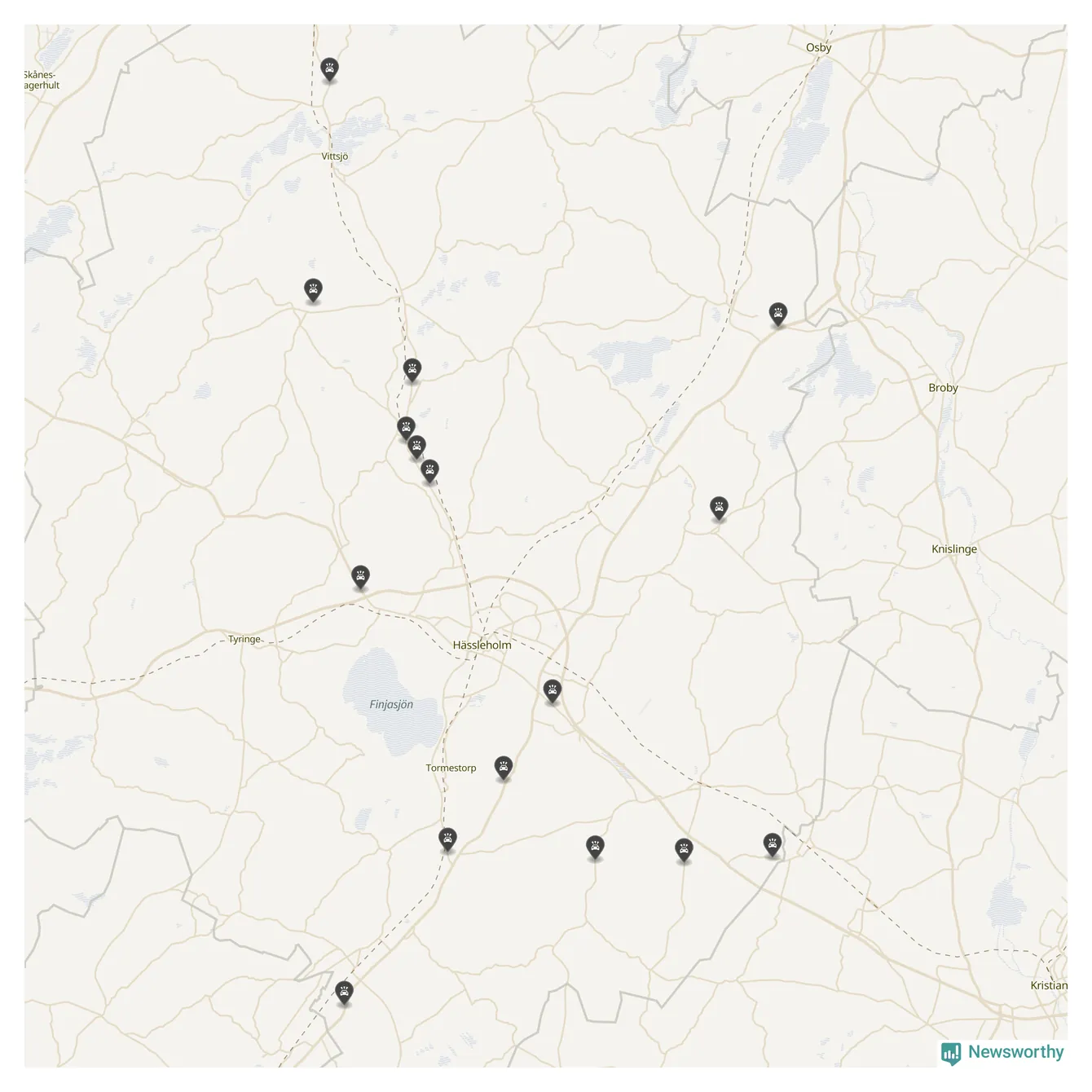 Här inträffade viltolyckorna i Hässleholm förra veckan