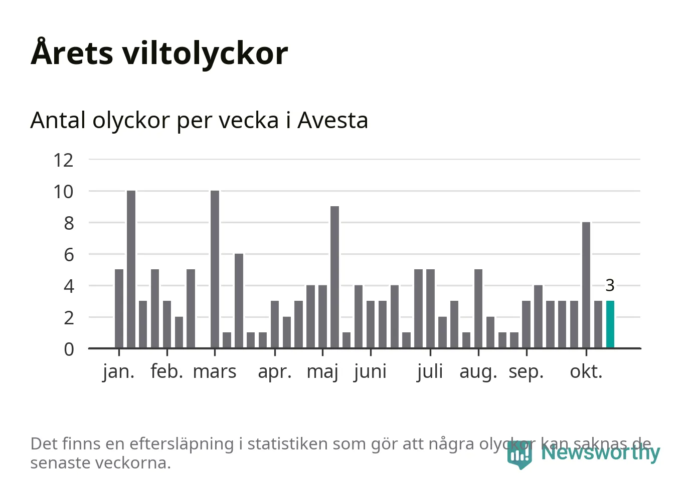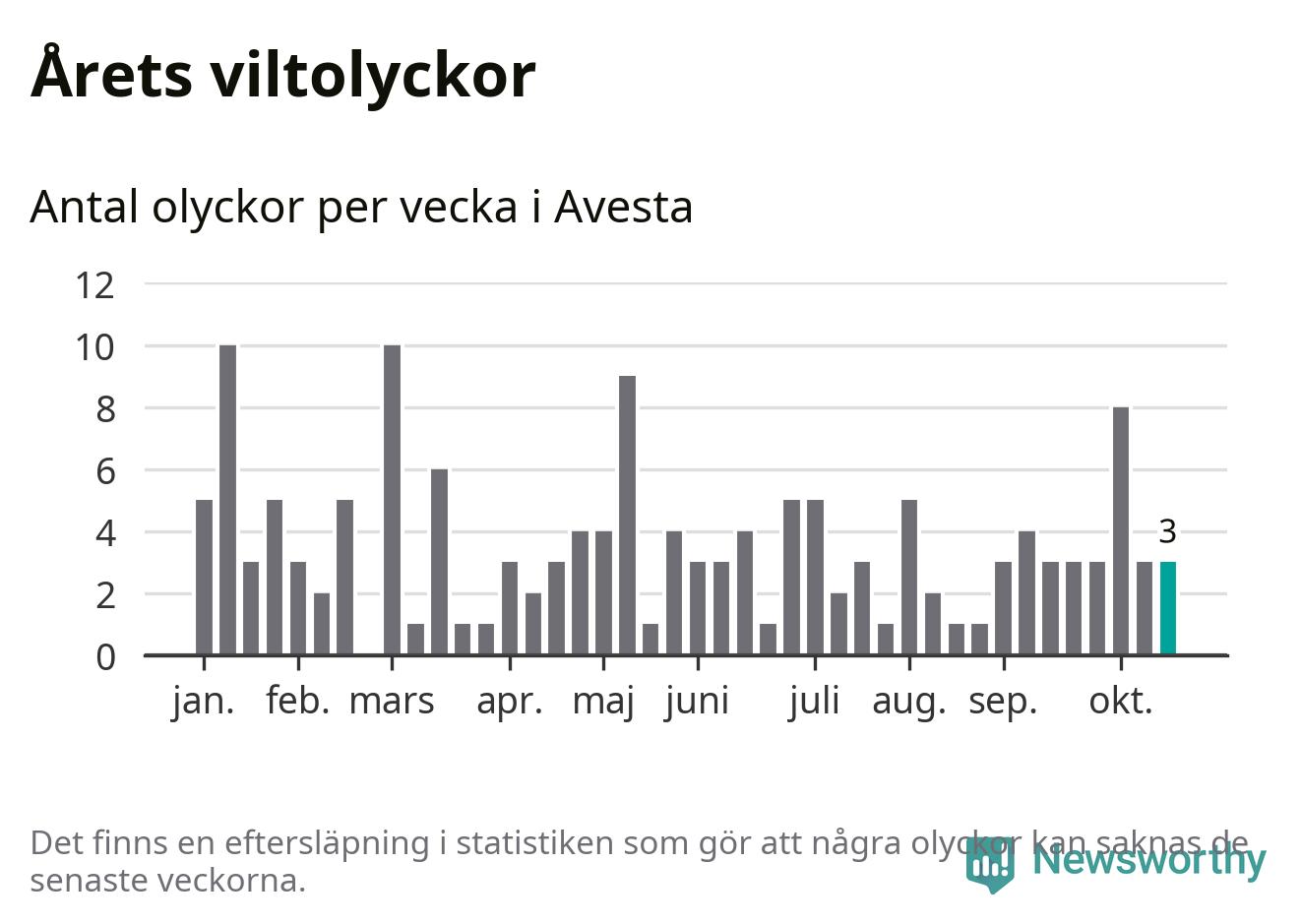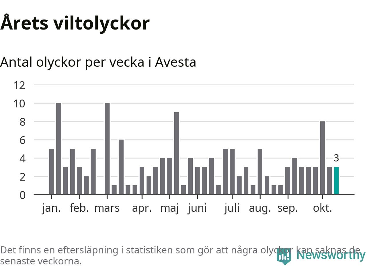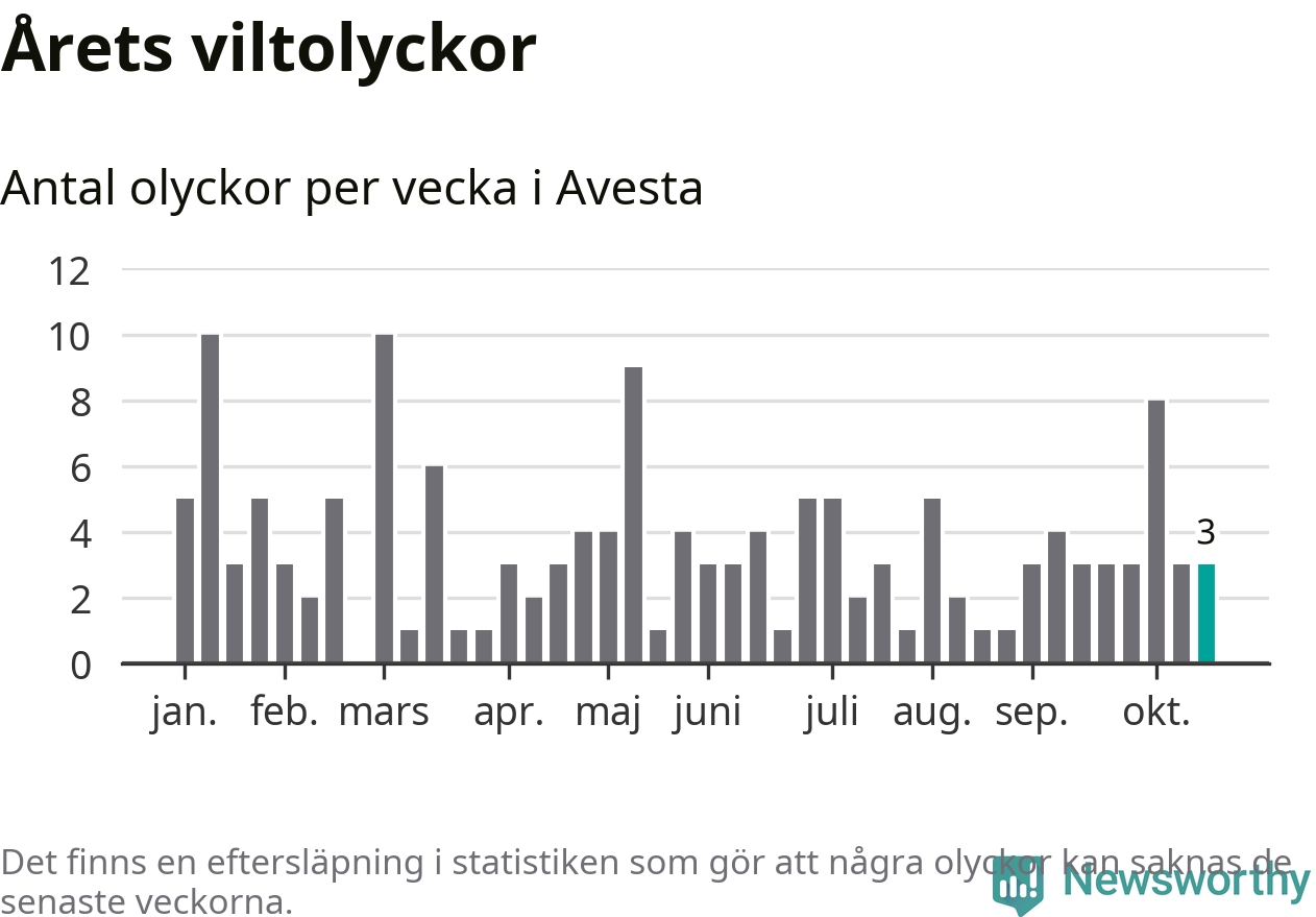 Hittills har tre viltolyckor rapporterats in i Avesta kommun från vecka 43. Se listan här.
