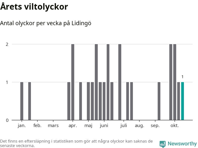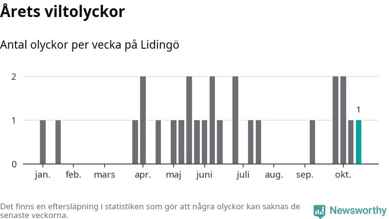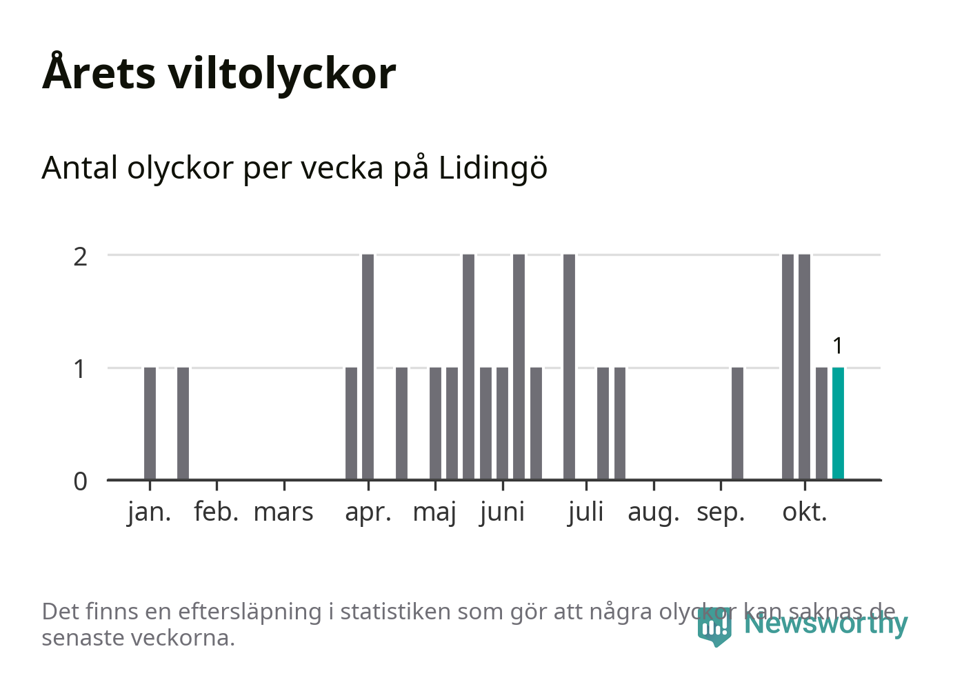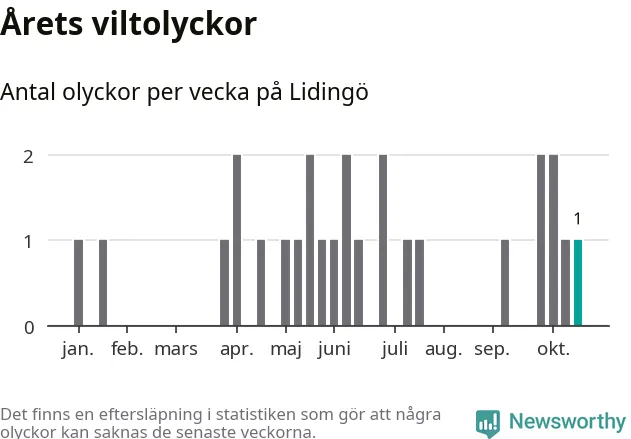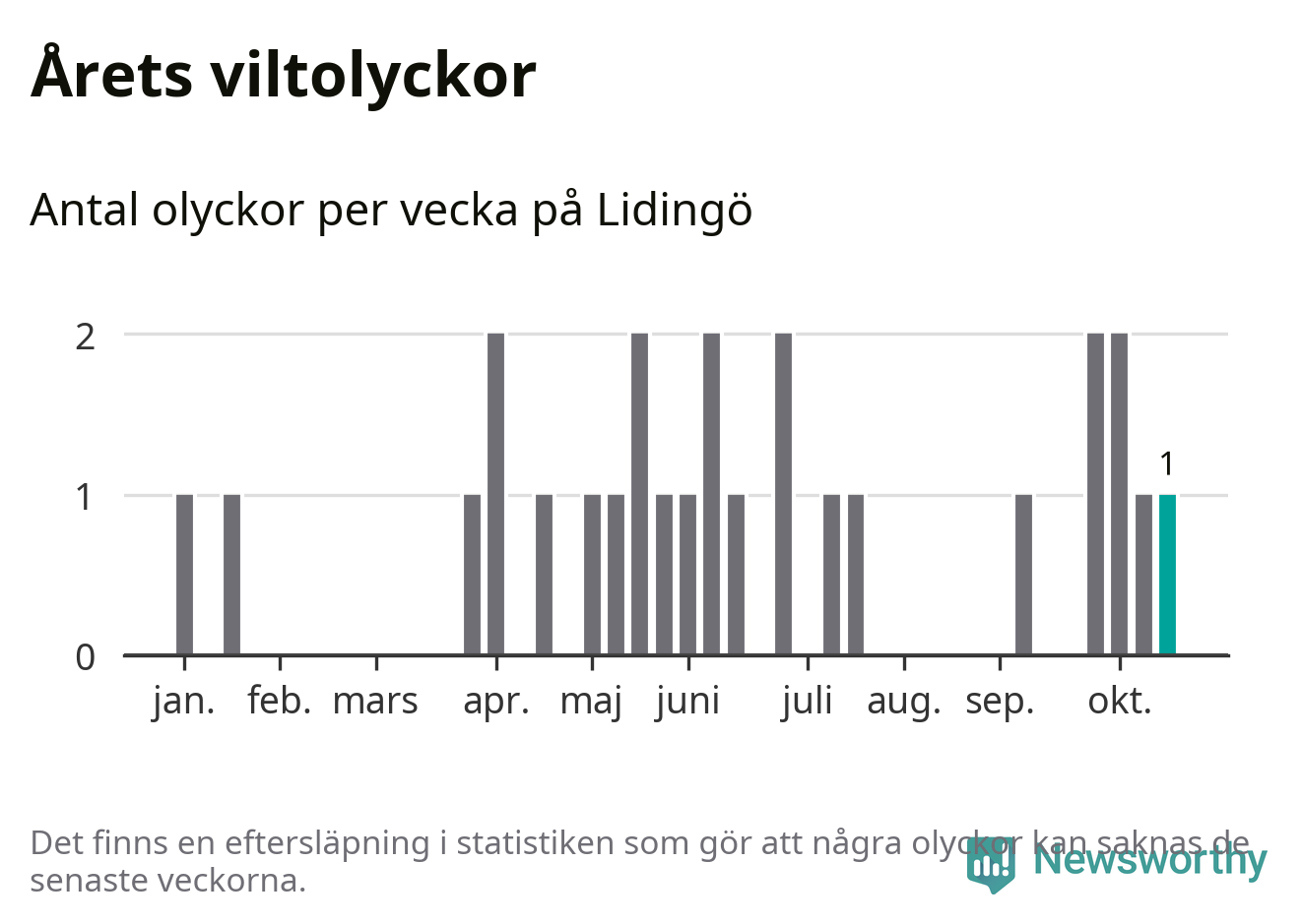 Från förra veckan (vecka 43) har hittills en viltolycka rapporterats in i Lidingö kommun.