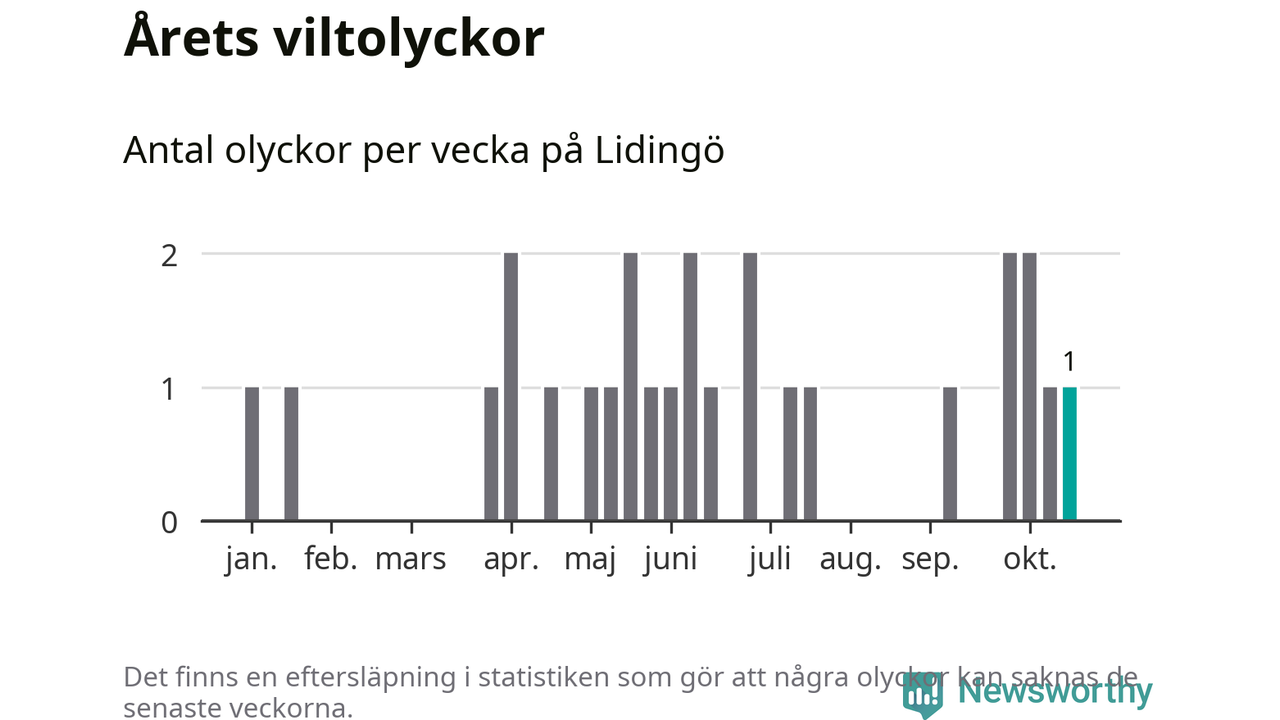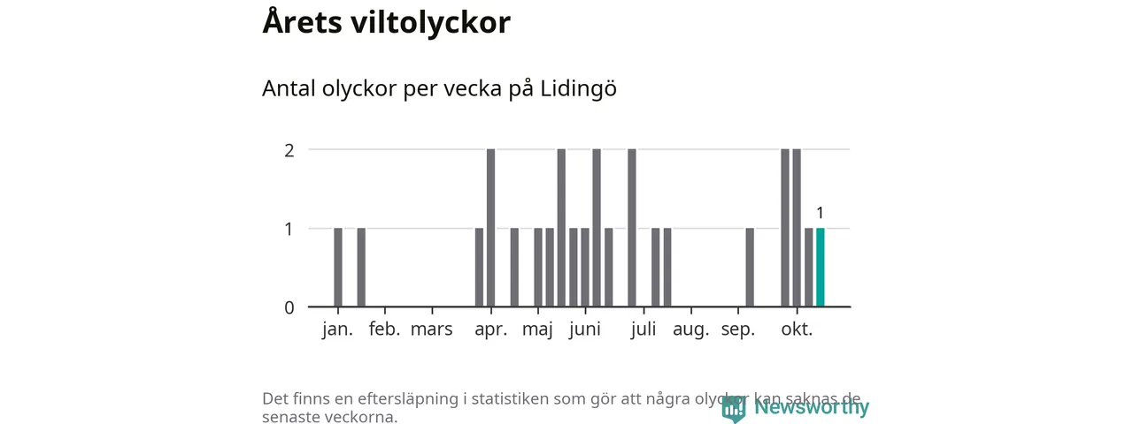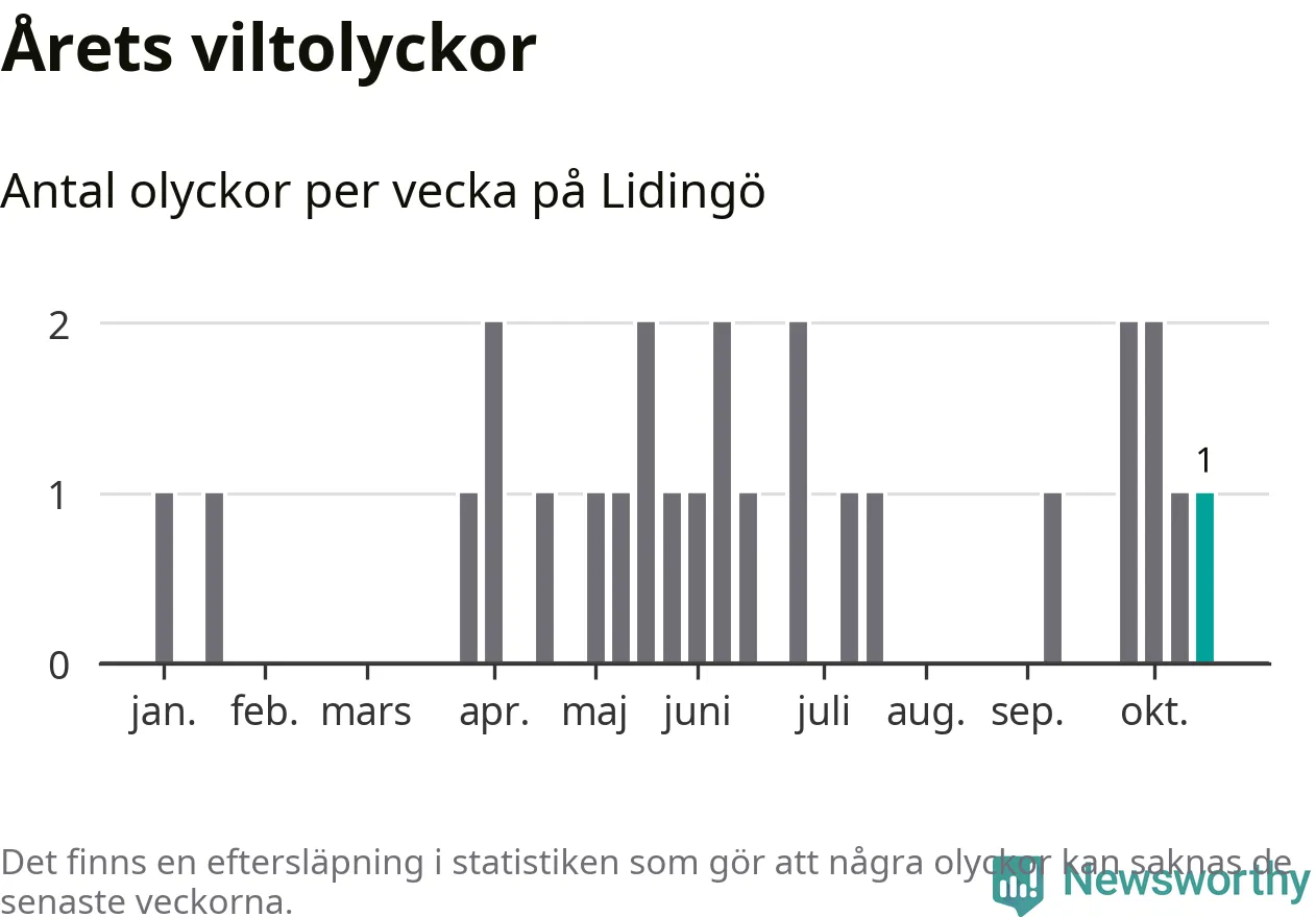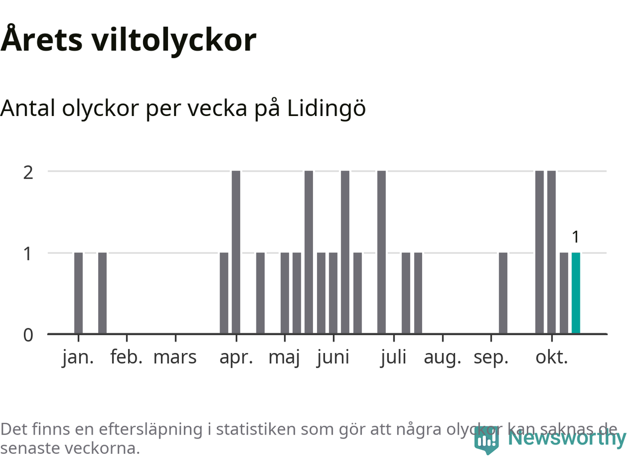 Från förra veckan (vecka 43) har hittills en viltolycka rapporterats in i Lidingö kommun.