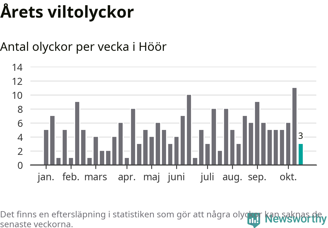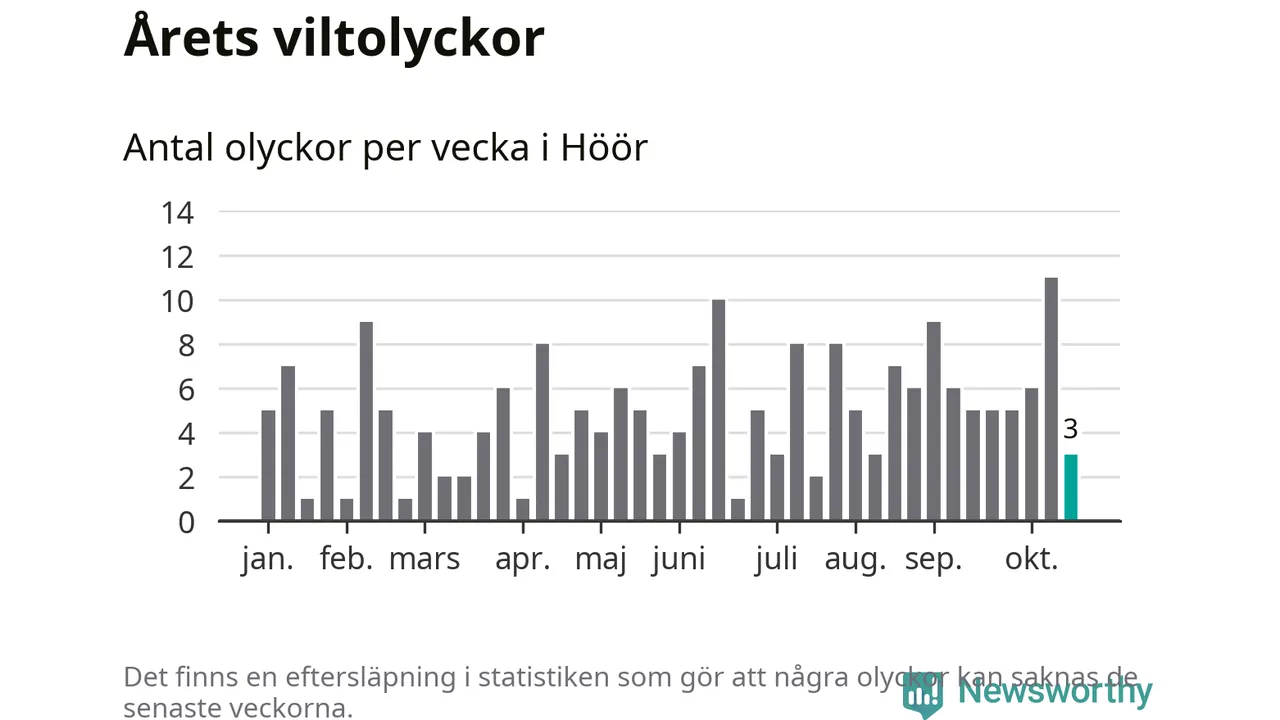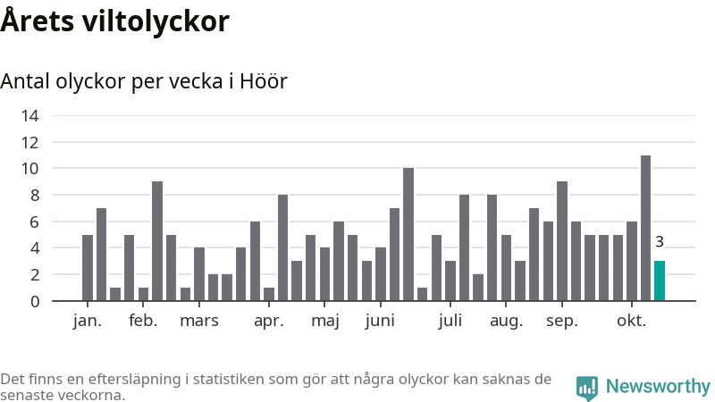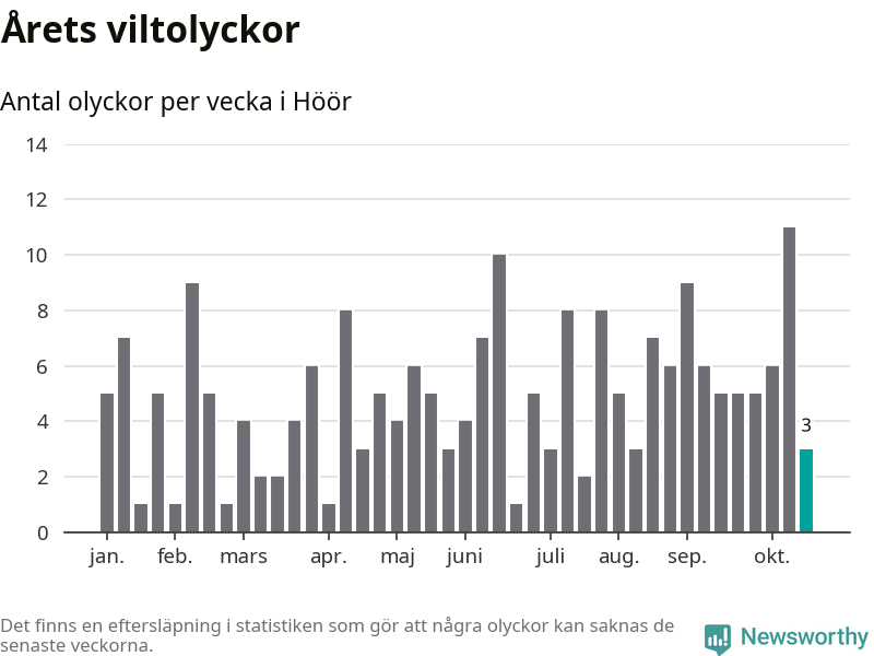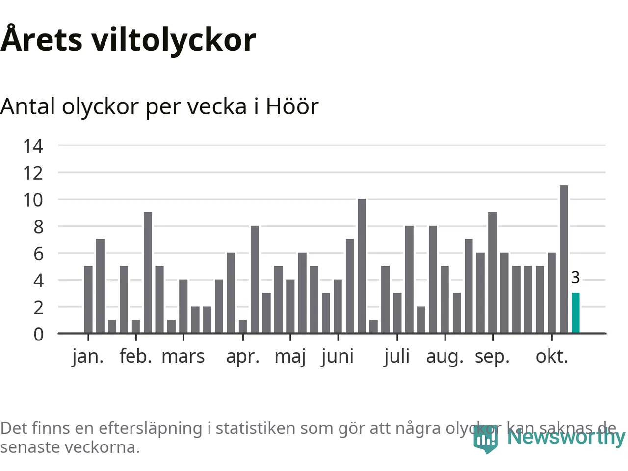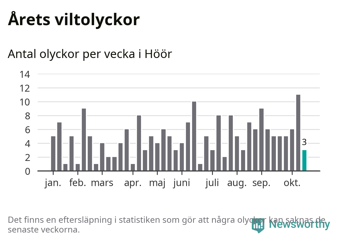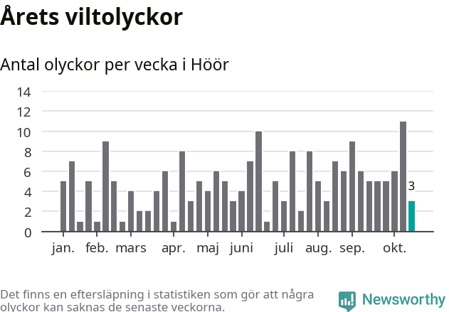 Hittills har tre viltolyckor rapporterats in i Höörs kommun från vecka 43. Se listan här.
