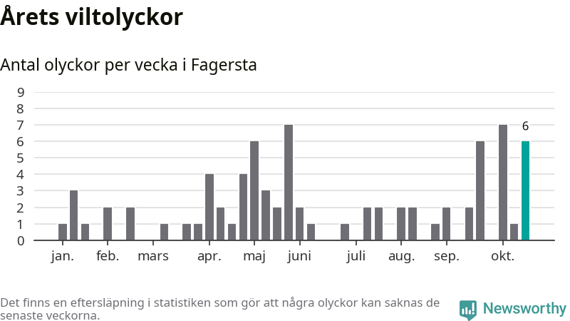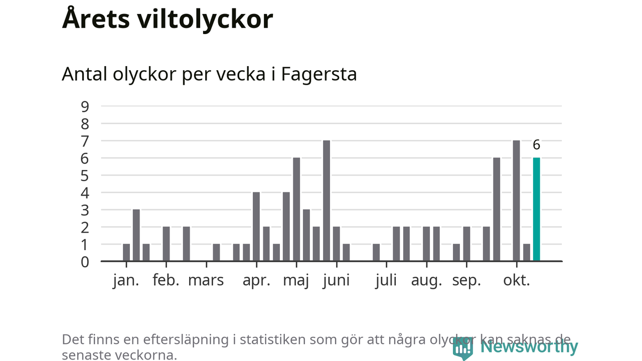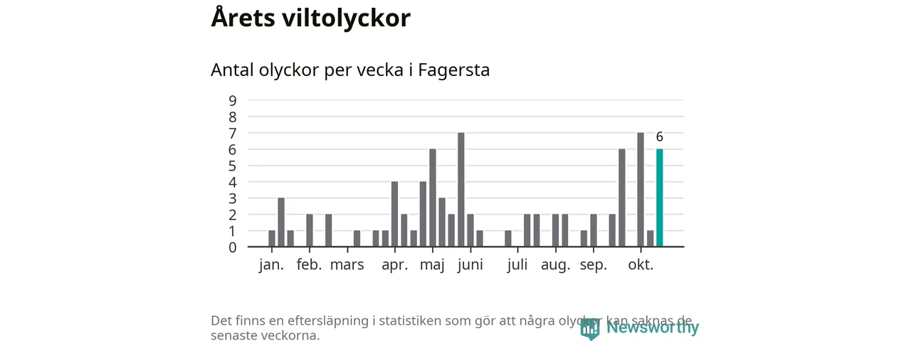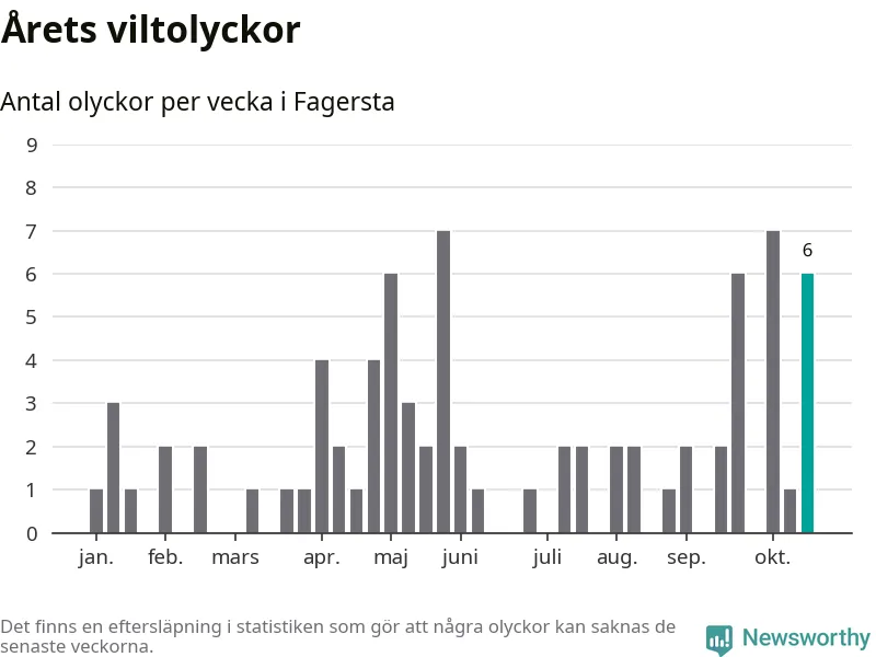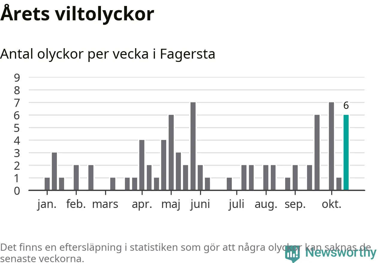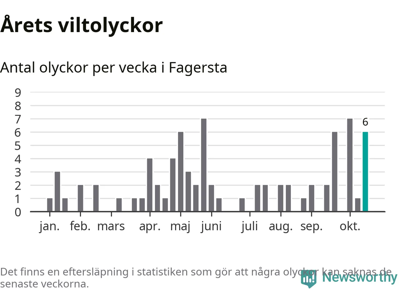 Hittills har sex viltolyckor rapporterats in i Fagersta kommun från vecka 43. Se listan här.