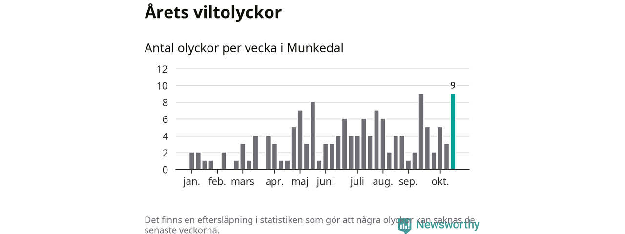 Nio olyckor på en enda vecka är också ovanligt många. Bara en gång tidigare sedan 2015 har det skett