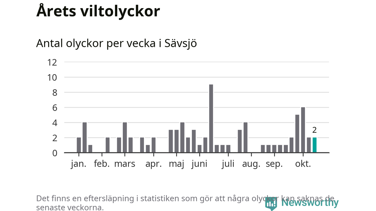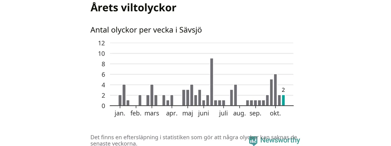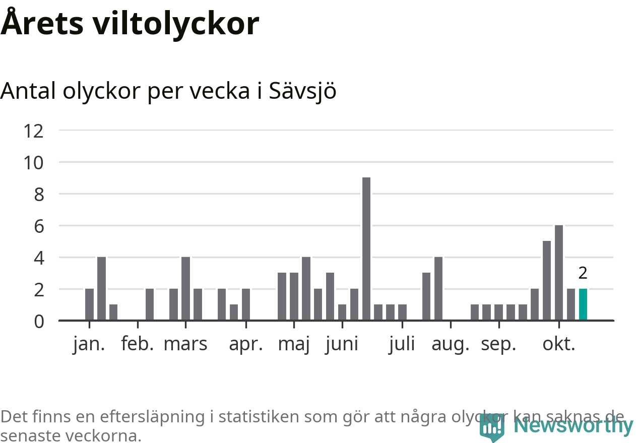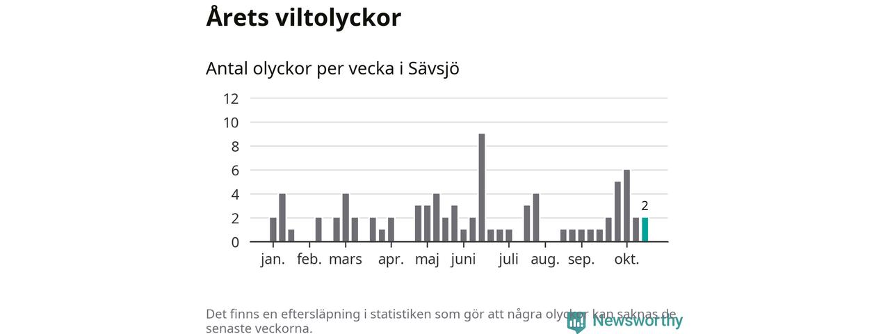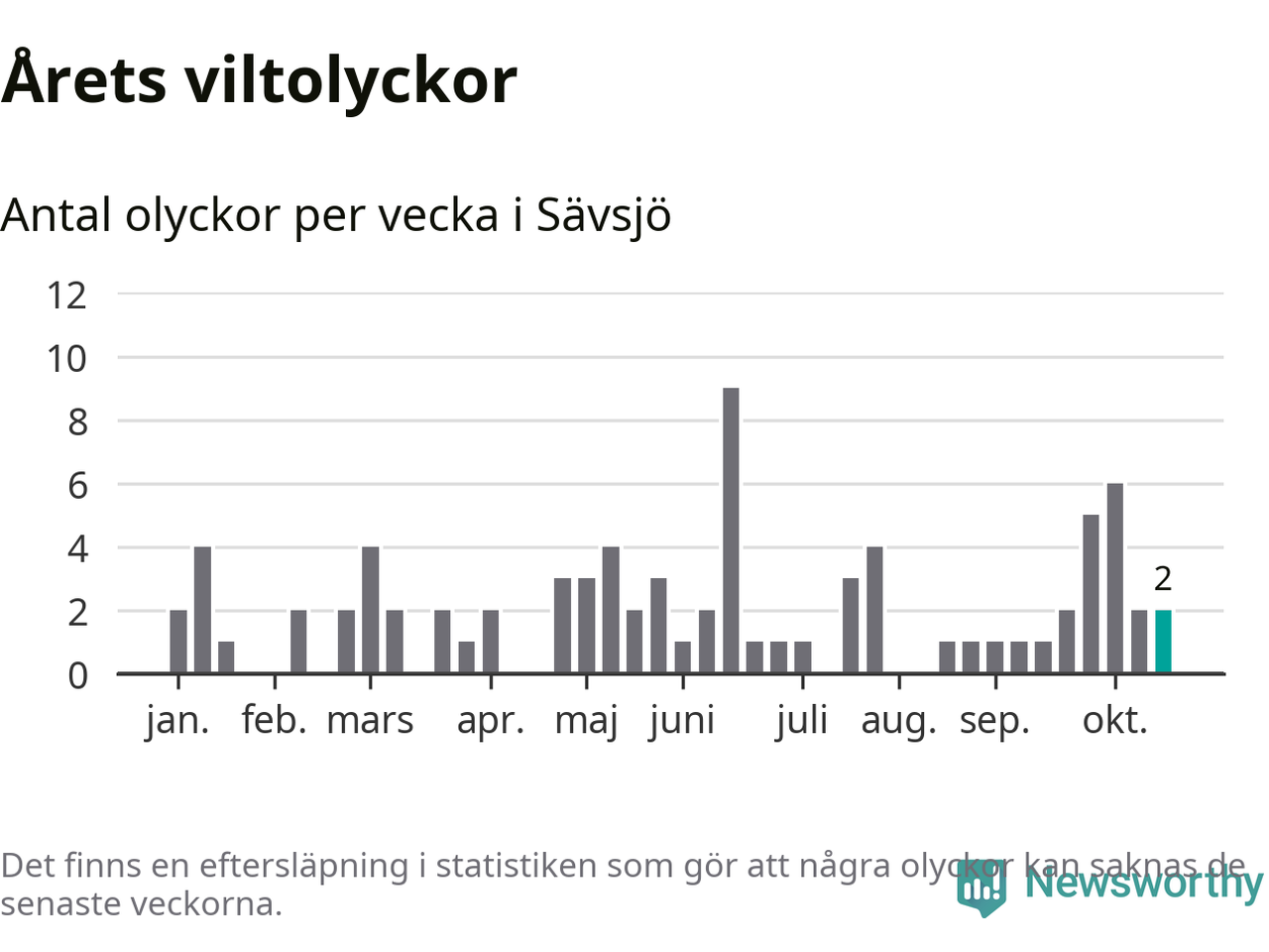 Hittills har två viltolyckor rapporterats in i Sävsjö kommun från vecka 43. Se listan här.