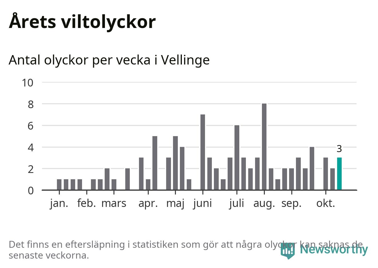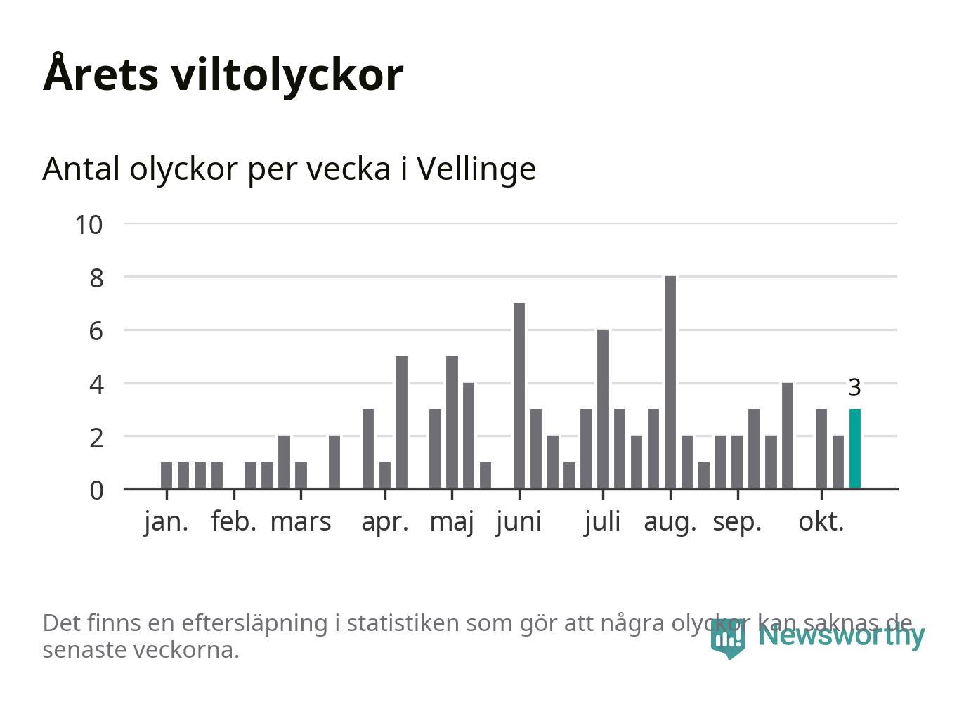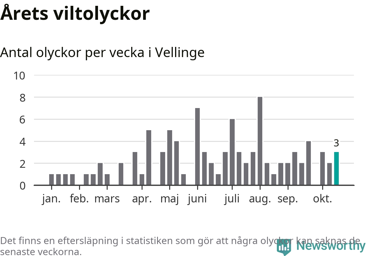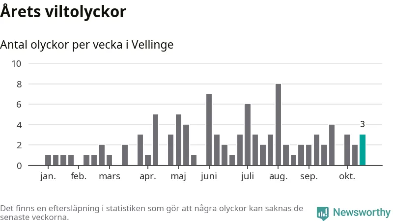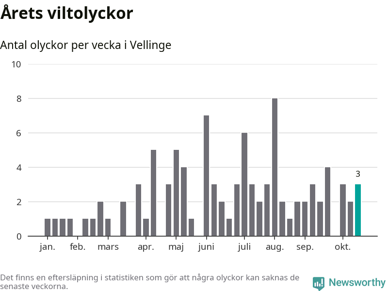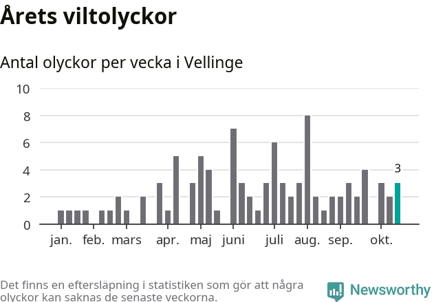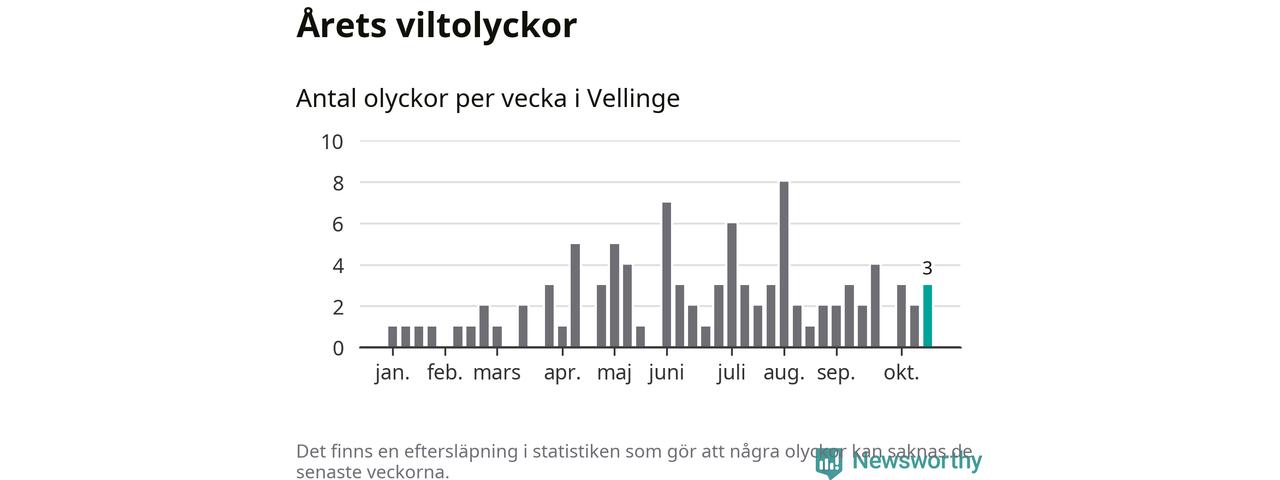 Hittills har tre viltolyckor rapporterats in i Vellinge kommun från vecka 43. Se listan här.