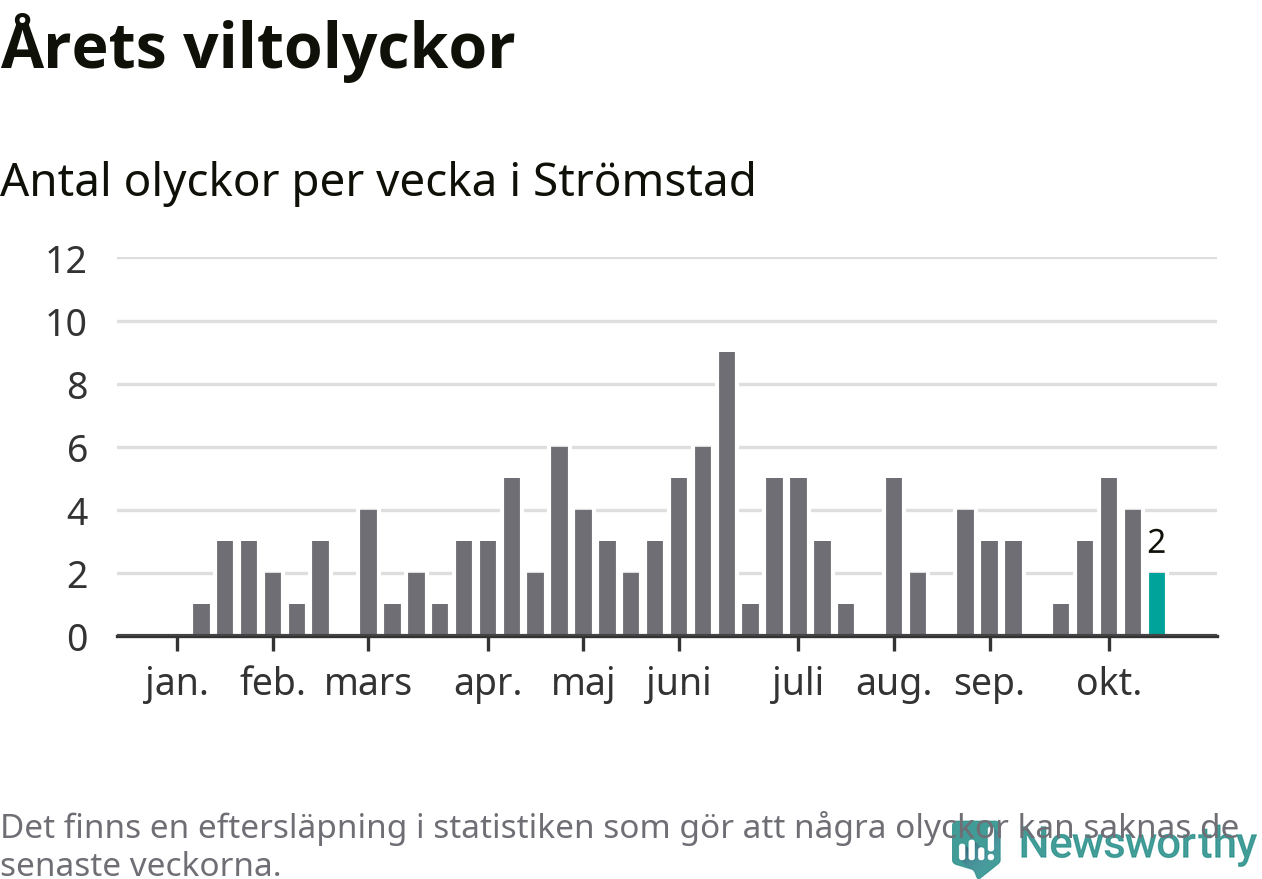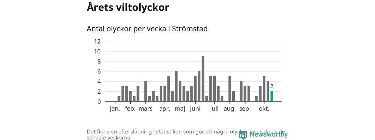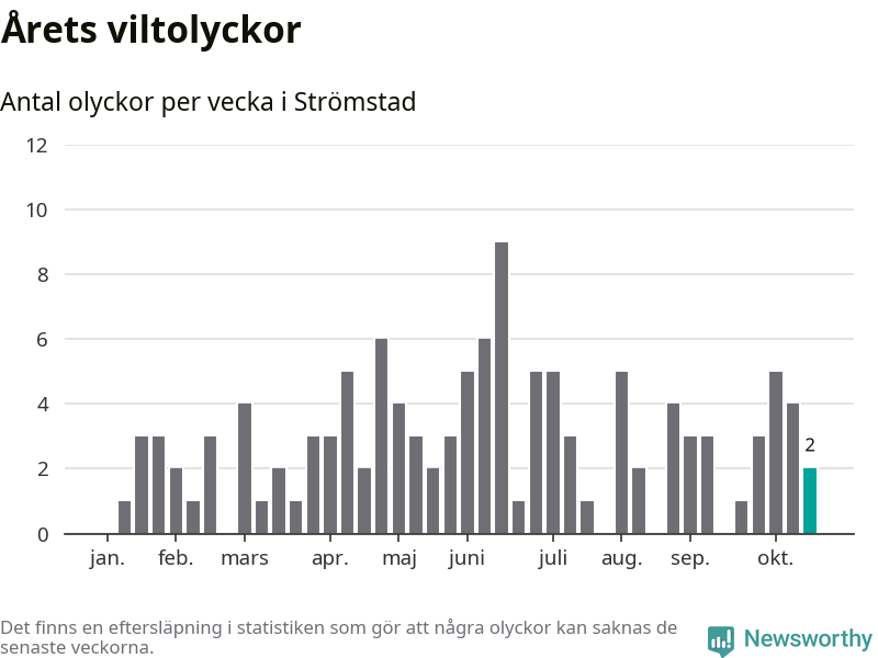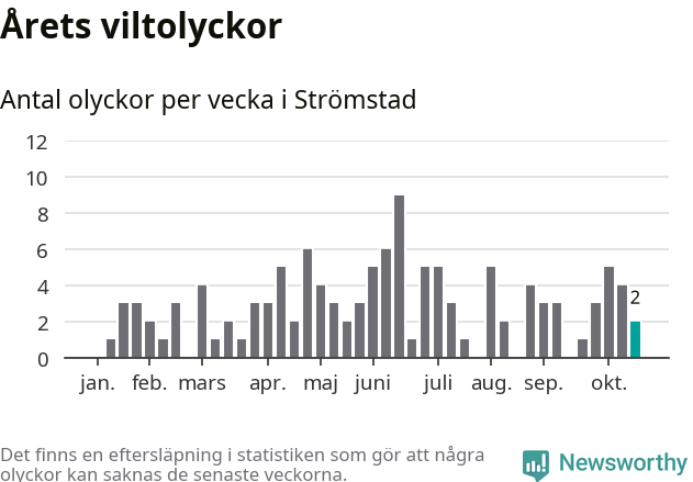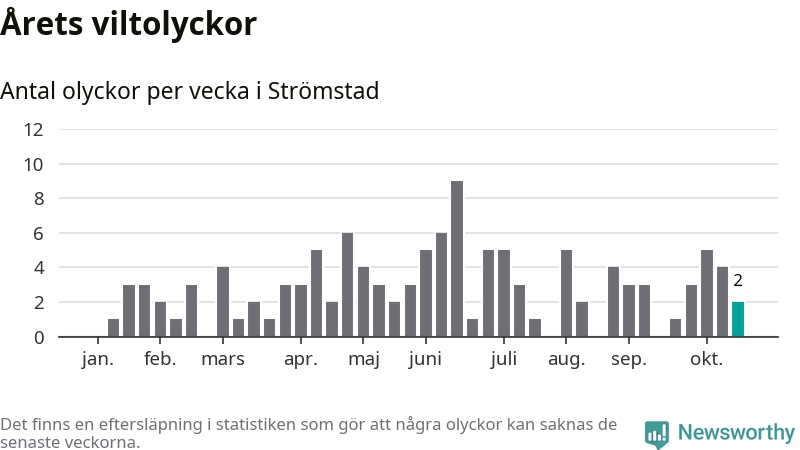 Hittills har två viltolyckor rapporterats in i Strömstads kommun från vecka 43. Se listan här.