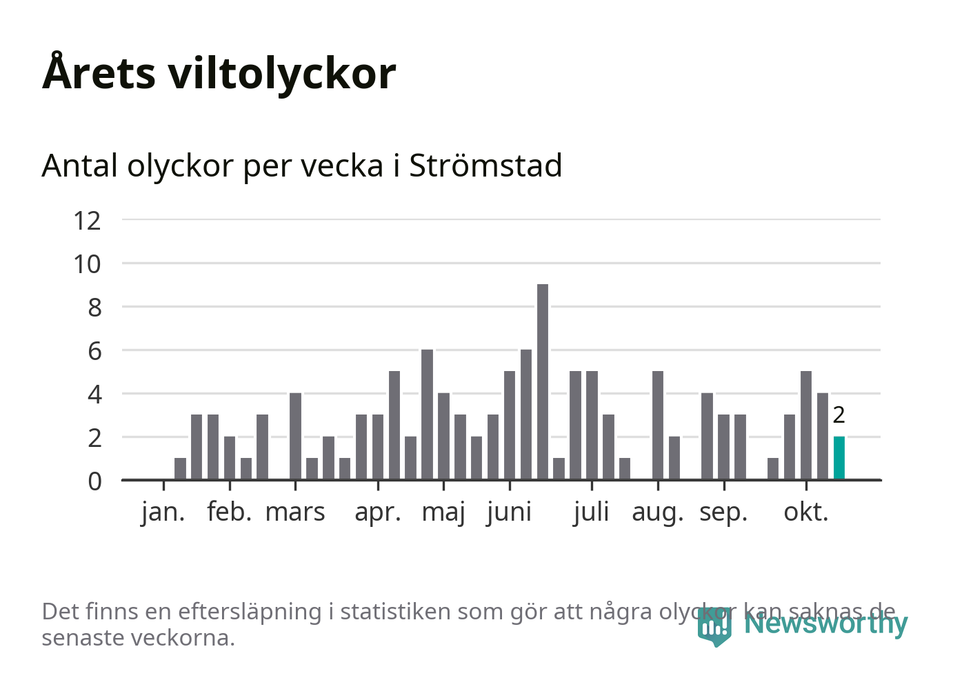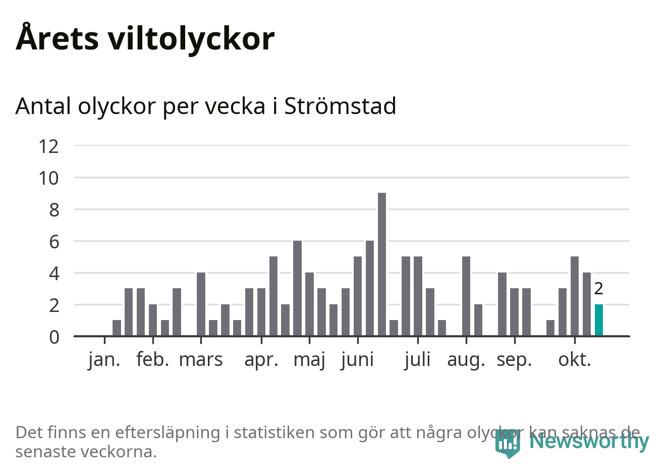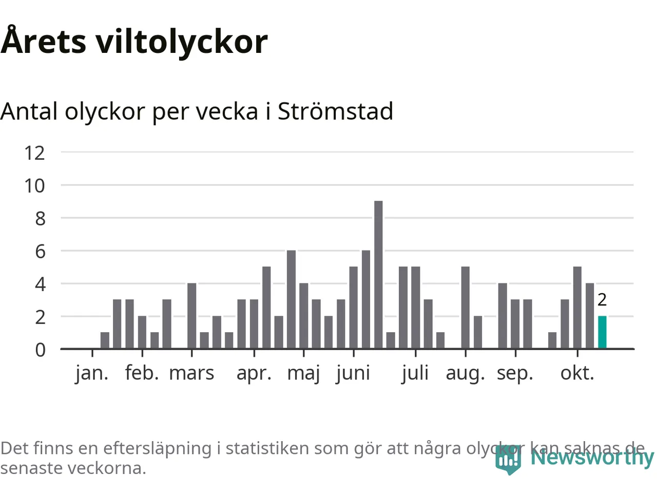 Hittills har två viltolyckor rapporterats in i Strömstads kommun från vecka 43. Se listan här.