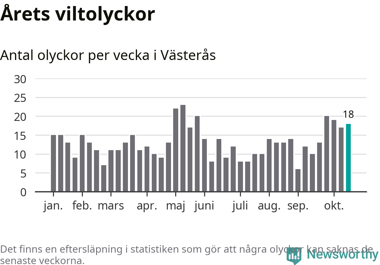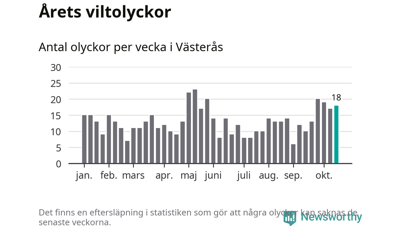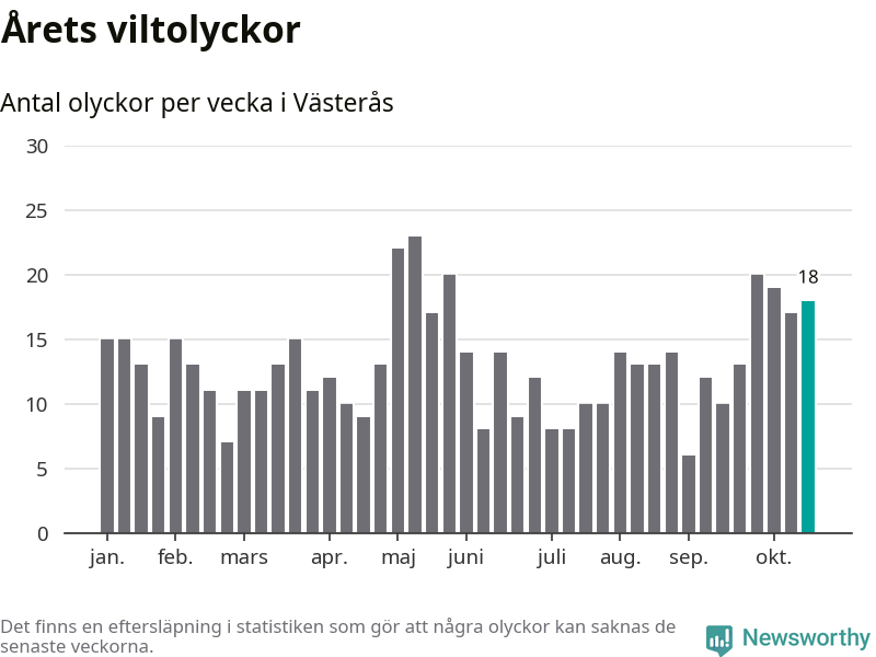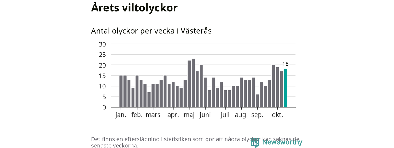 Hittills har 18 viltolyckor rapporterats in i Västerås kommun från vecka 43. Se listan här.
