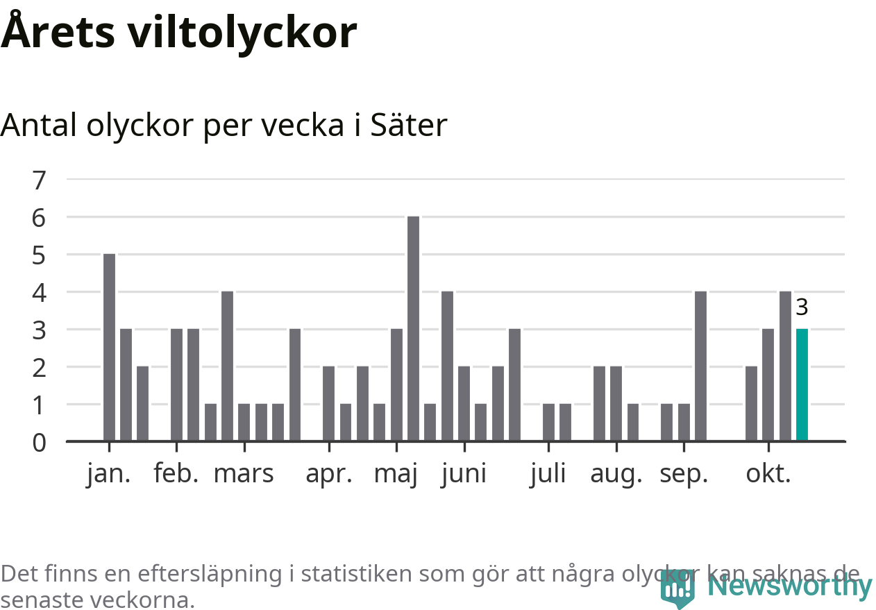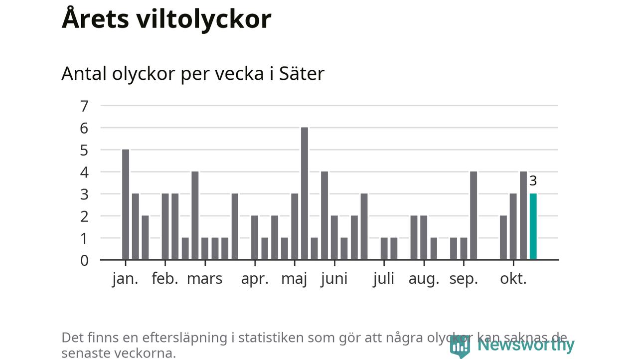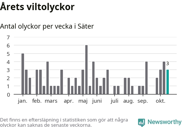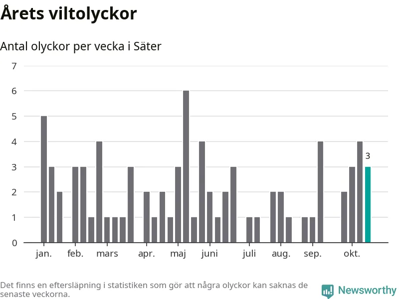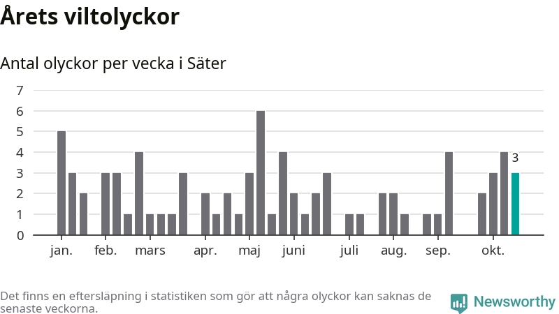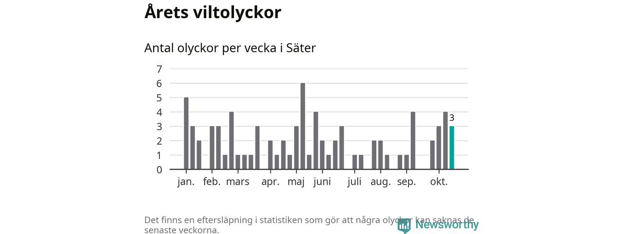 Hittills har tre viltolyckor rapporterats in i Säters kommun från vecka 43. Se listan här.