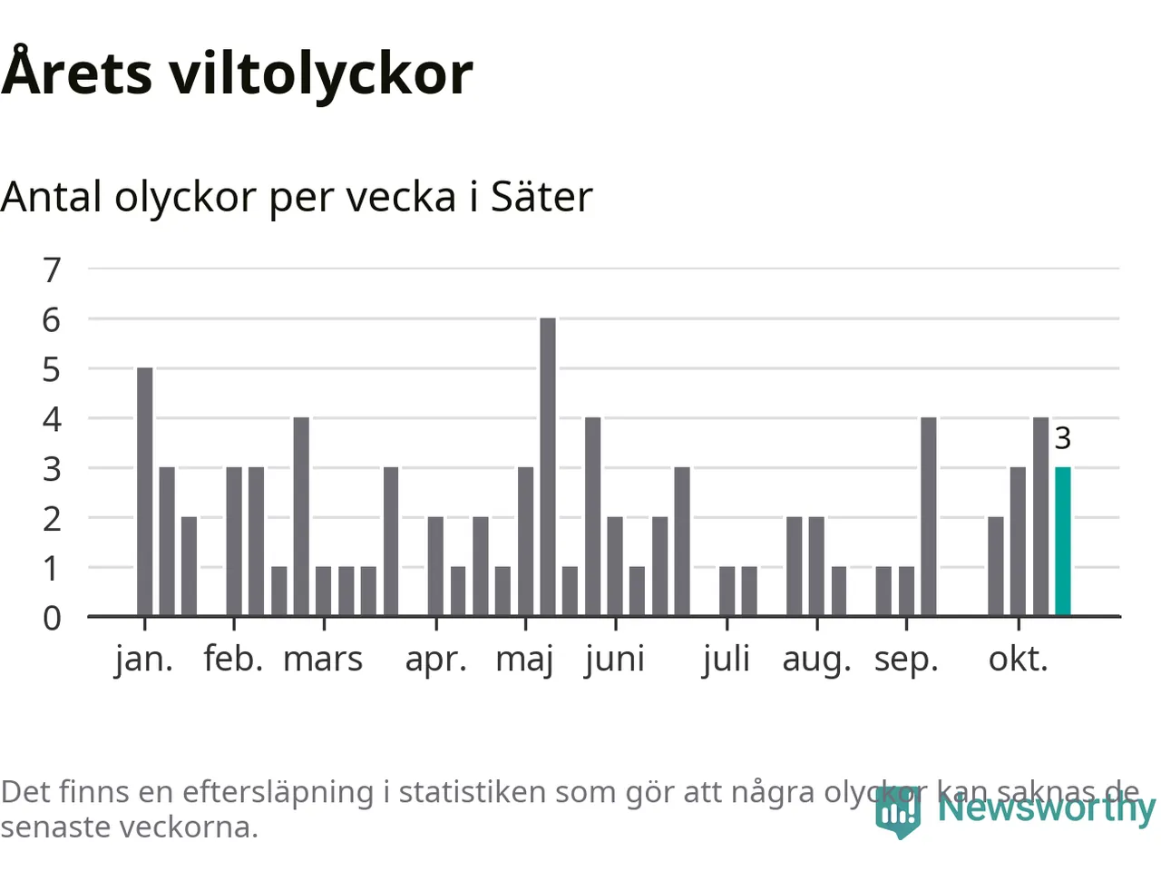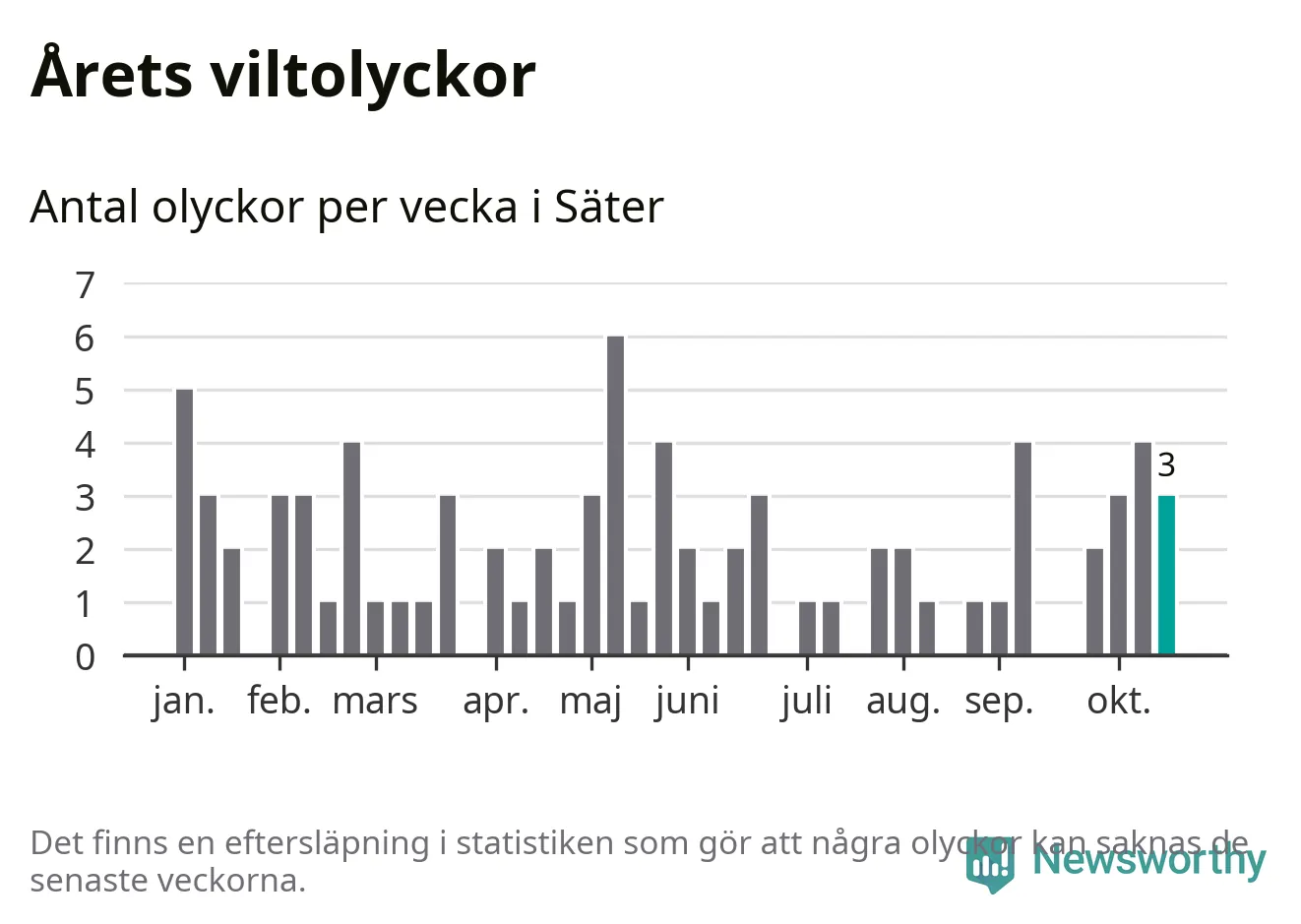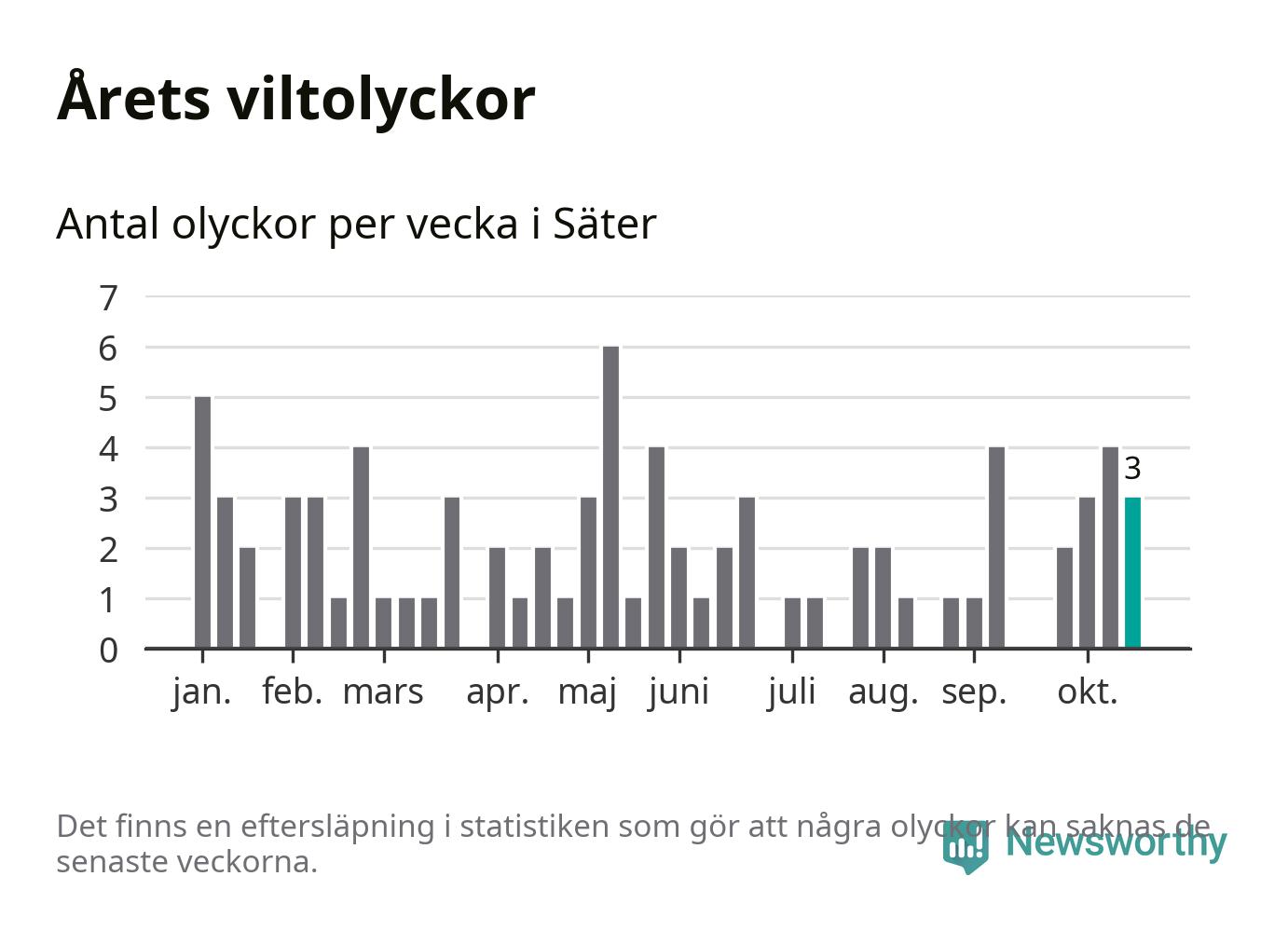Hittills har tre viltolyckor rapporterats in i Säters kommun från vecka 43. Se listan här.