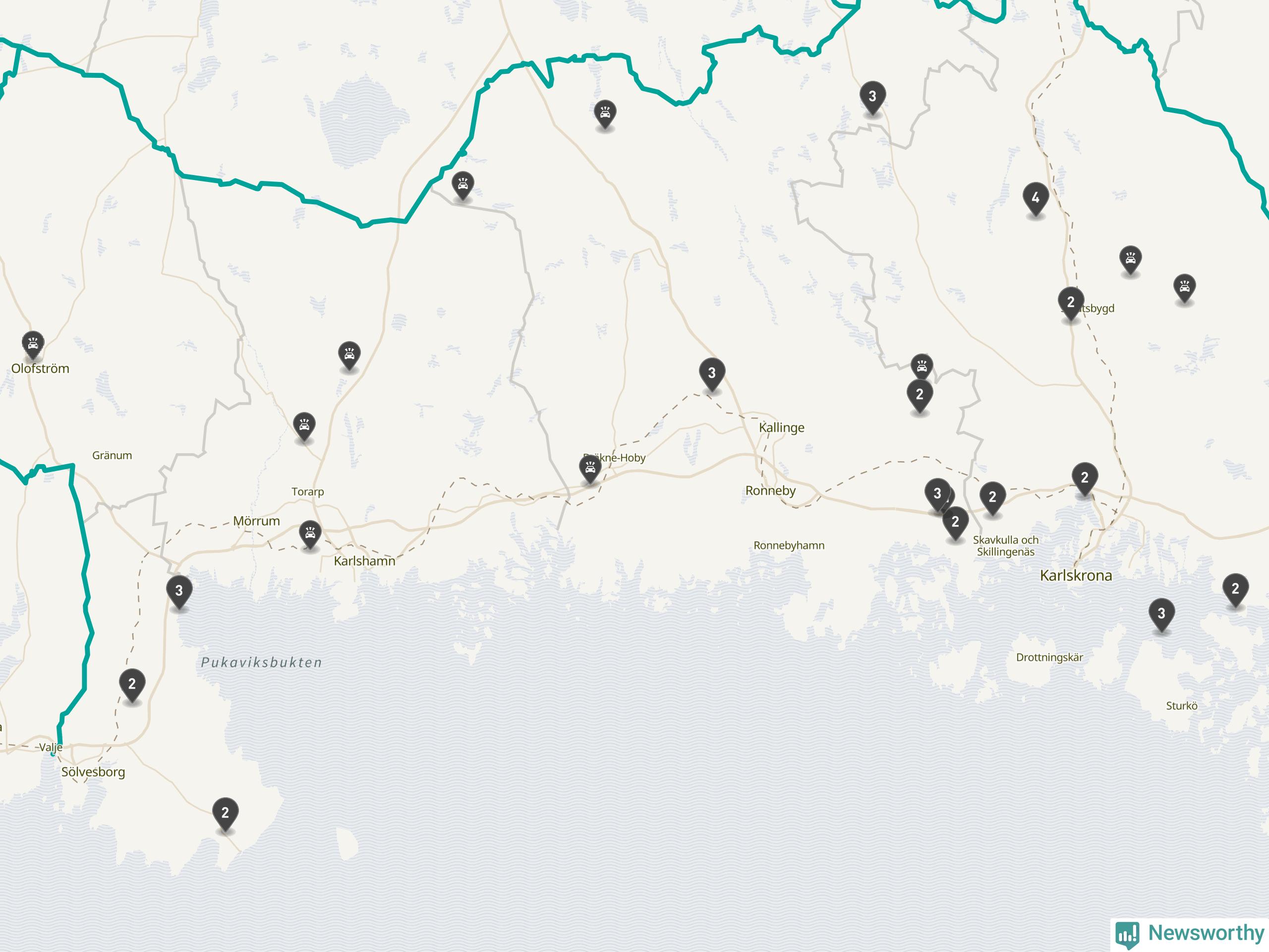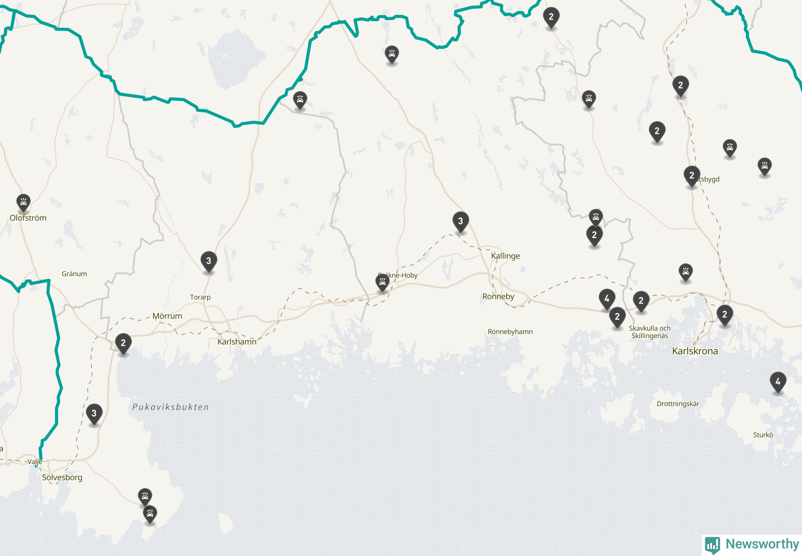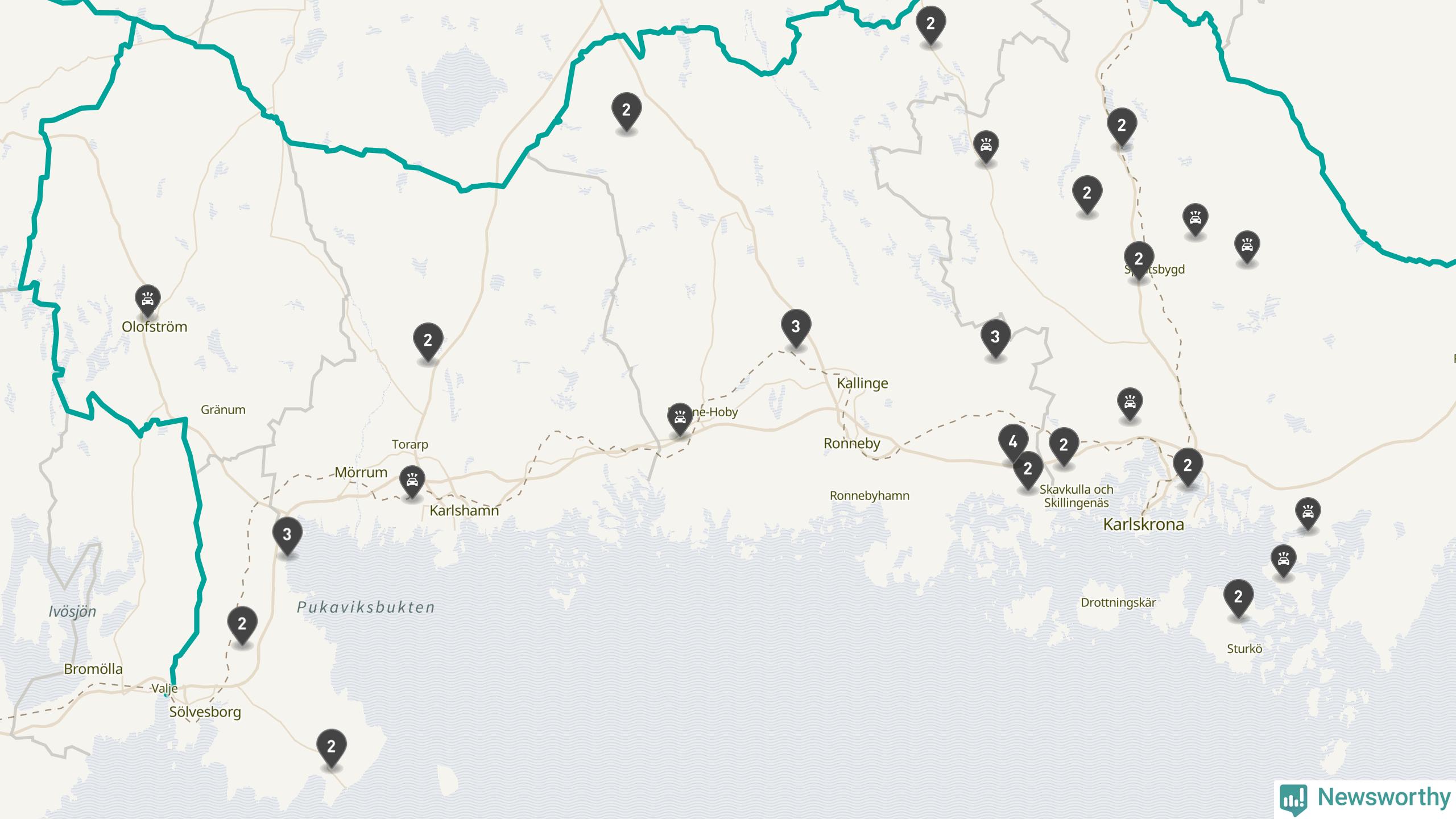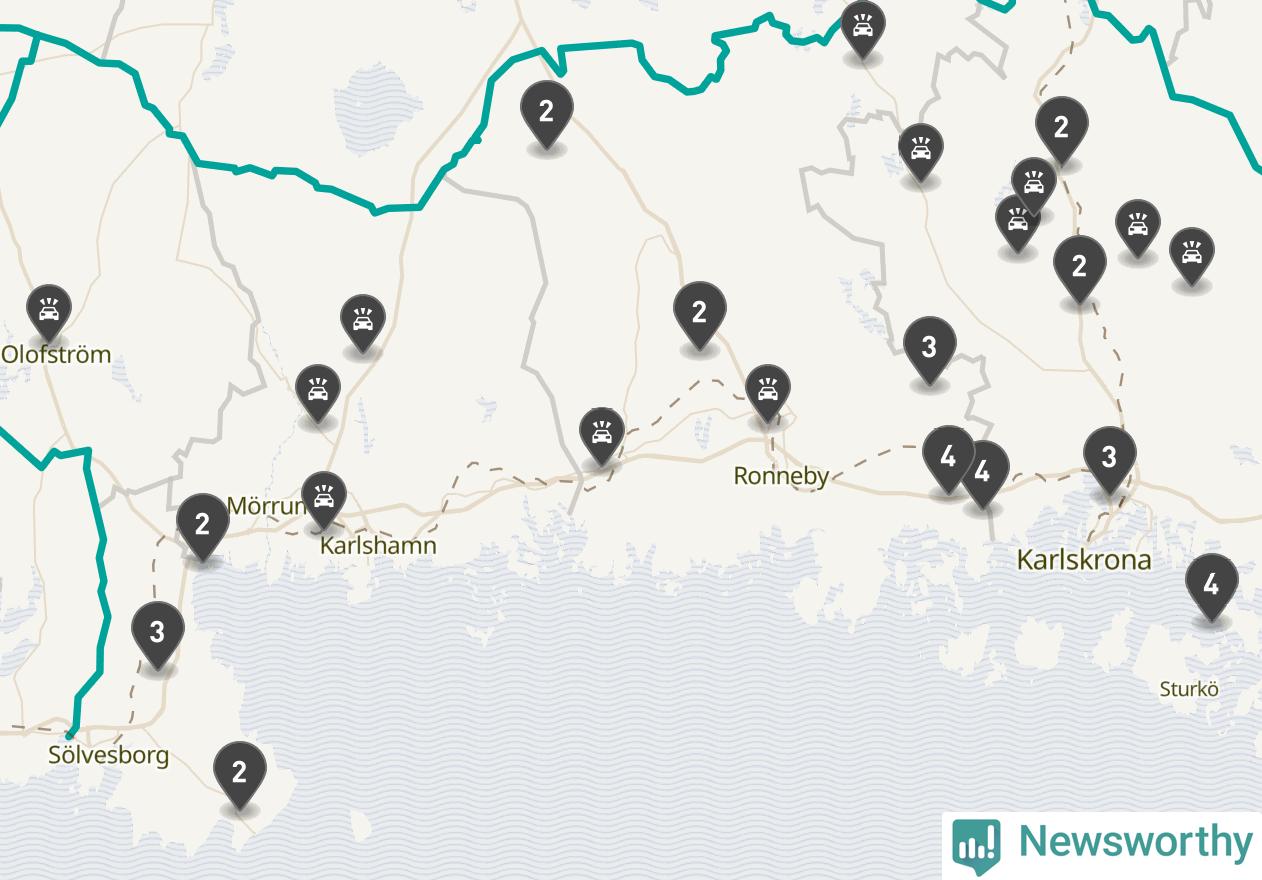 | Lördag 25 oktober kl. 13 | E22 | två rådjur |