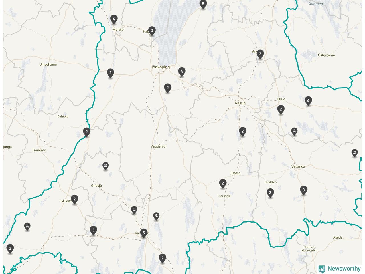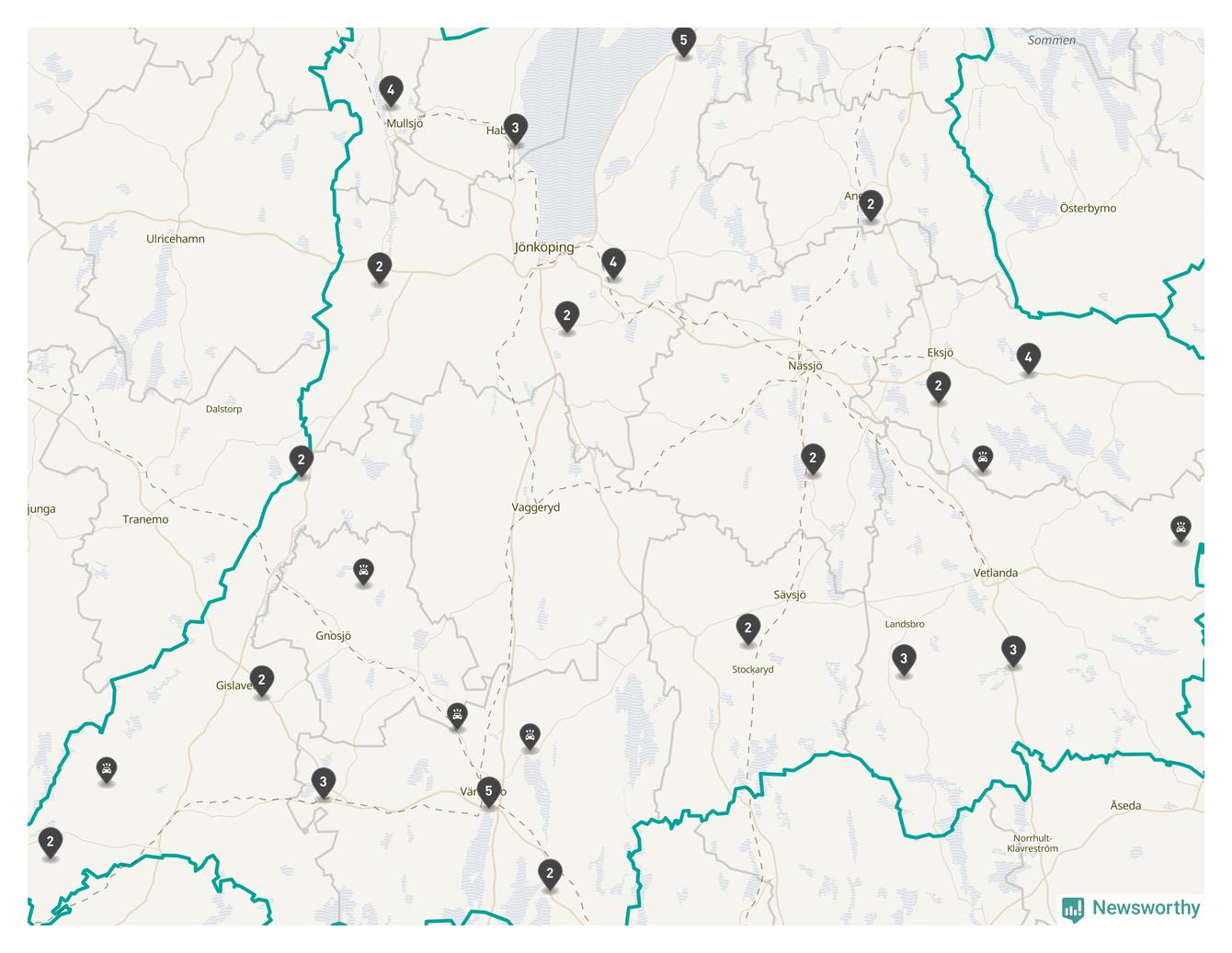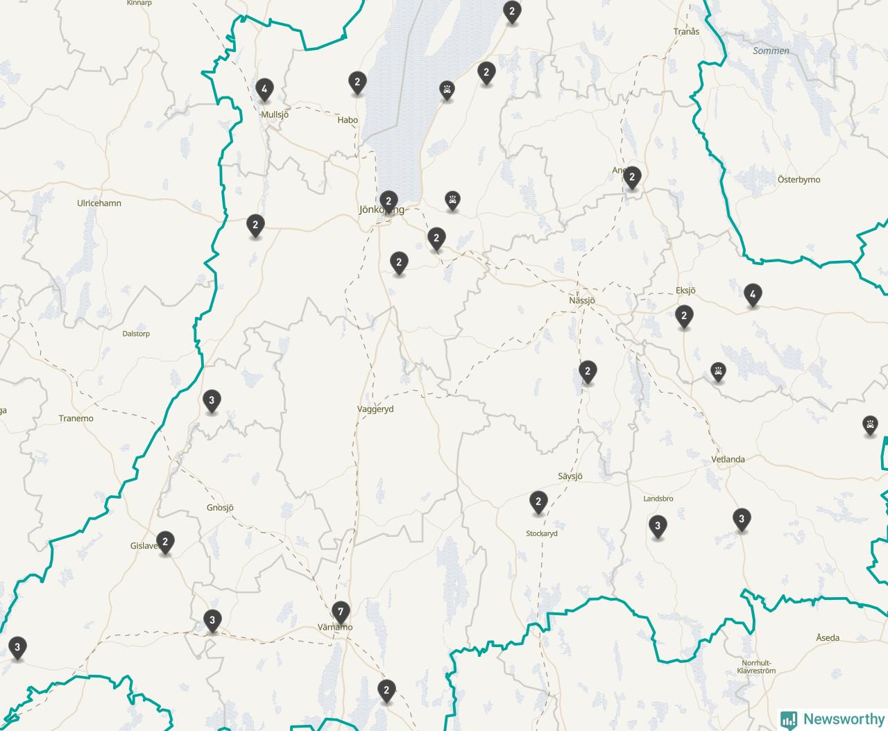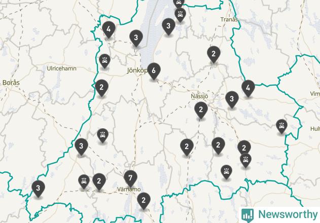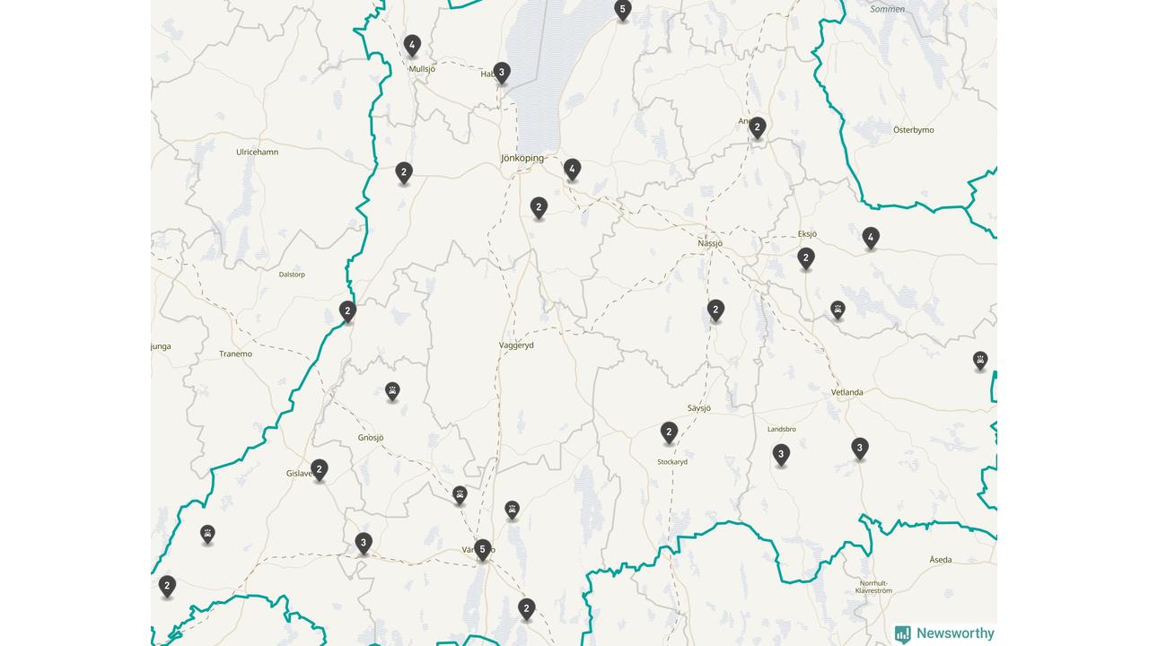 Här inträffade viltolyckorna i Jönköping förra veckan
