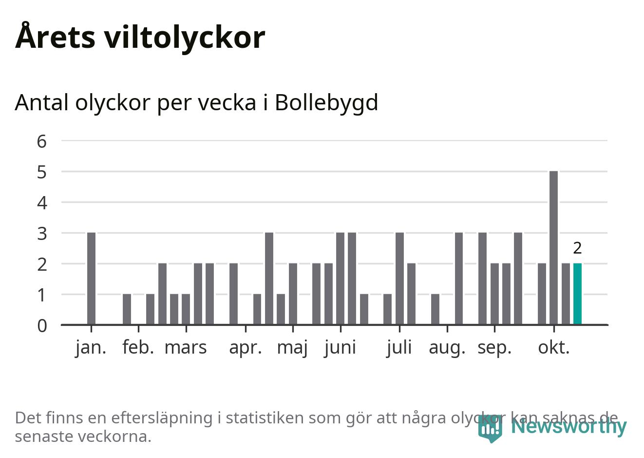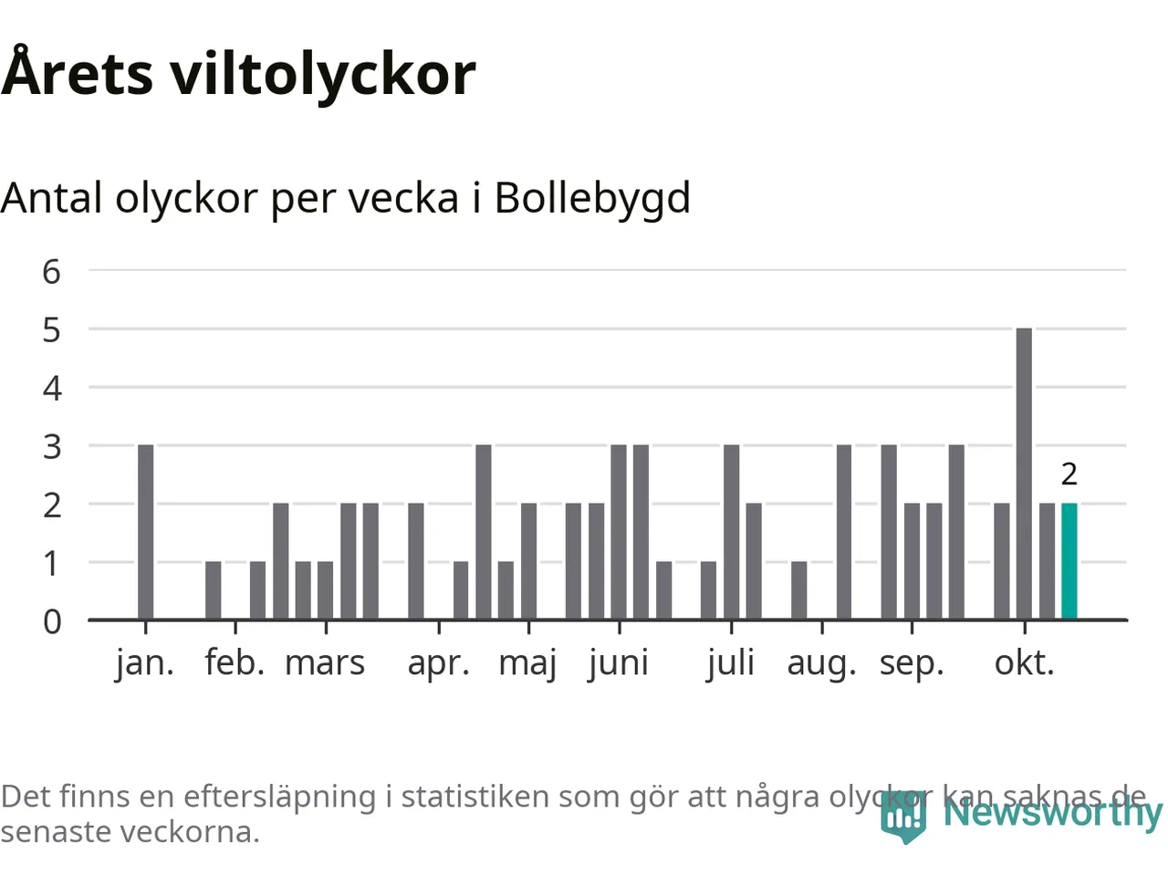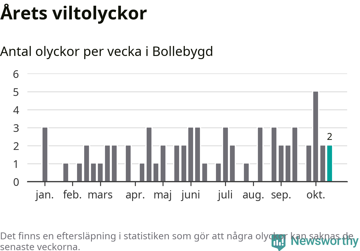 Hittills har två viltolyckor rapporterats in i Bollebygds kommun från vecka 43. Se listan här.