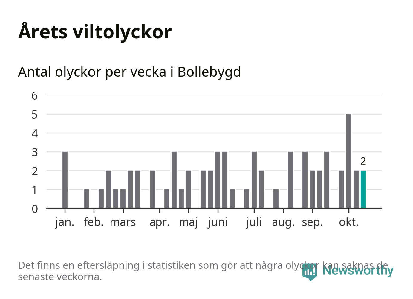 Totalt det här året har det inträffat 64 viltolyckor i kommunen. Det är en normal nivå i förhållande till hur det har sett ut under de senaste tio åren.