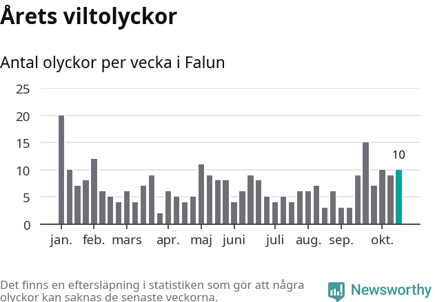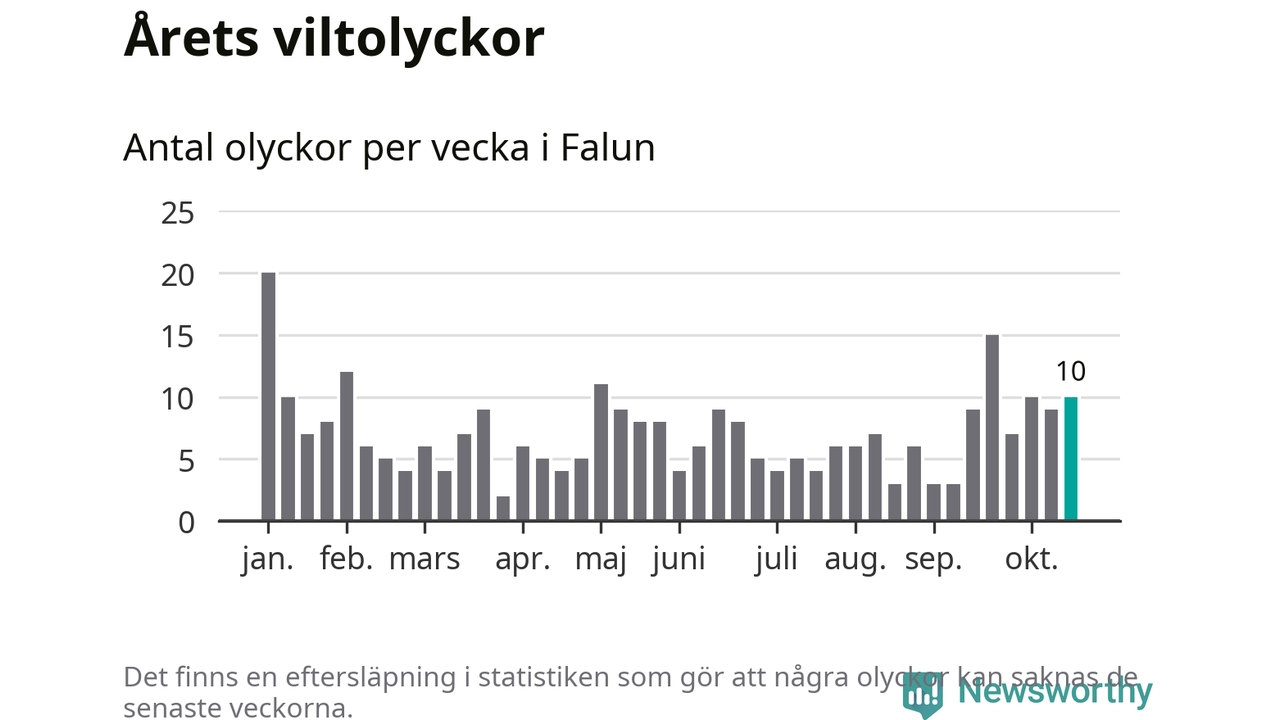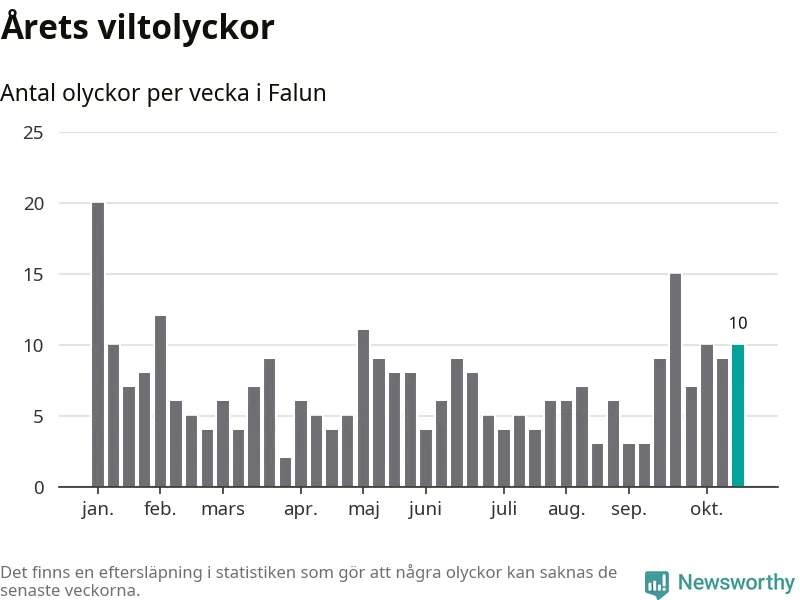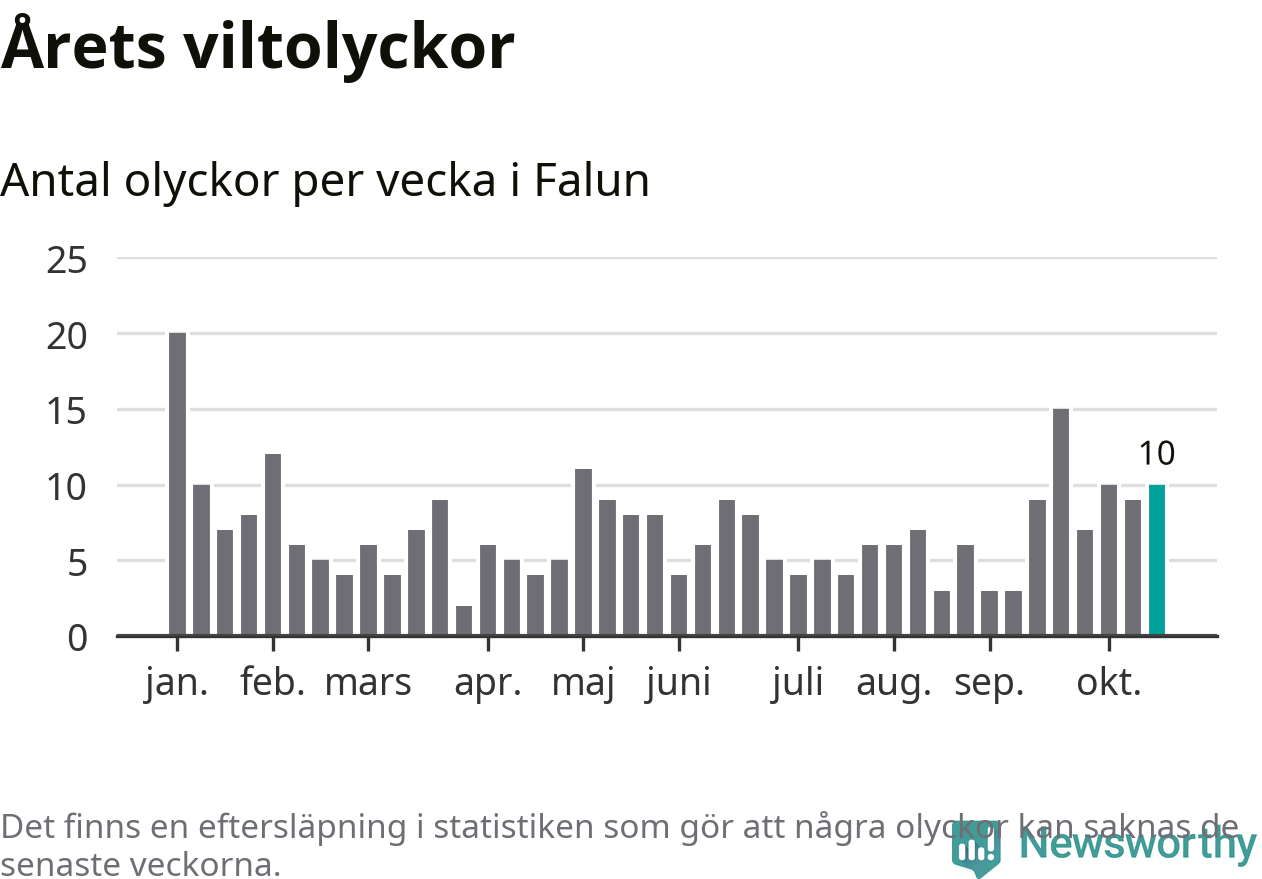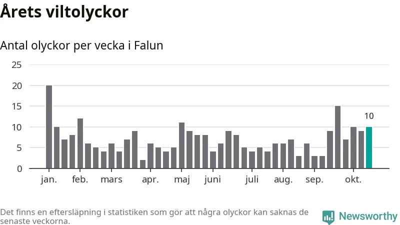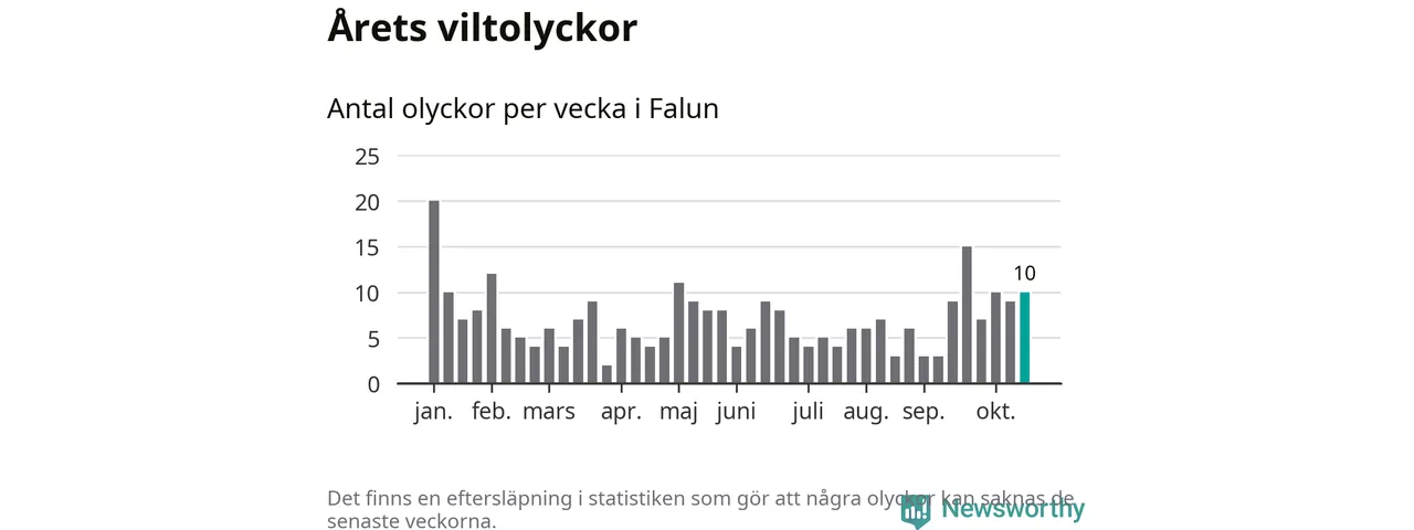 Hittills har tio viltolyckor rapporterats in i Falu kommun från vecka 43. Se listan här.