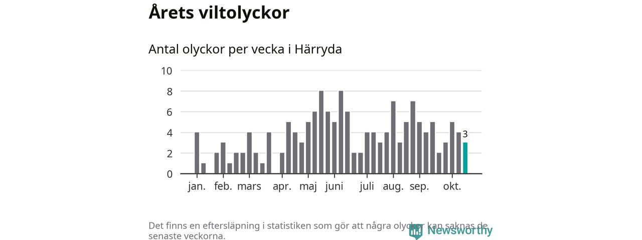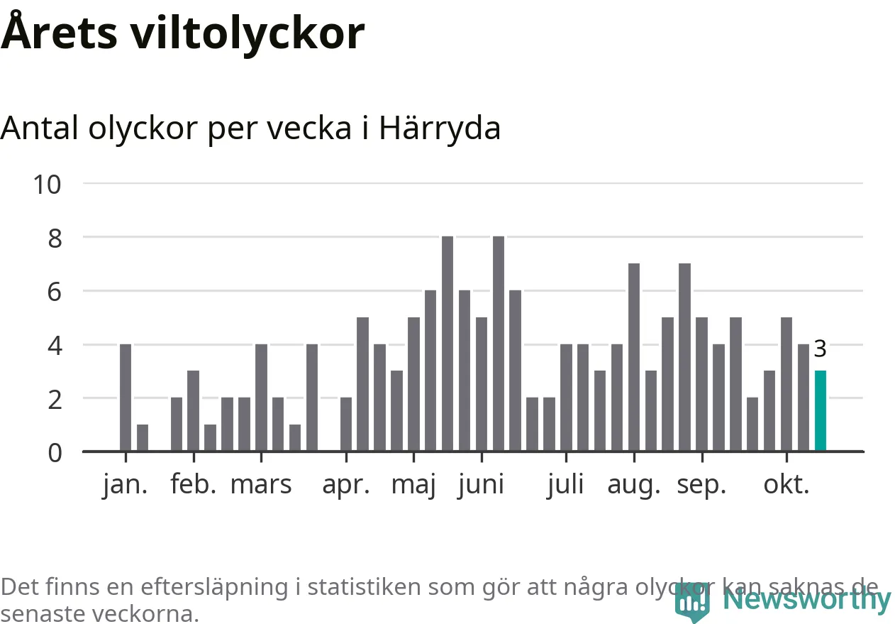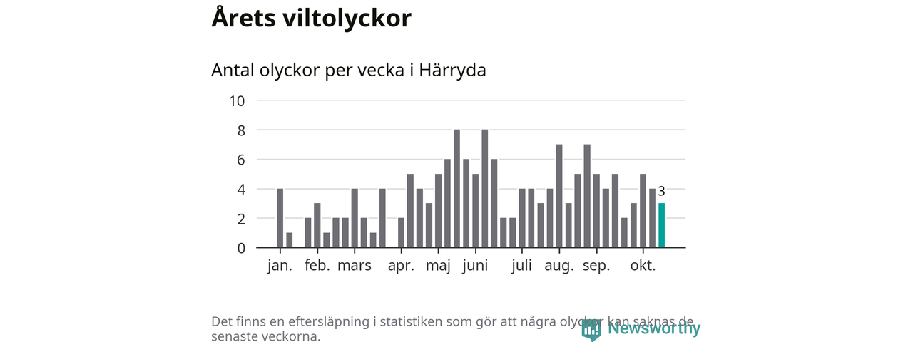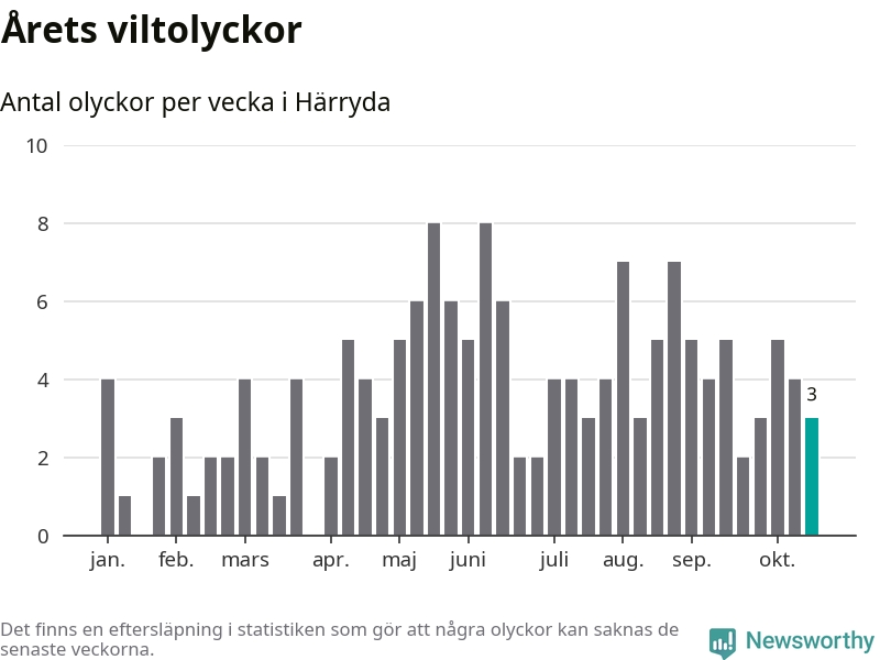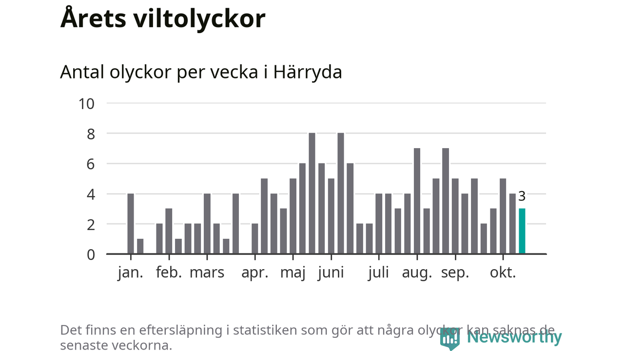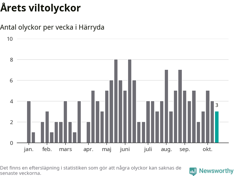Hittills har tre viltolyckor rapporterats in i Härryda kommun från vecka 43. Se listan här.
