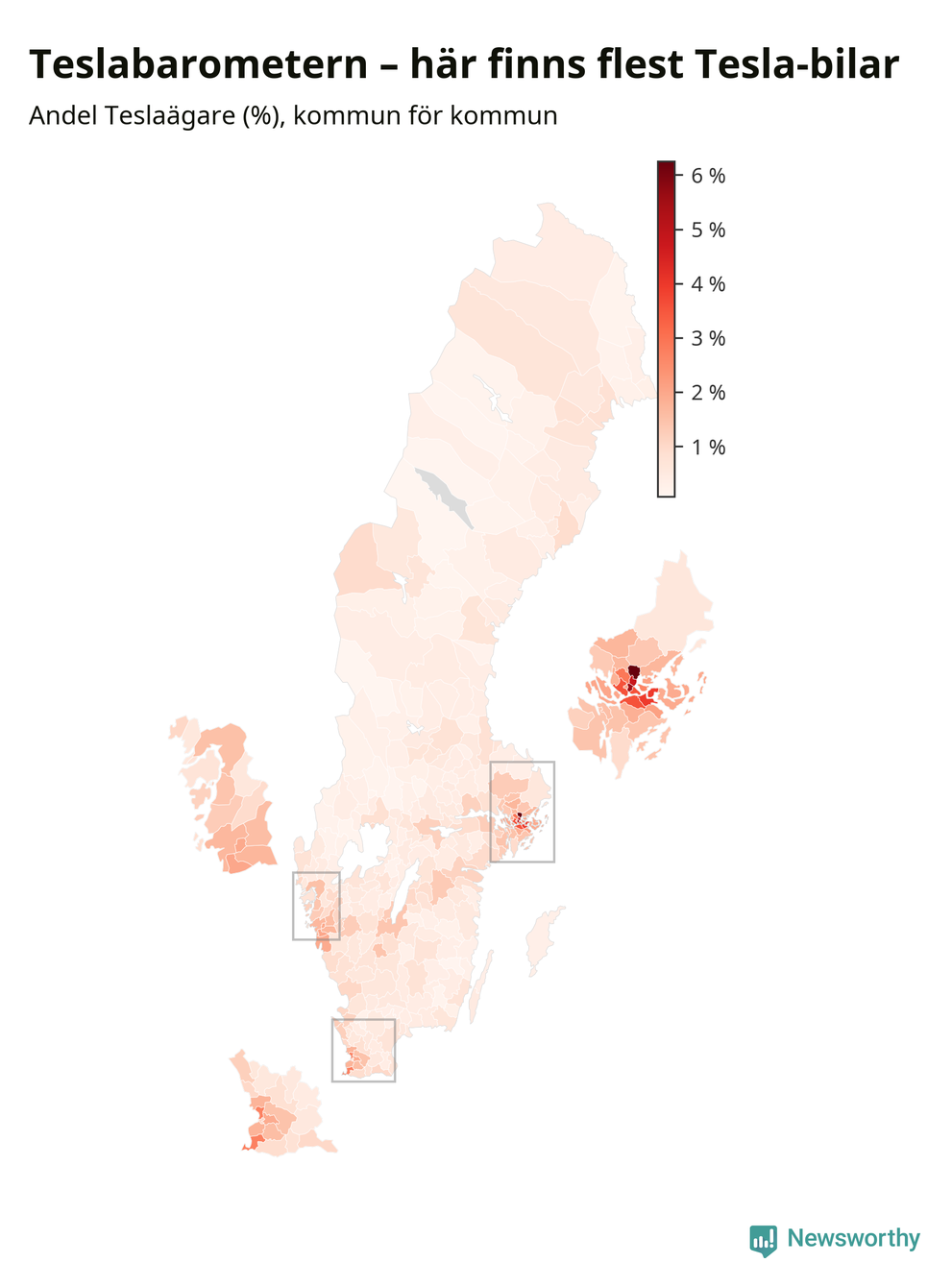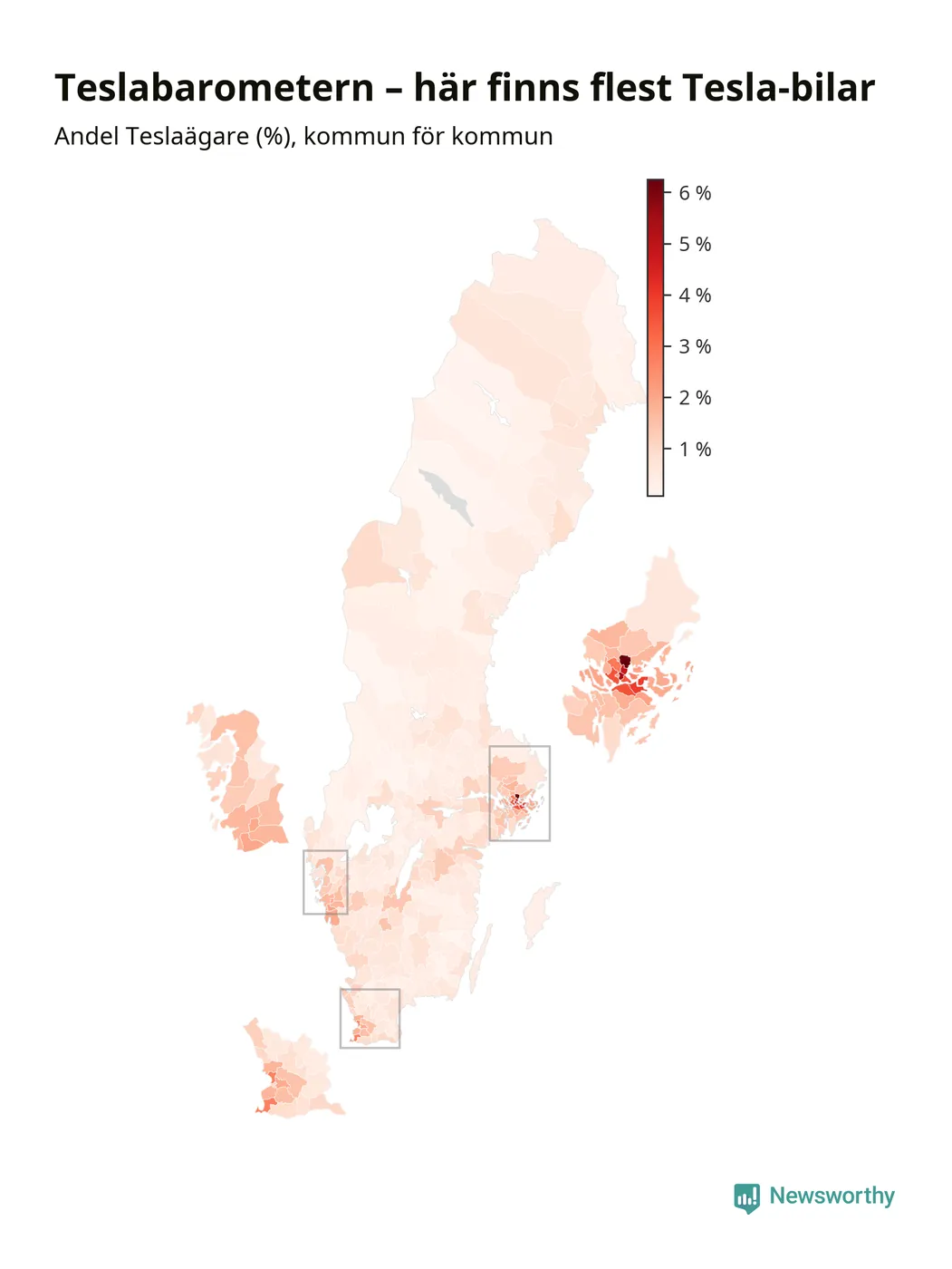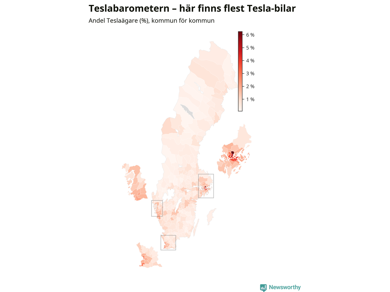 | Kristinehamn | 16 038 | 23 % | 0,4 % | Tesla |