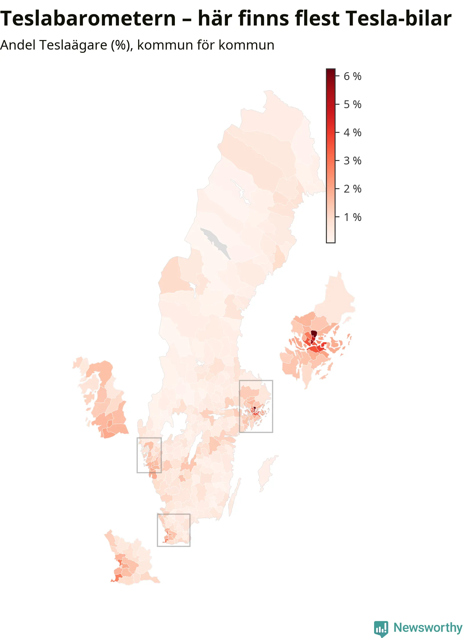 I Sunne kommun finns 40 teslor – vilket är tio fler än förra året. Det motsvarar tre promille av alla bilar i kommunen.