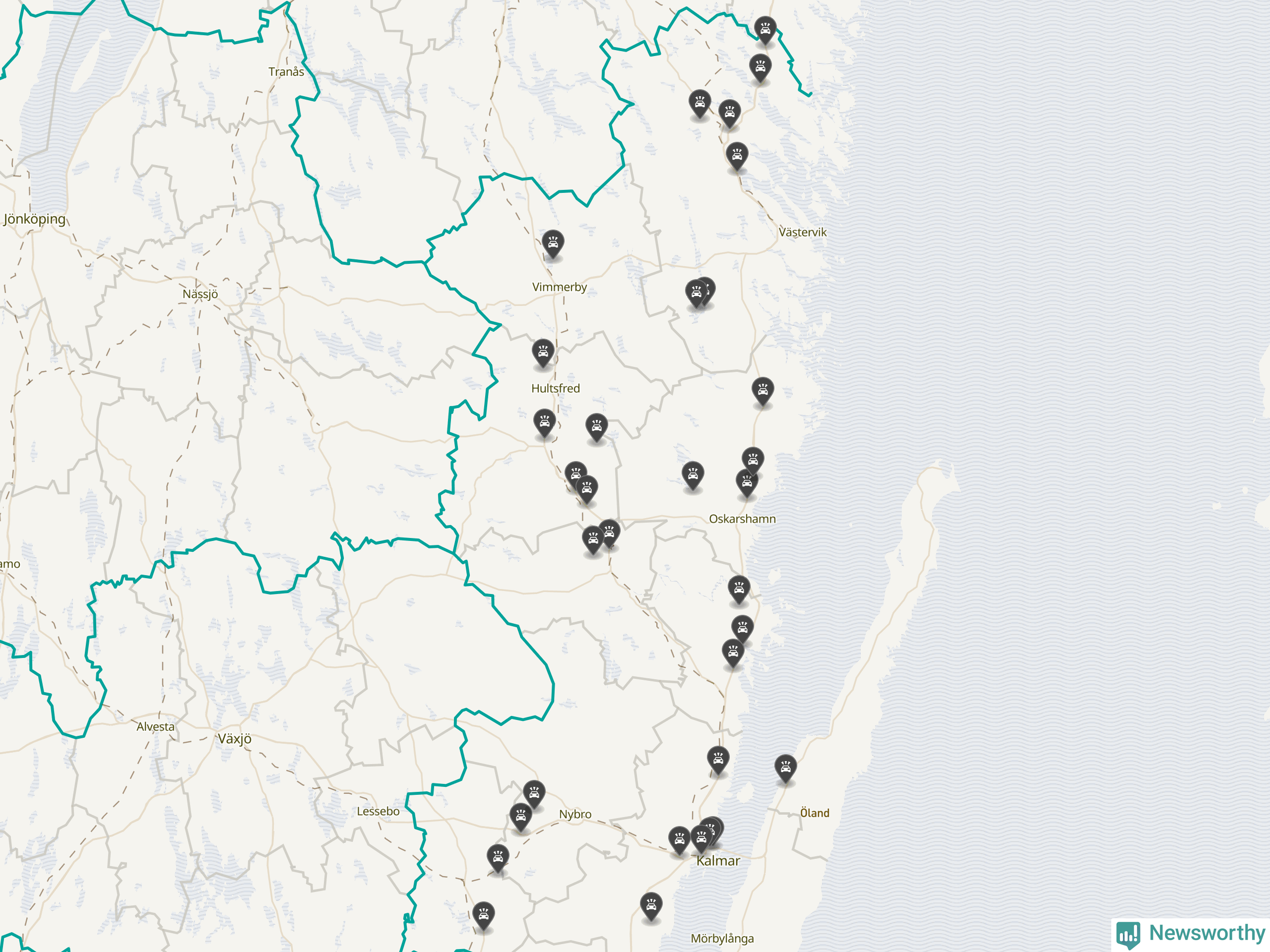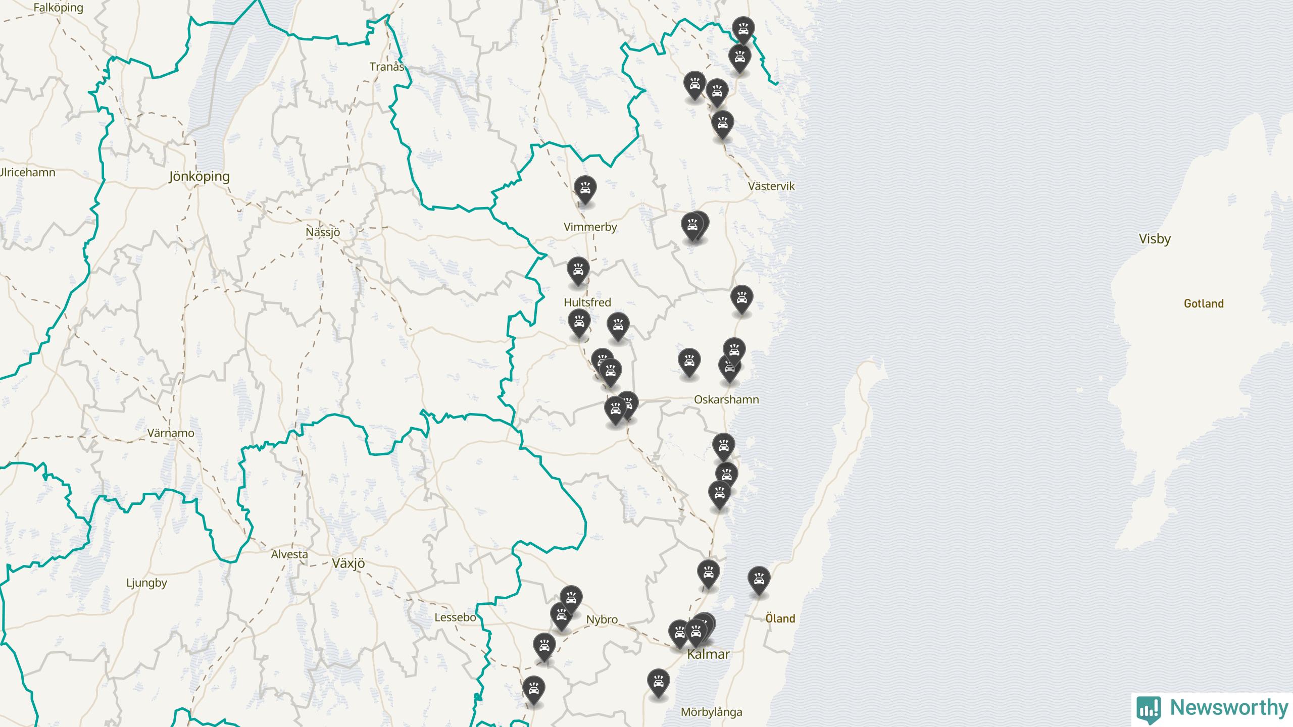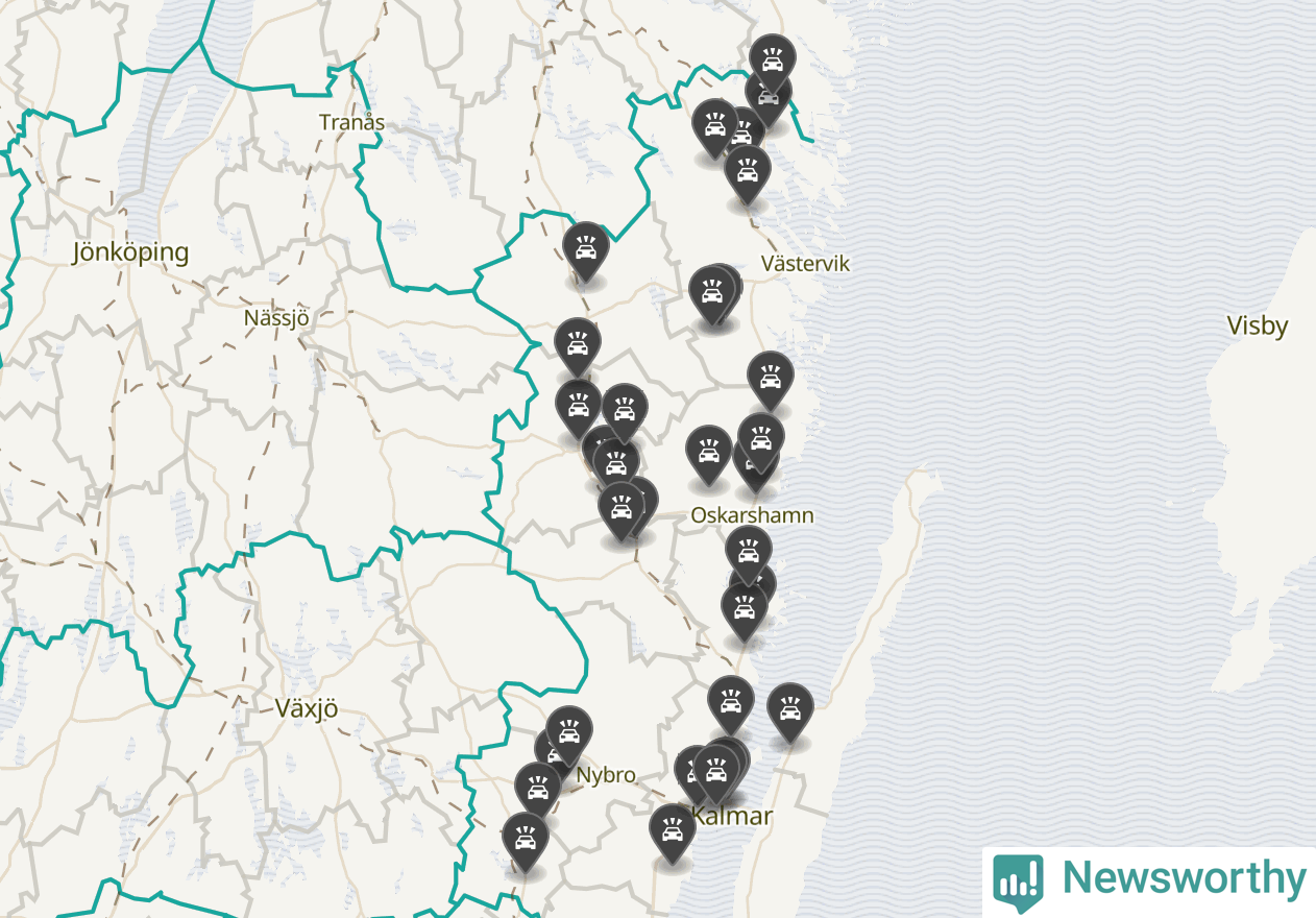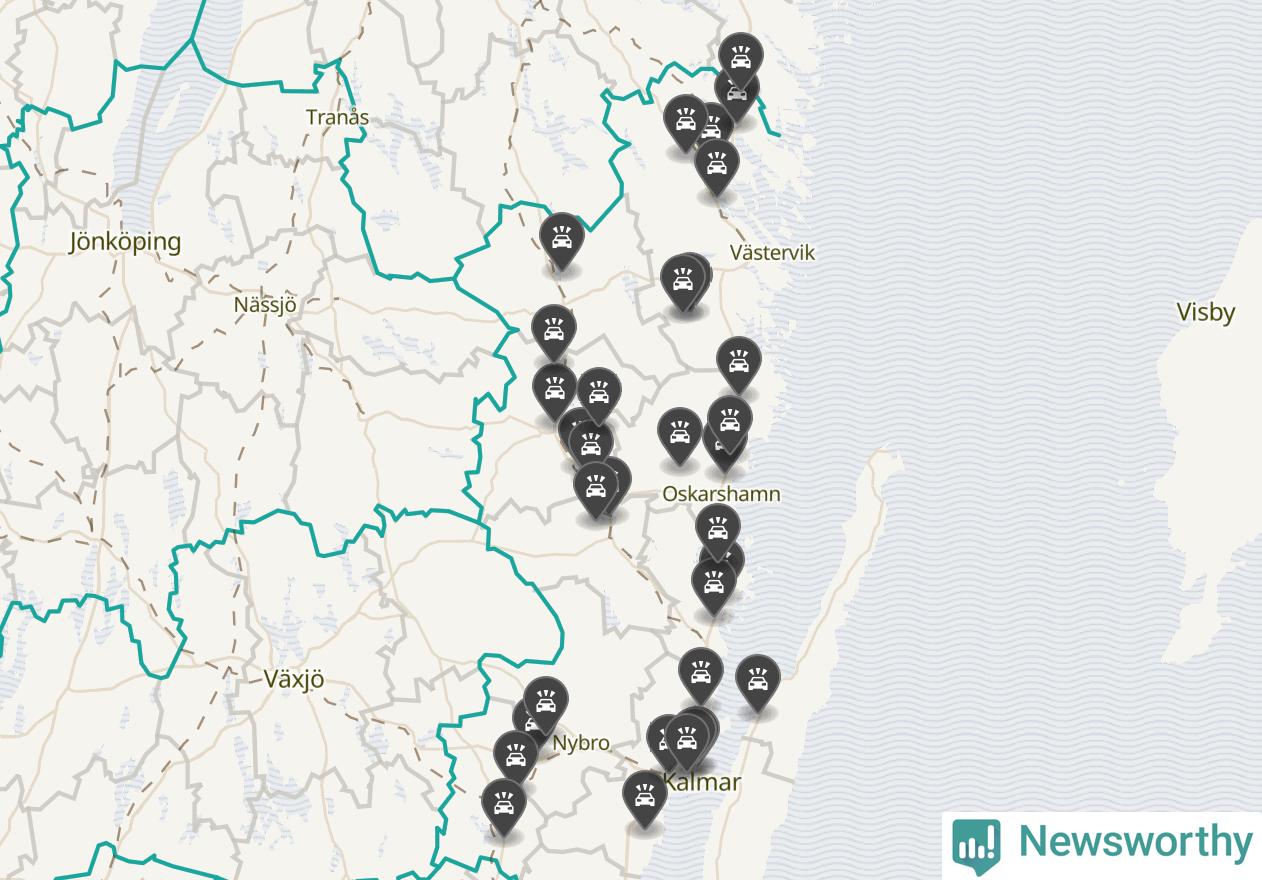 I Kalmar län var trafikolyckorna längs de stora vägarna, precis som månaden innan, färre i oktober än under samma månad i fjol, visar data från Trafikverket som Newsworthy sammanställt.