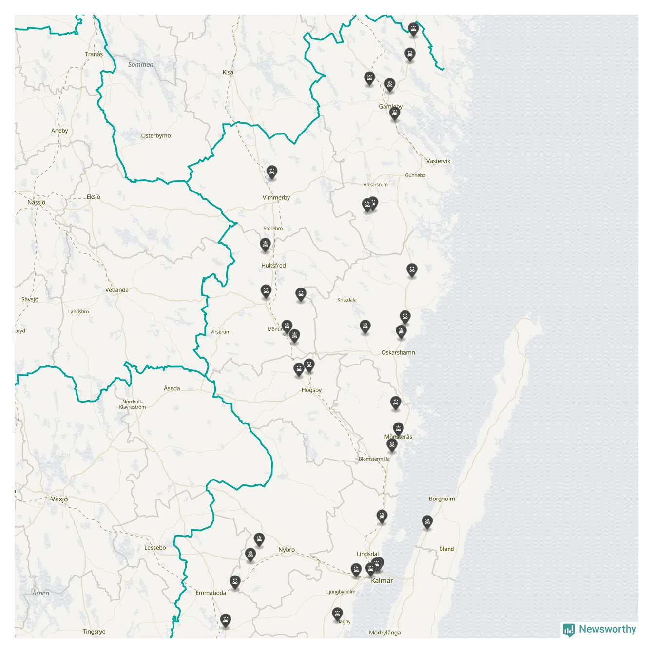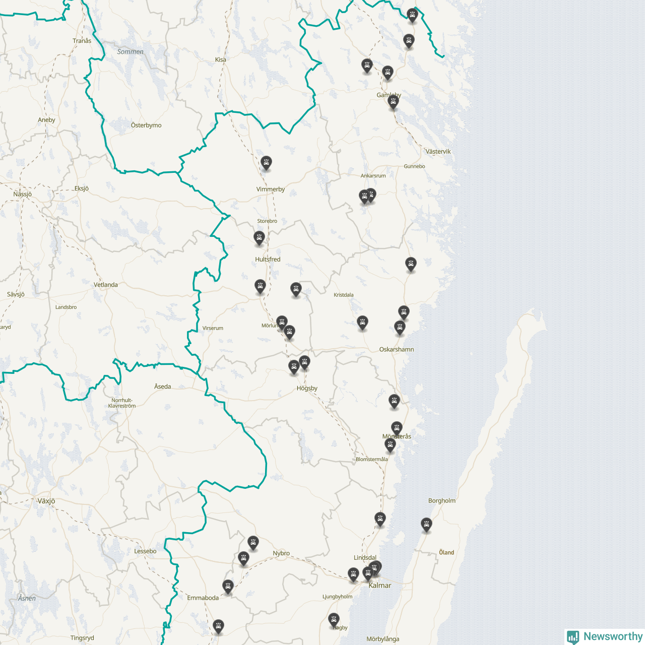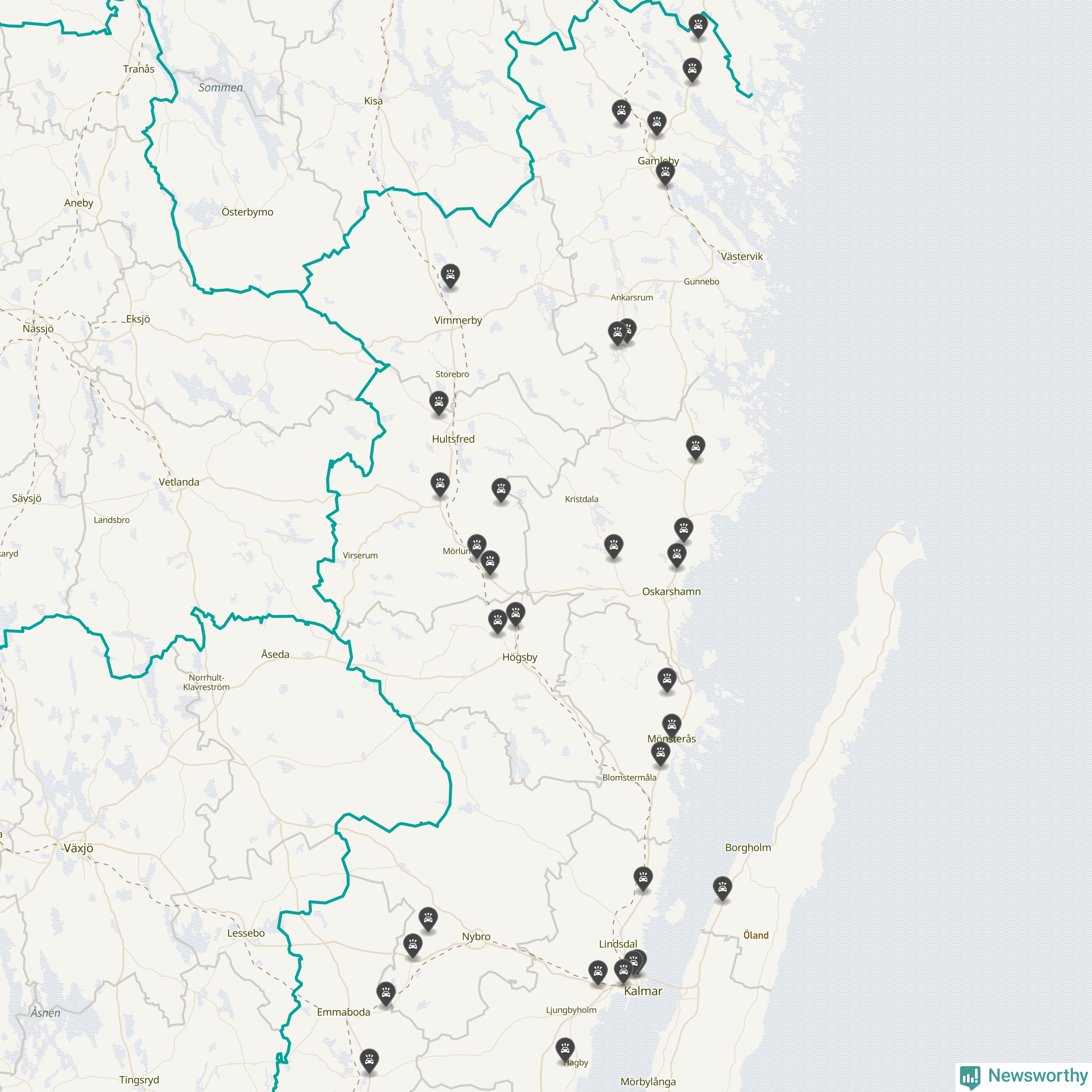 I Kalmar län var trafikolyckorna längs de stora vägarna, precis som månaden innan, färre i oktober än under samma månad i fjol, visar data från Trafikverket som Newsworthy sammanställt.