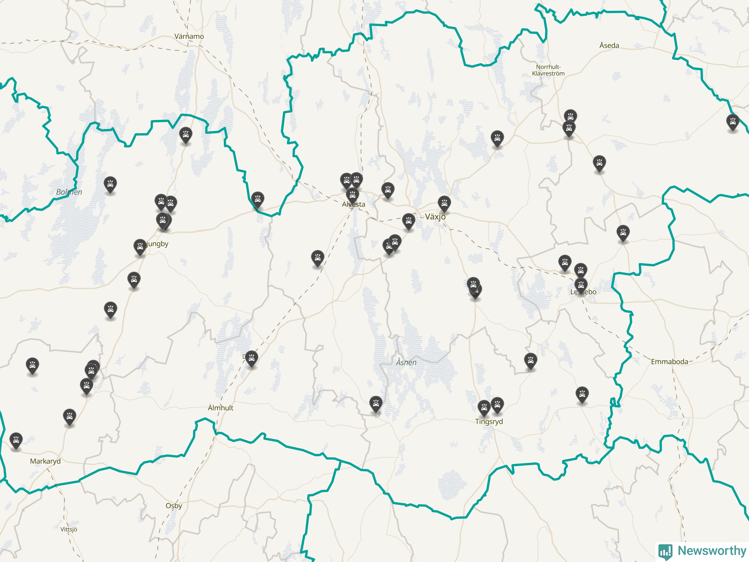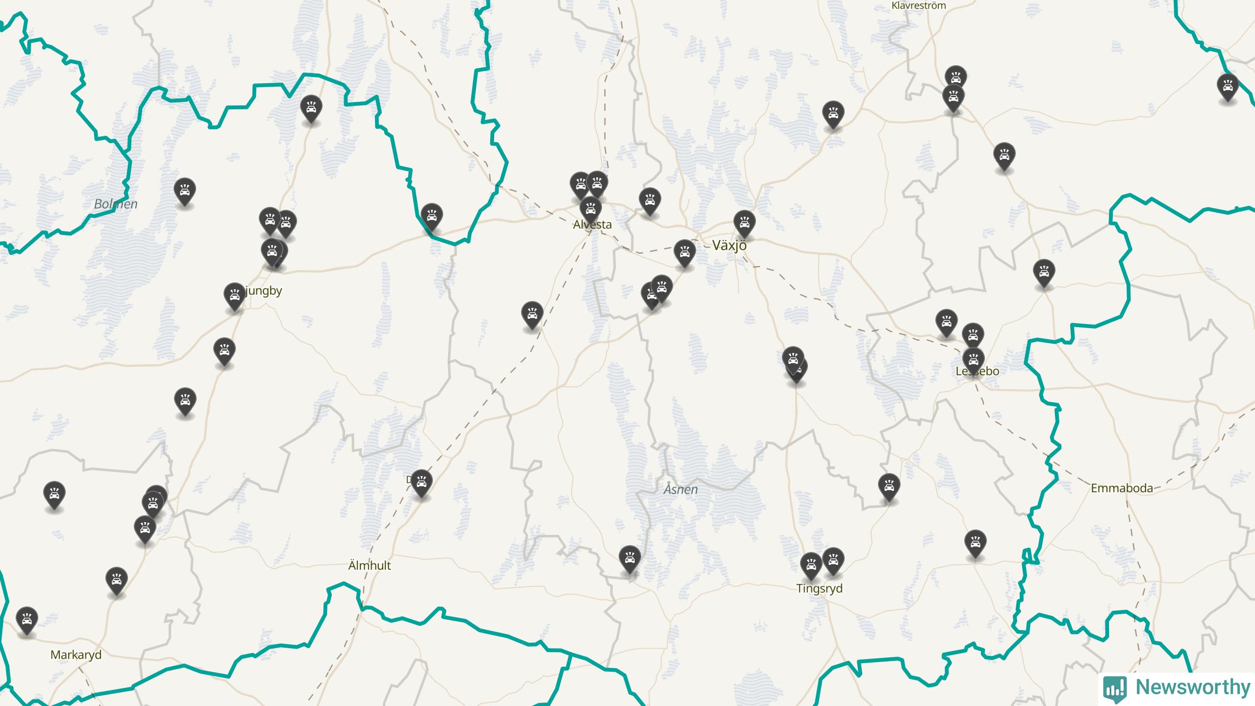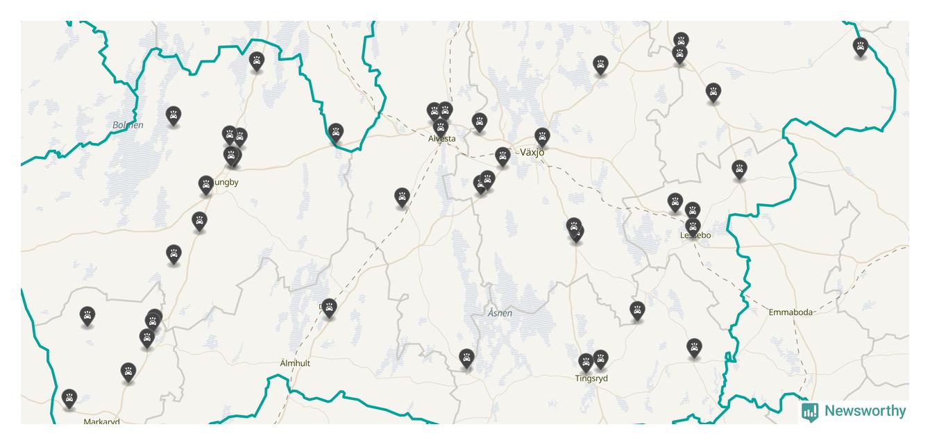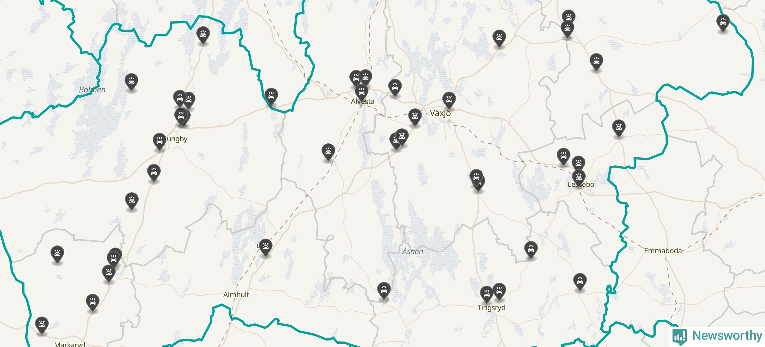 I Kronobergs län rapporterades 44 längs de stora vägarna i länet under oktober, visar data från Trafikverket som Newsworthy sammanställt.