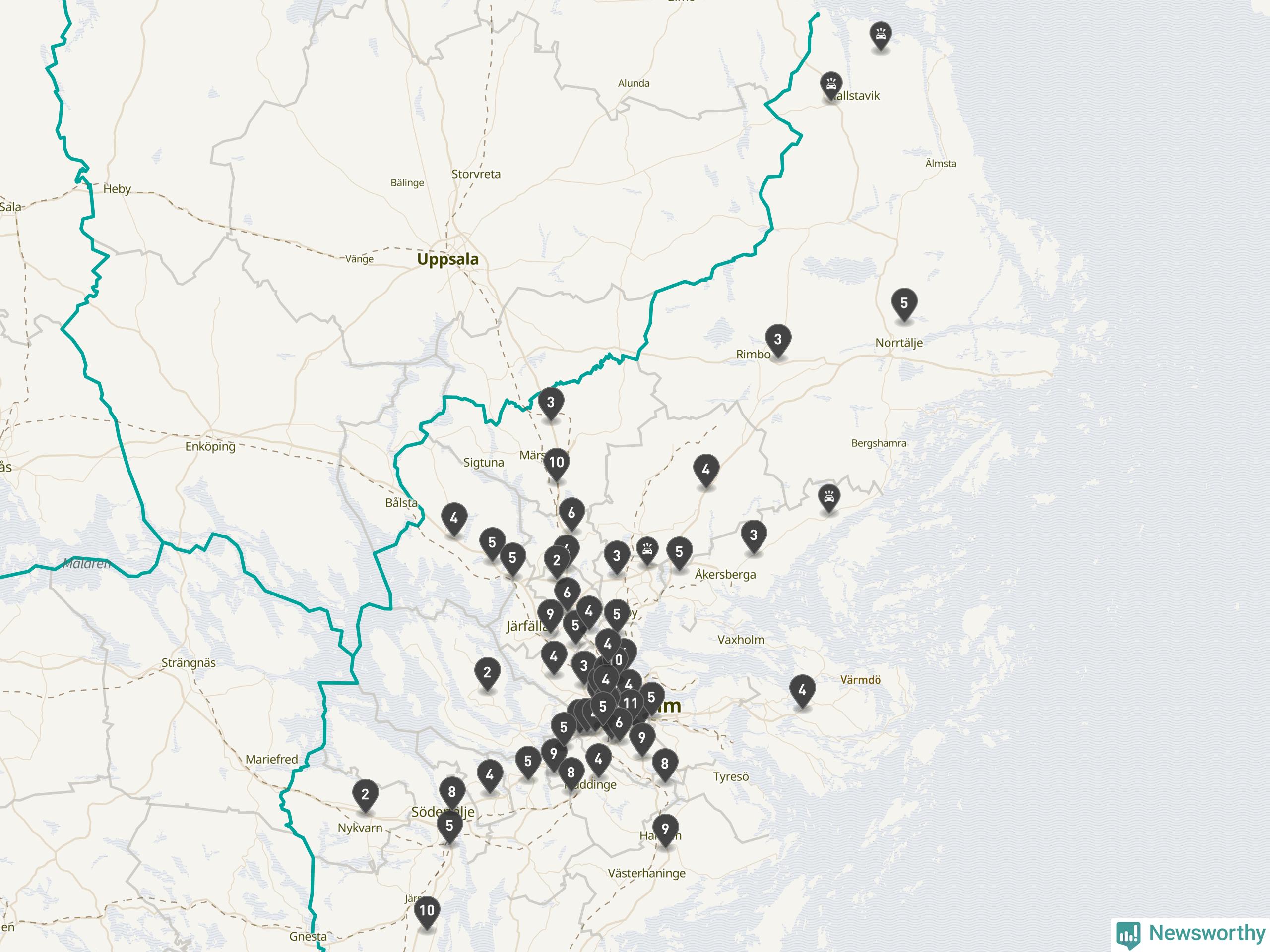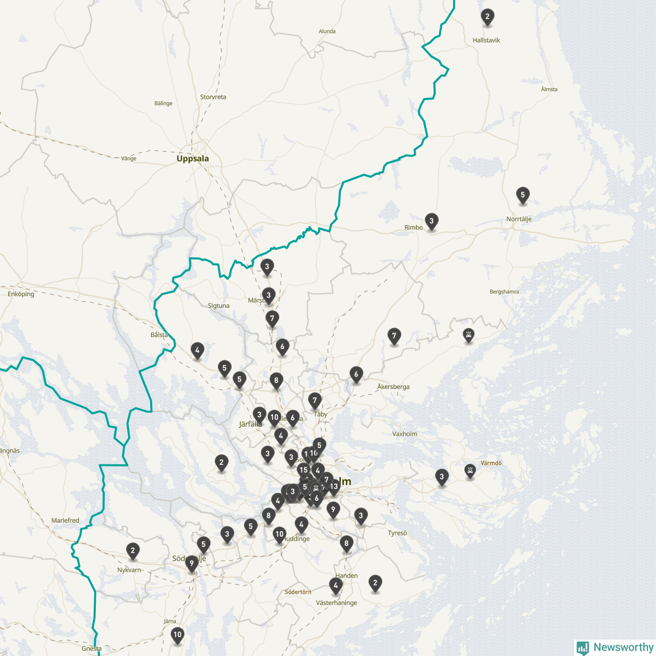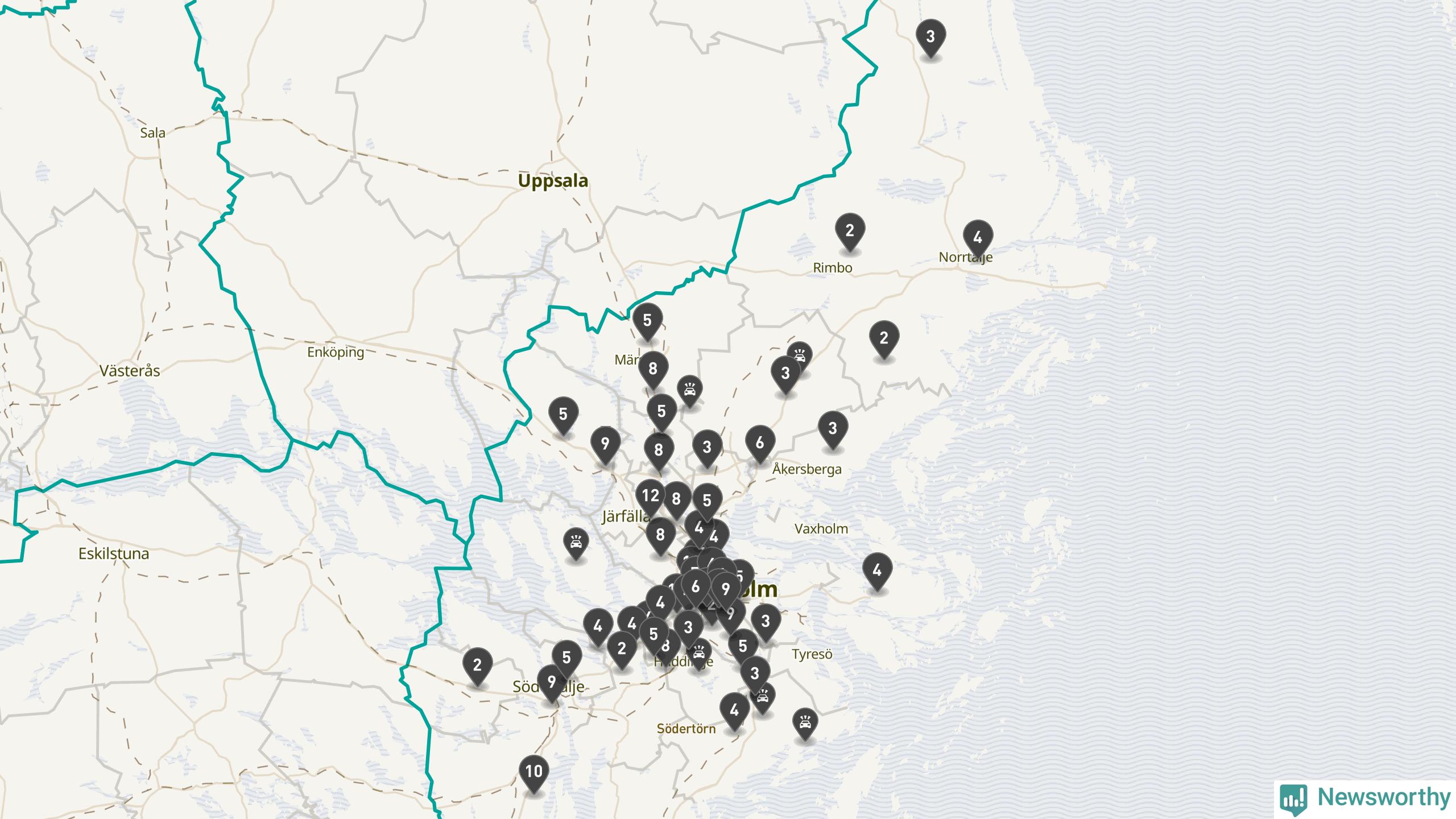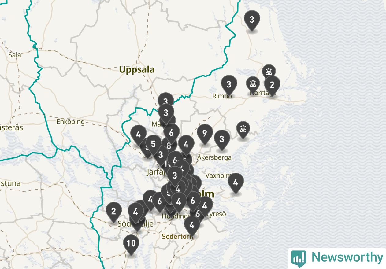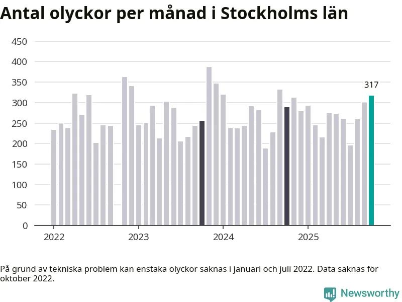 I Stockholms län var trafikolyckorna fler än vanligt i oktober: 317 olyckor längs de stora vägarna i länet. Det visar data från Trafikverket som Newsworthy sammanställt.