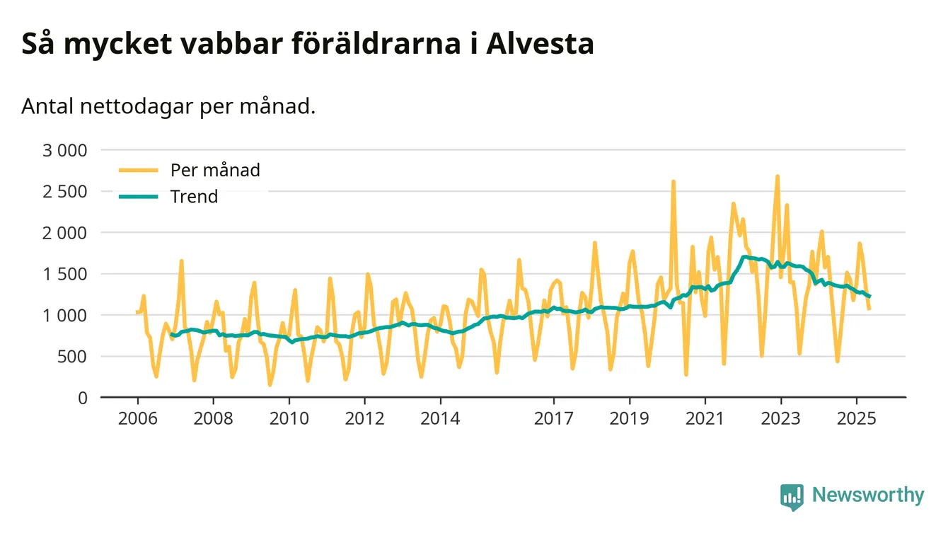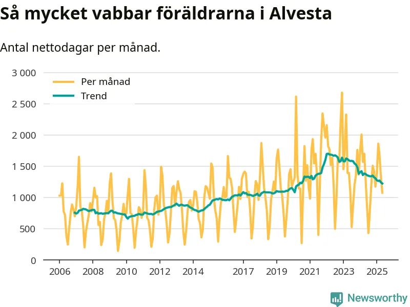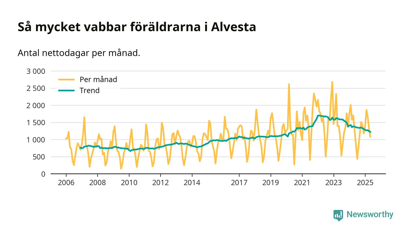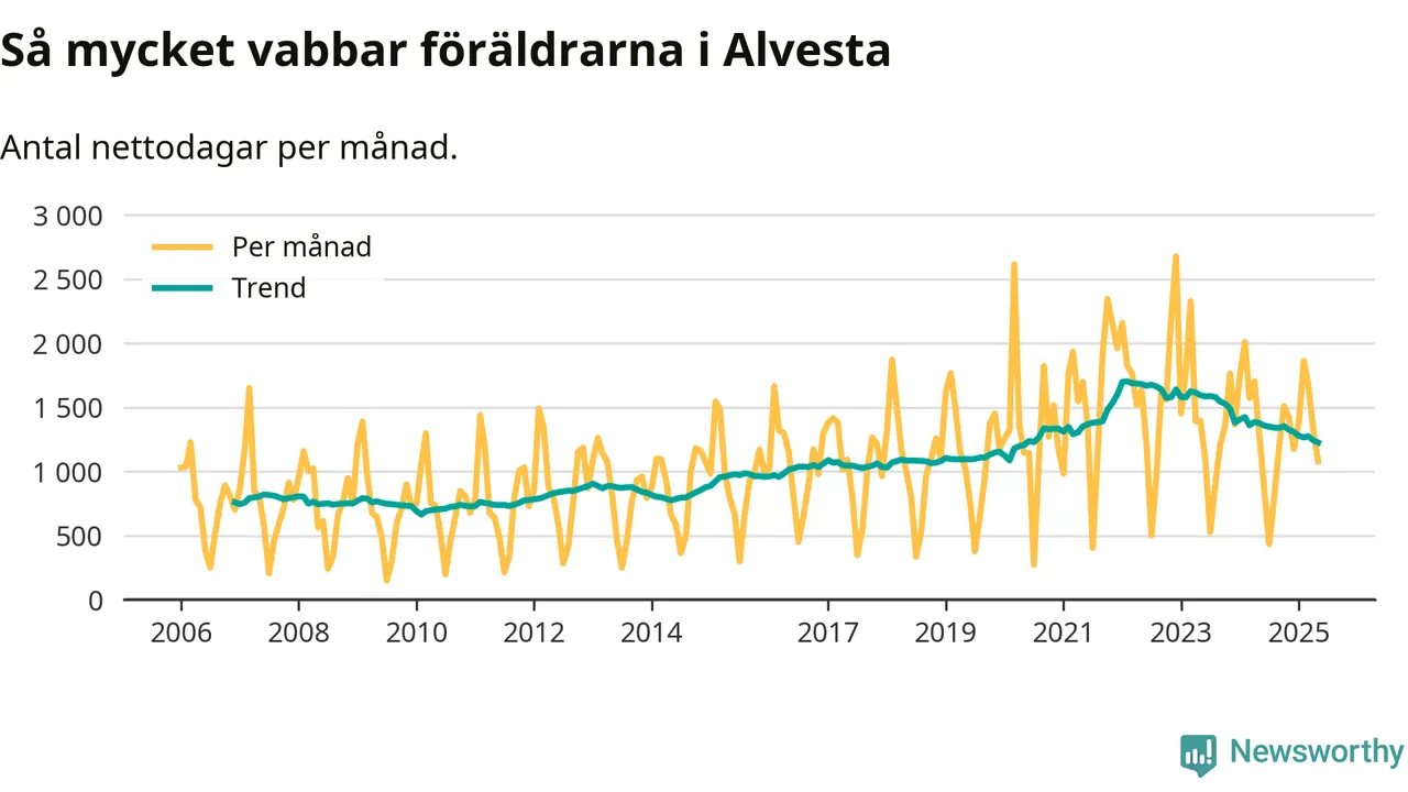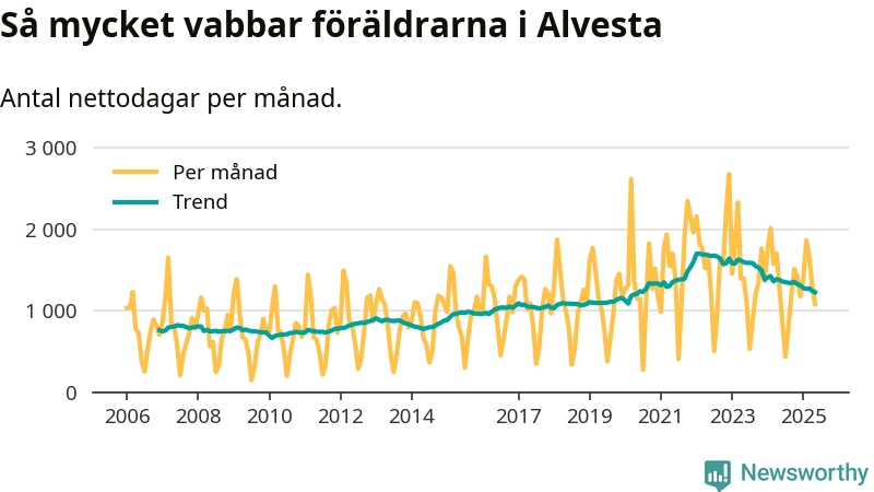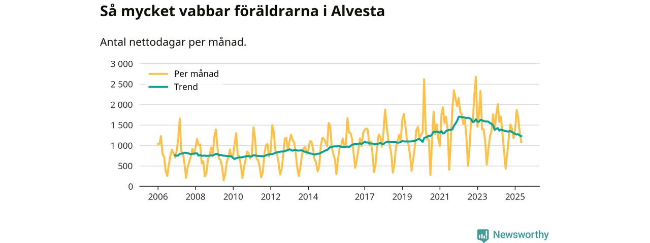 När coronapandemin drog in i mars 2020 peakade antalet vabbdagar i riket som helhet. Under de senaste två åren har vabbuttaget börjat minska igen.