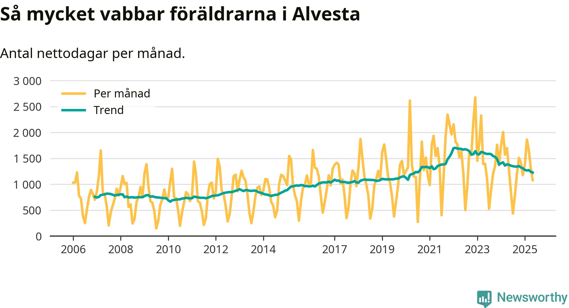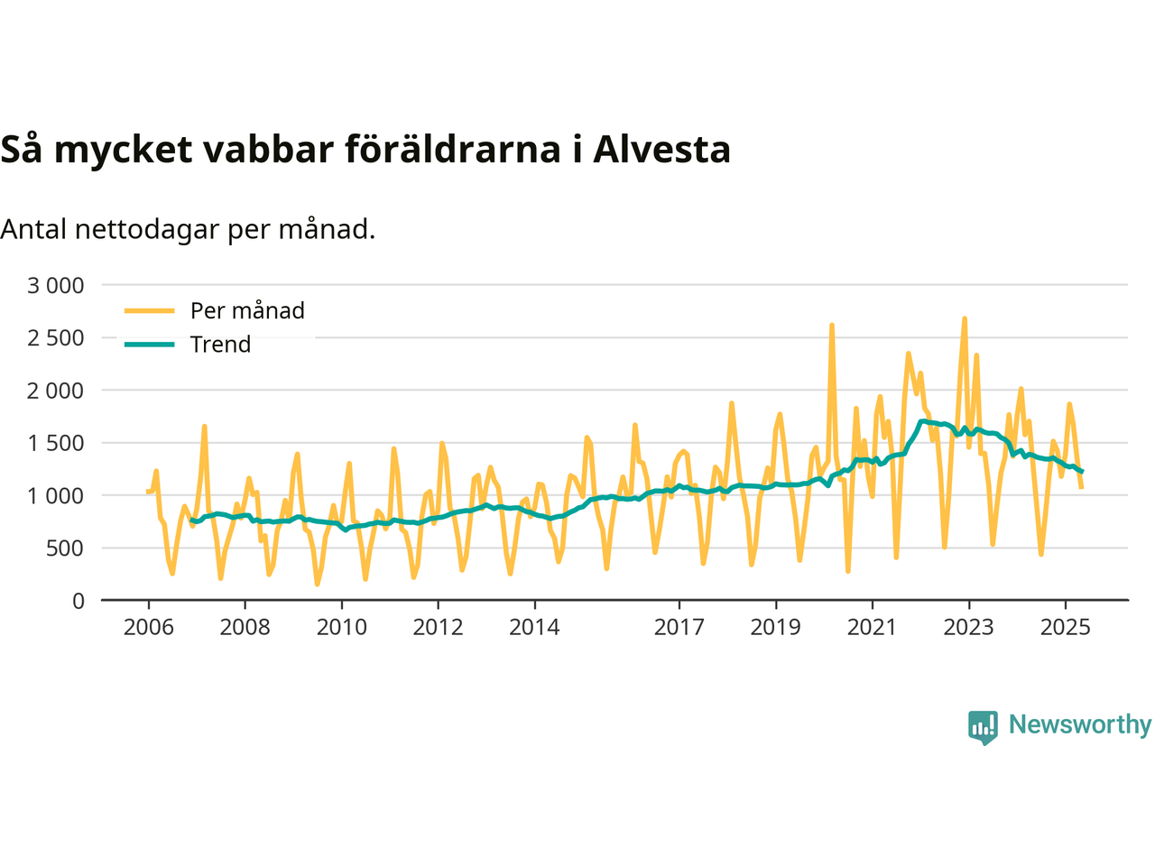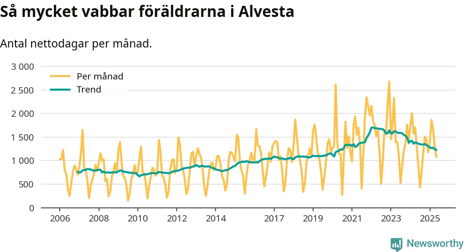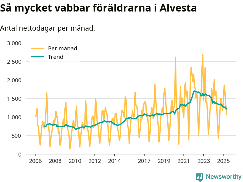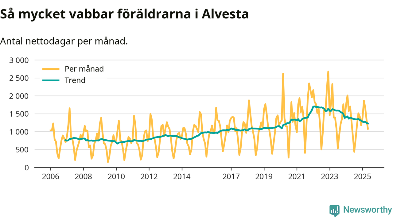 När coronapandemin drog in i mars 2020 peakade antalet vabbdagar i riket som helhet. Under de senaste två åren har vabbuttaget börjat minska igen.