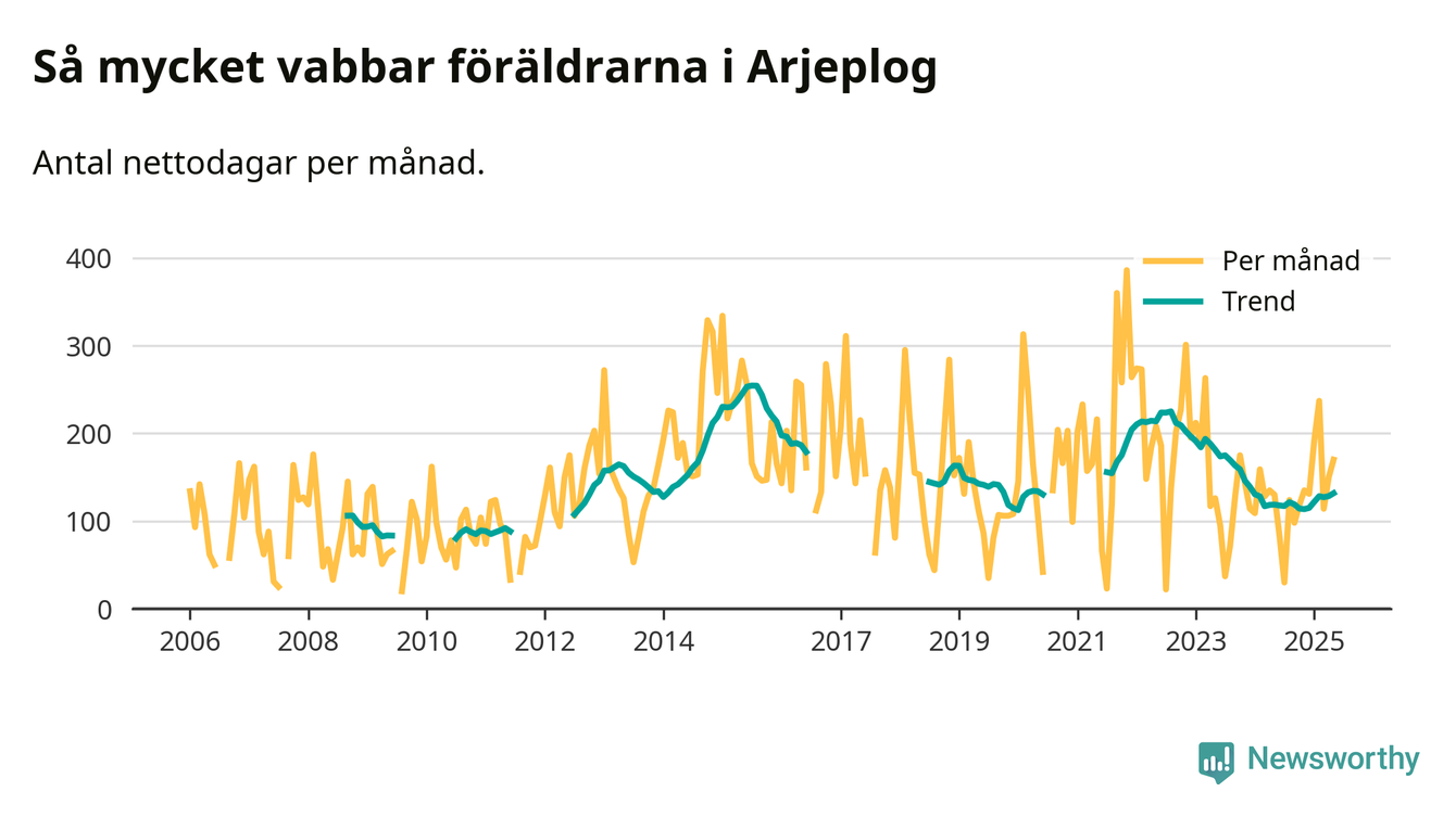 När coronapandemin drog in i mars 2020 peakade antalet vabbdagar i riket som helhet. Under de senaste två åren har vabbuttaget börjat minska igen.