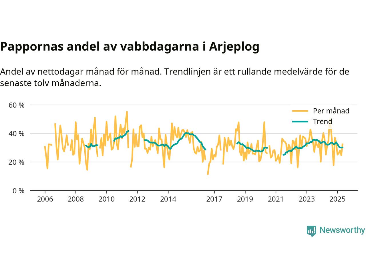 Kraftigt ökat vabbande över tid – men mindre än under pandemin