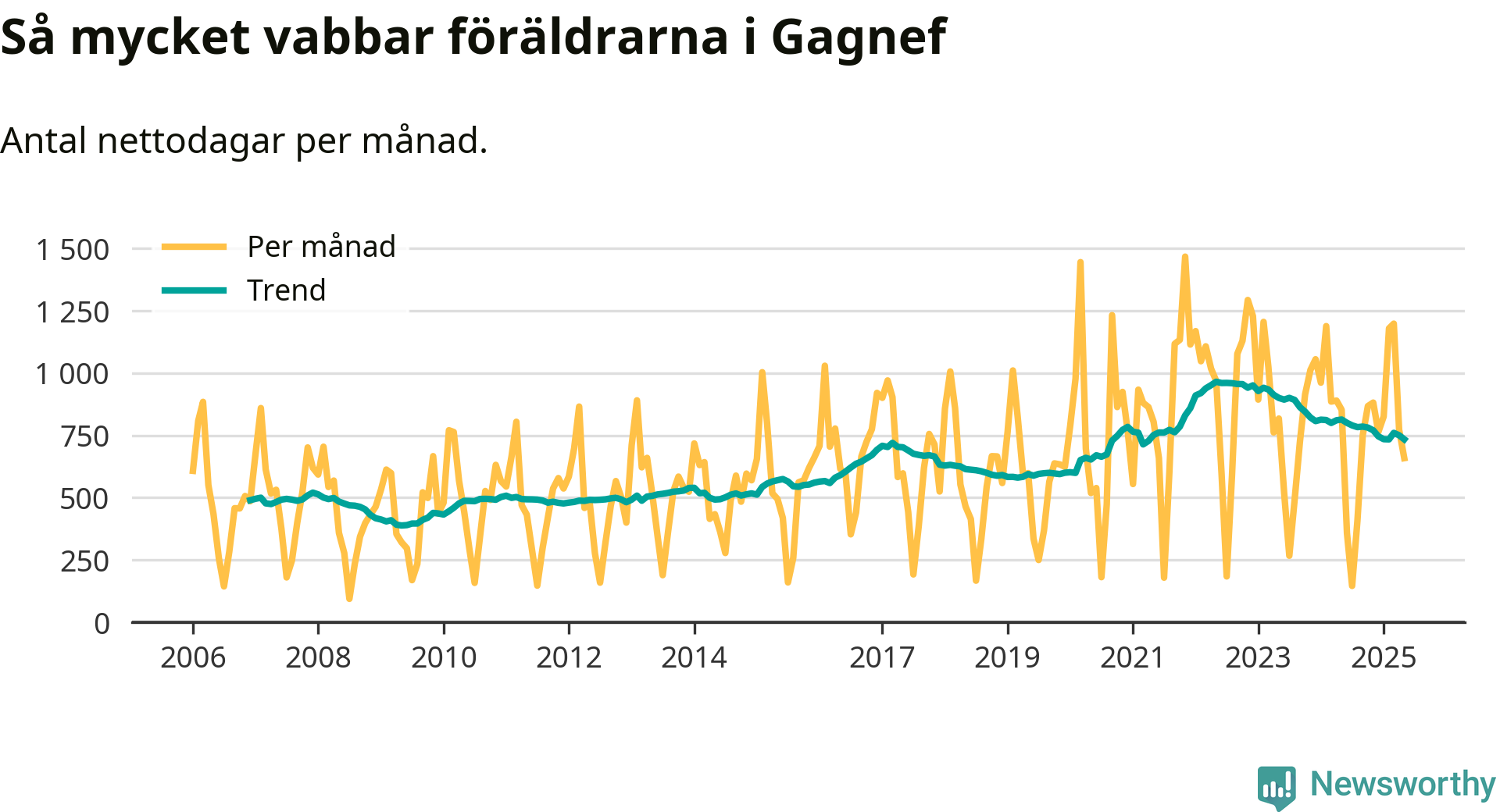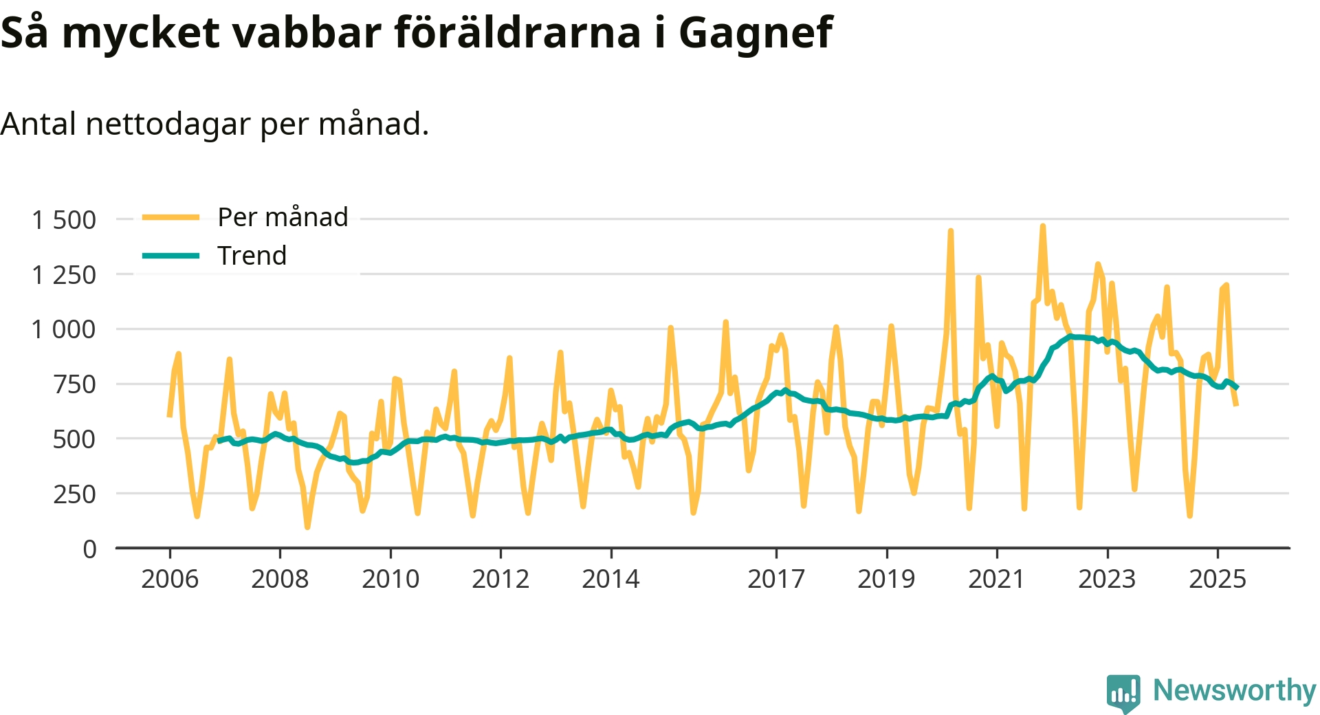 Kraftigt ökat vabbande över tid – men mindre än under pandemin