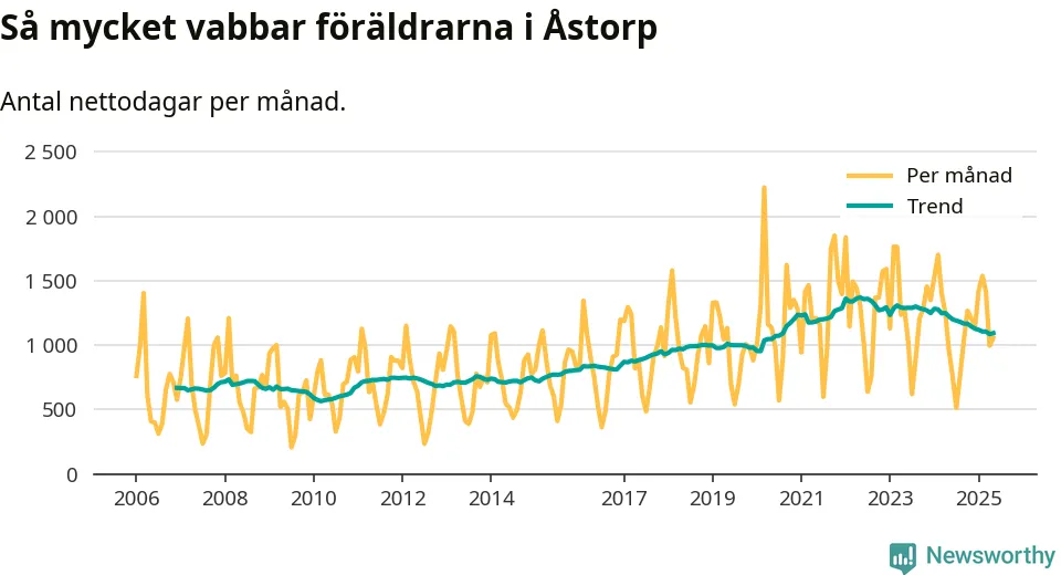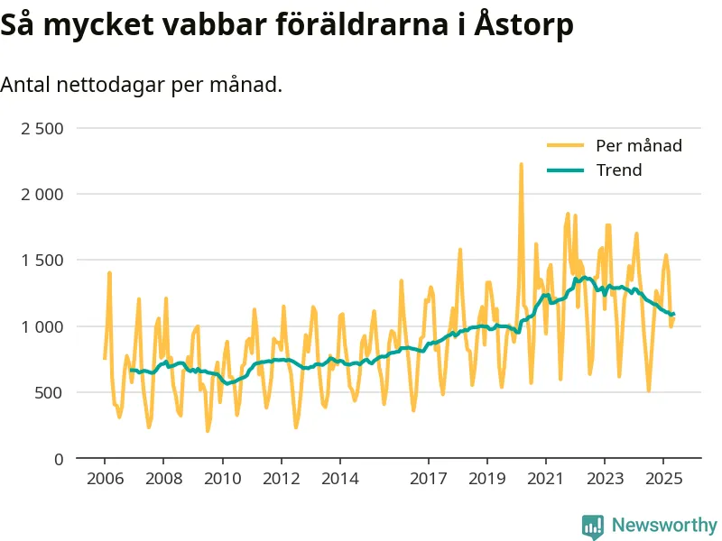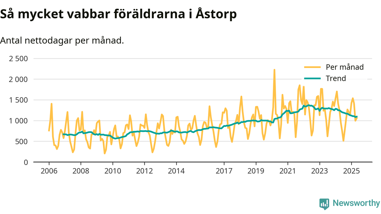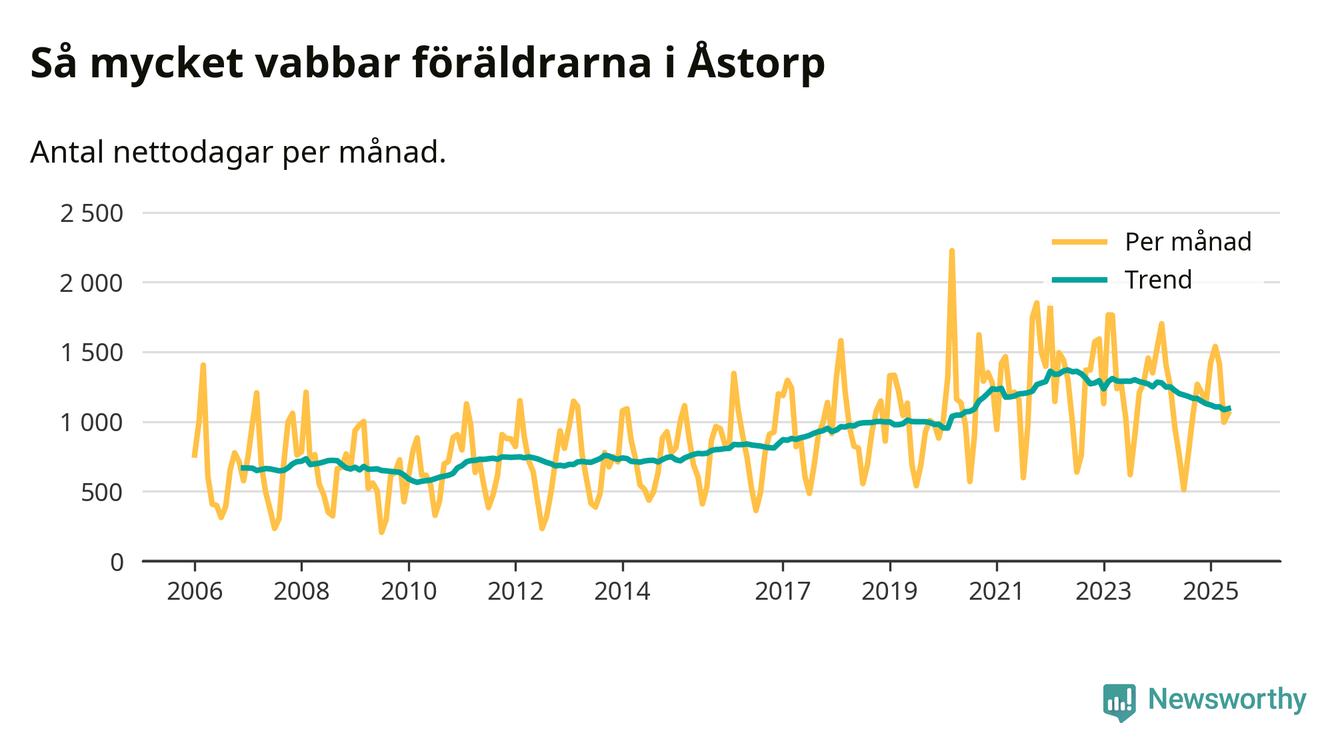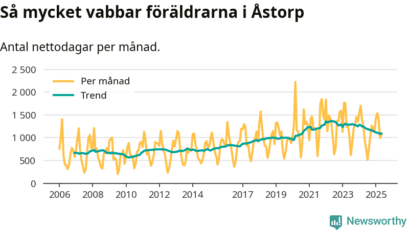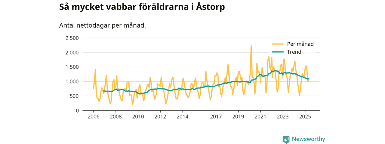 När coronapandemin drog in i mars 2020 peakade antalet vabbdagar både i Åstorps kommun och i riket som helhet. Under de senaste två åren har vabbuttaget börjat minska igen.
