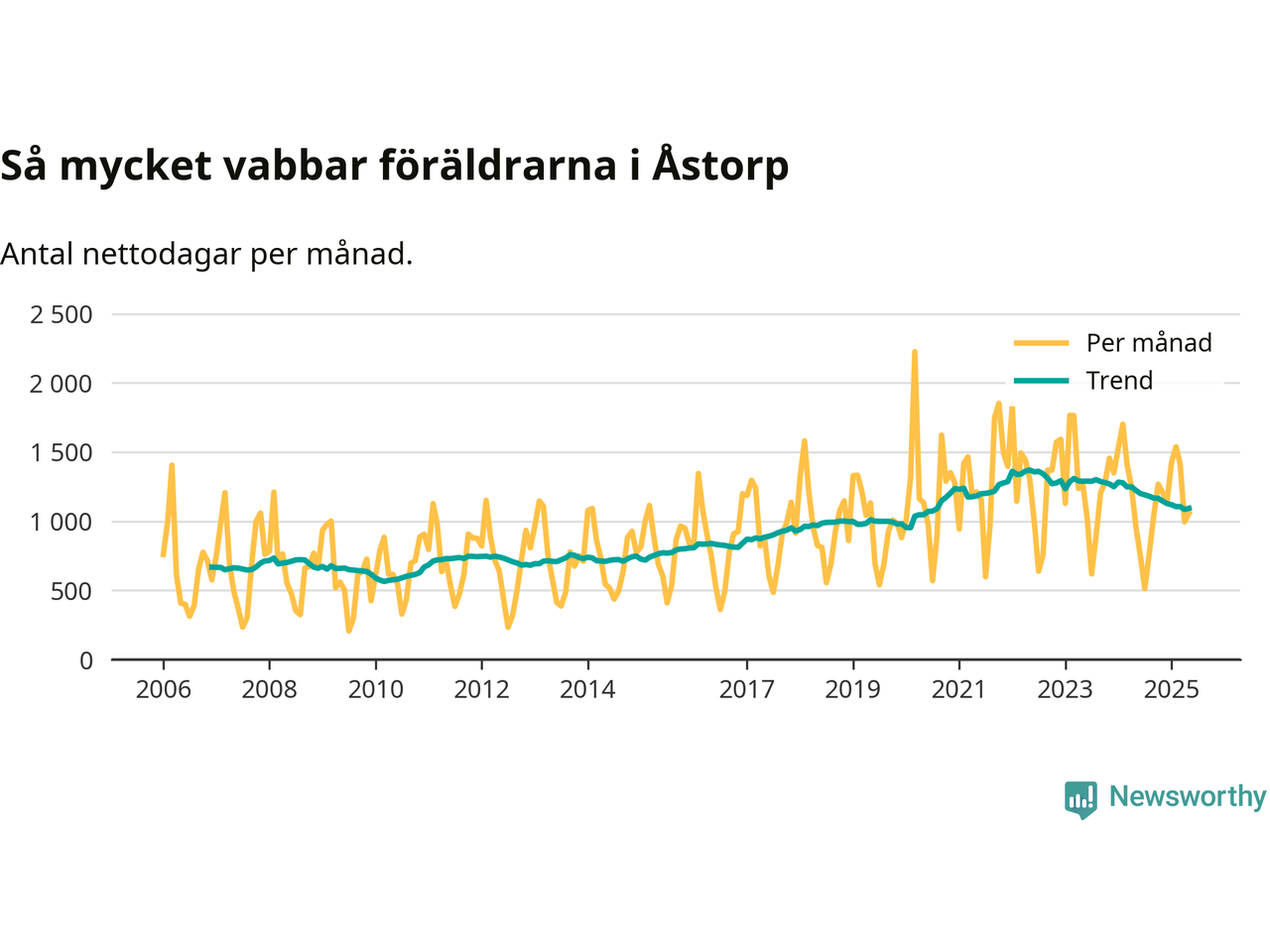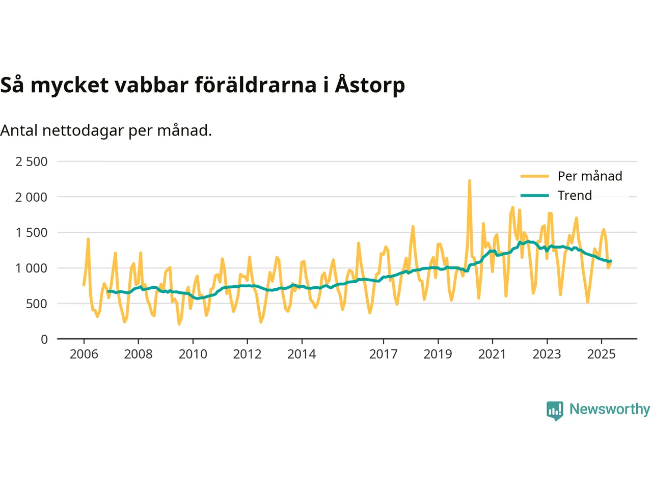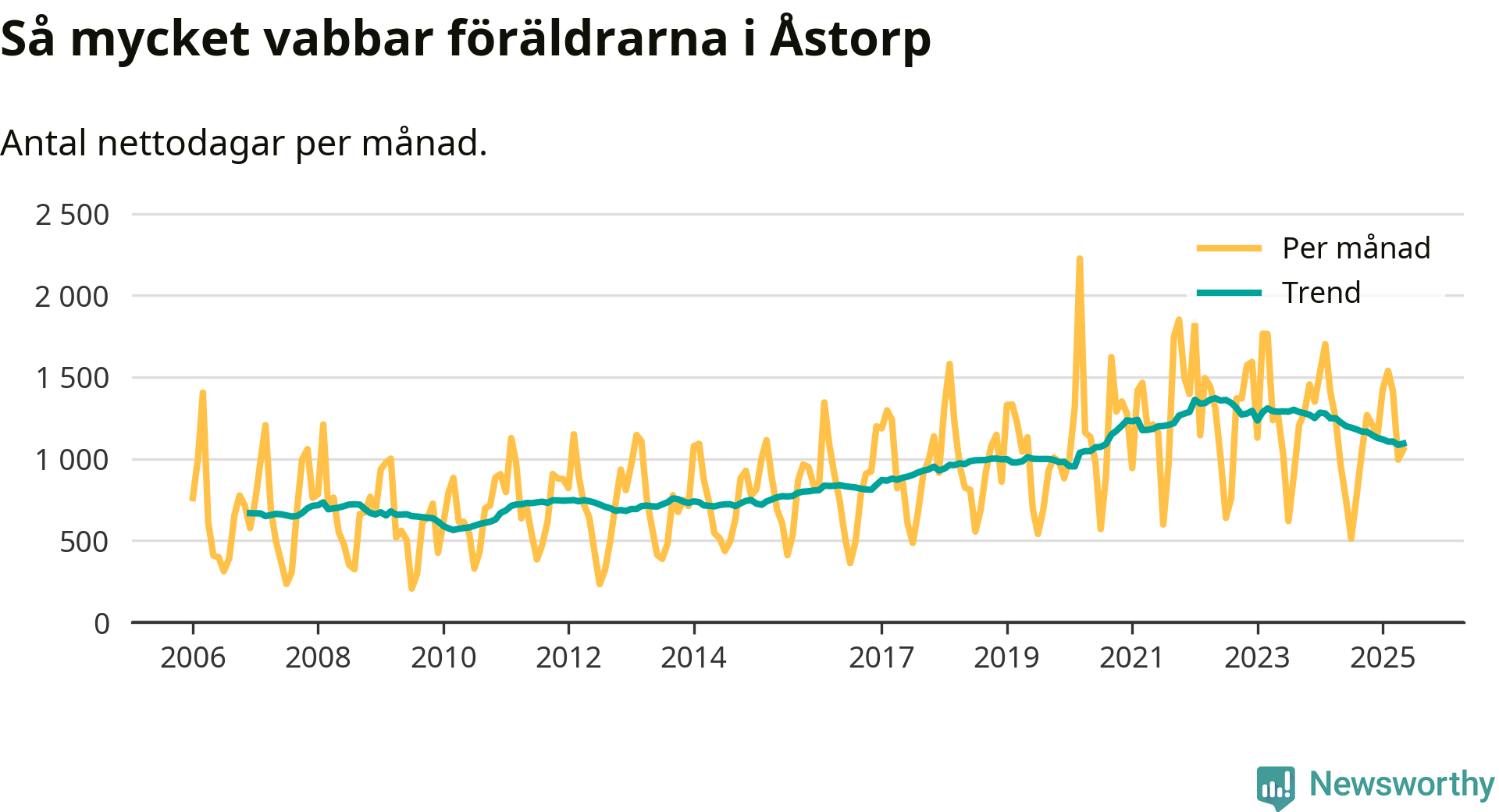 När coronapandemin drog in i mars 2020 peakade antalet vabbdagar både i Åstorps kommun och i riket som helhet. Under de senaste två åren har vabbuttaget börjat minska igen.