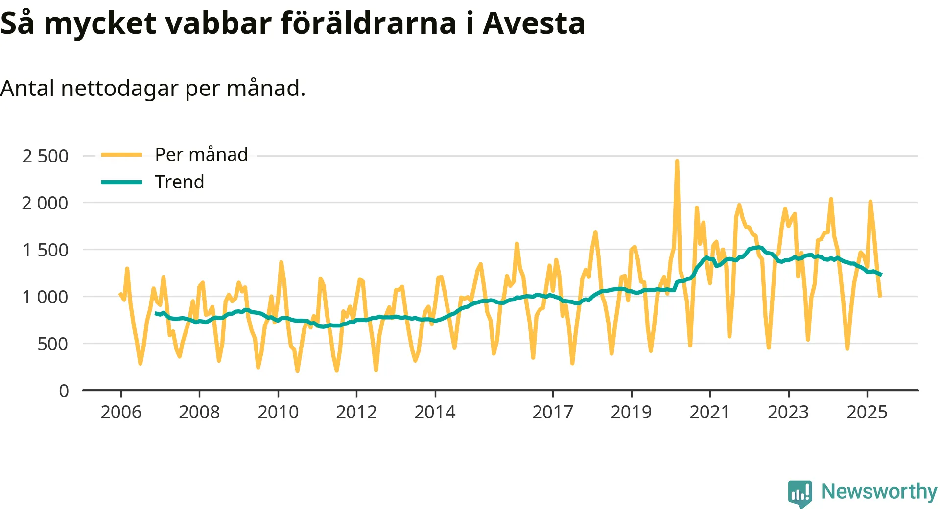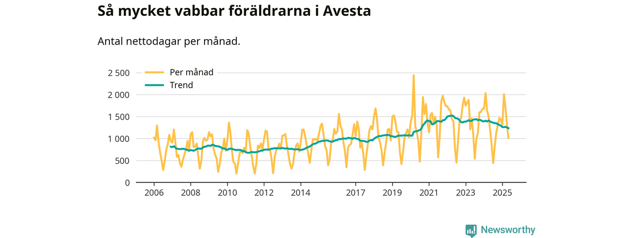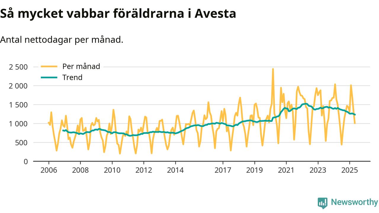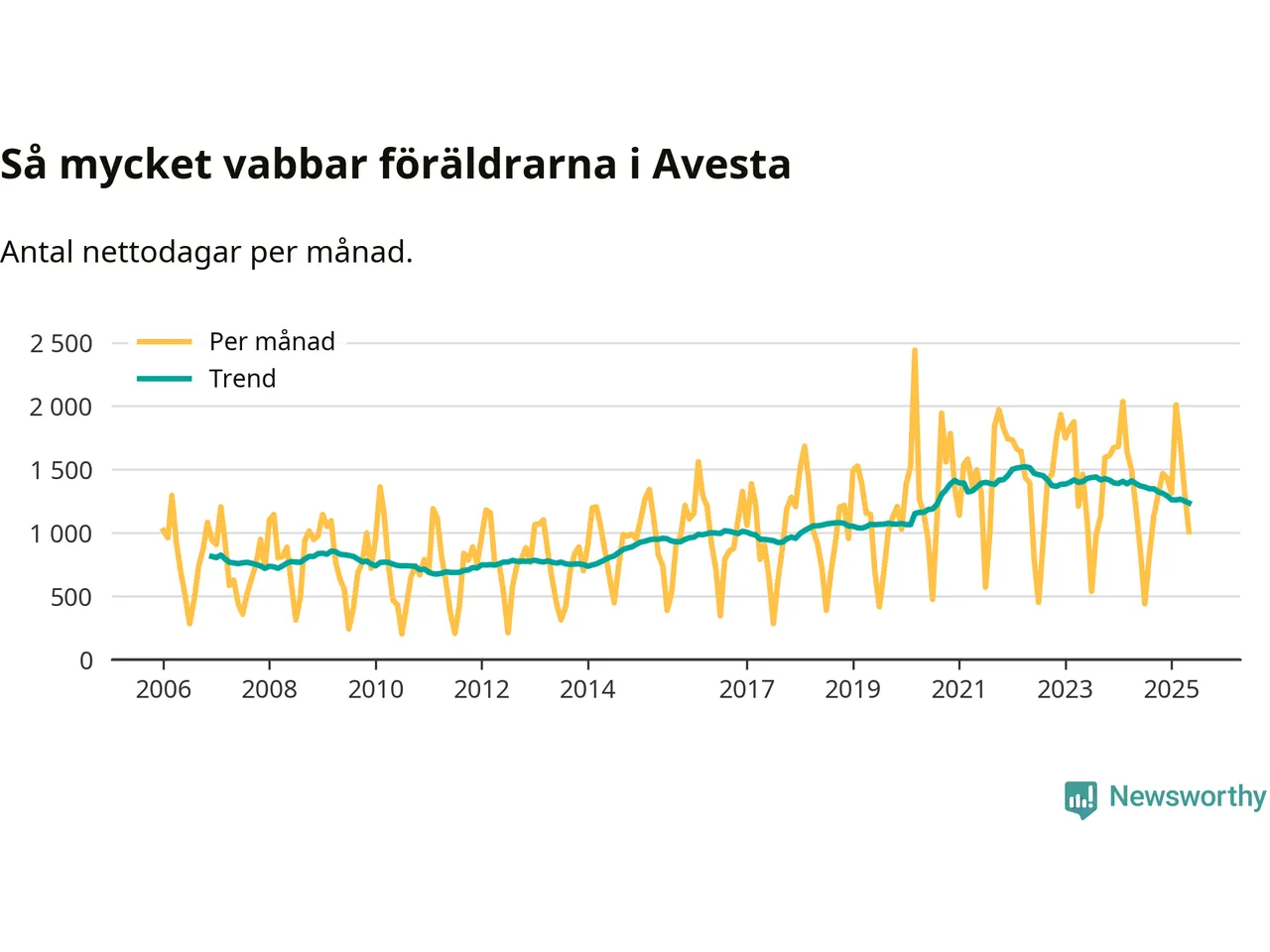 När coronapandemin drog in i mars 2020 peakade antalet vabbdagar både i Avesta kommun och i riket som helhet. Under de senaste två åren har vabbuttaget börjat minska igen.