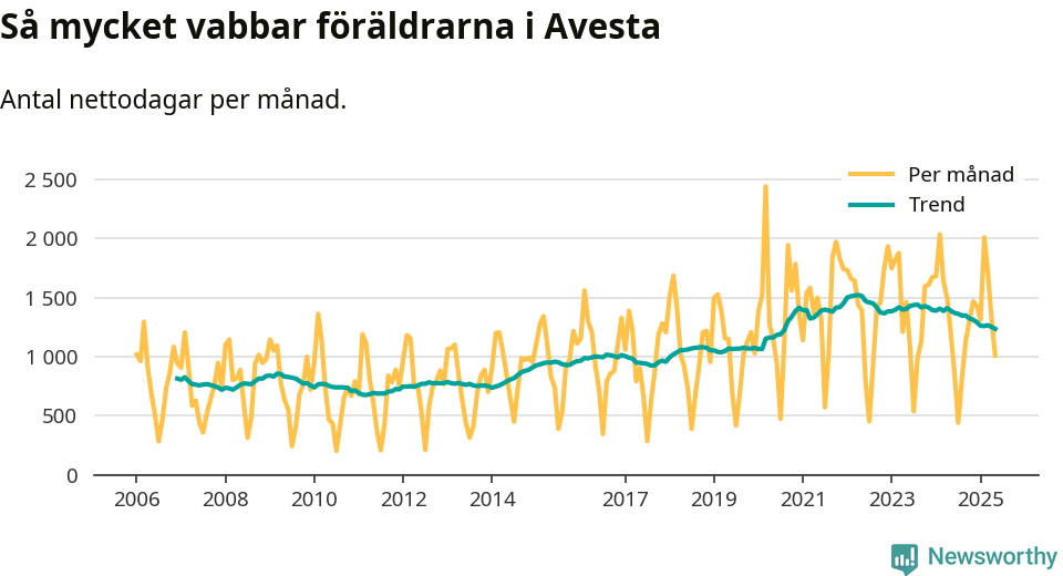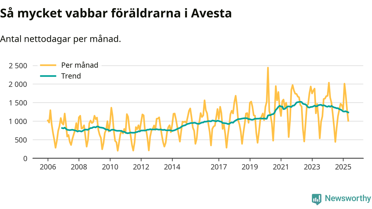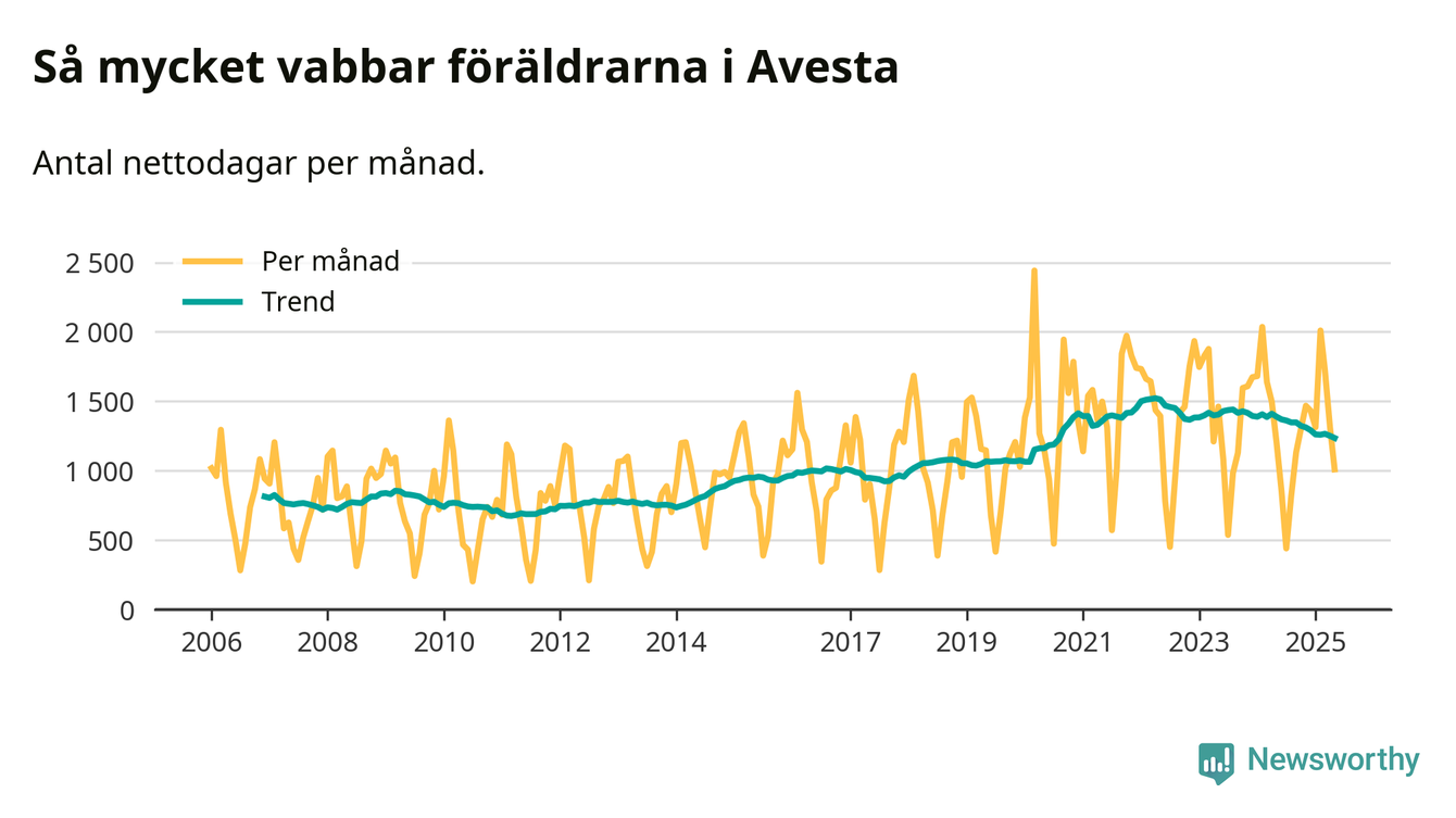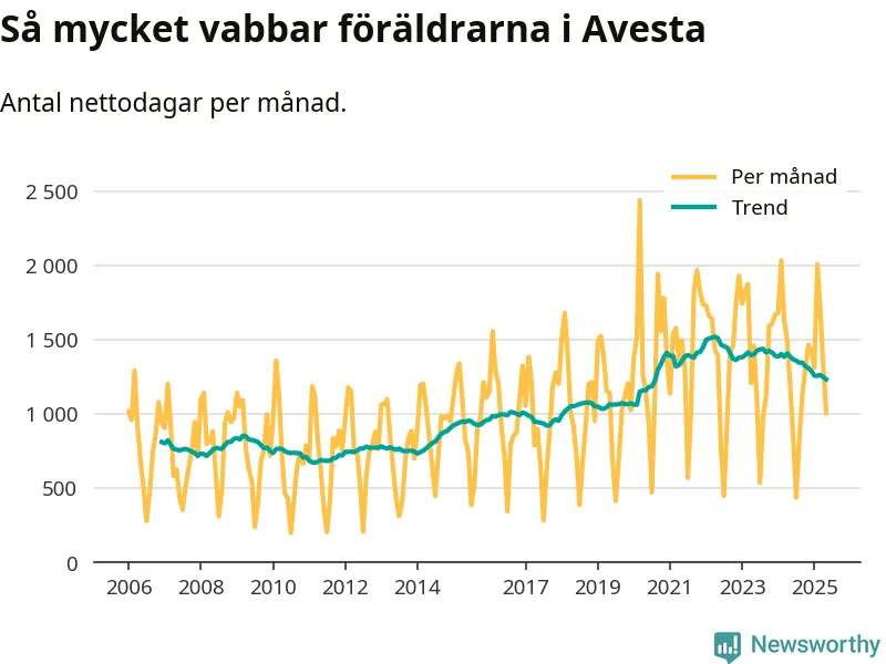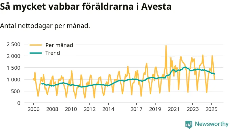 När coronapandemin drog in i mars 2020 peakade antalet vabbdagar både i Avesta kommun och i riket som helhet. Under de senaste två åren har vabbuttaget börjat minska igen.