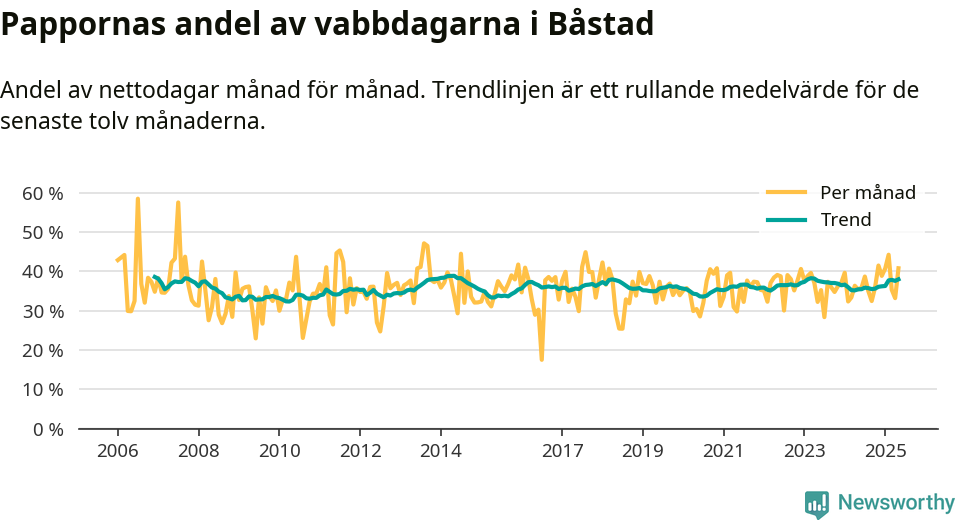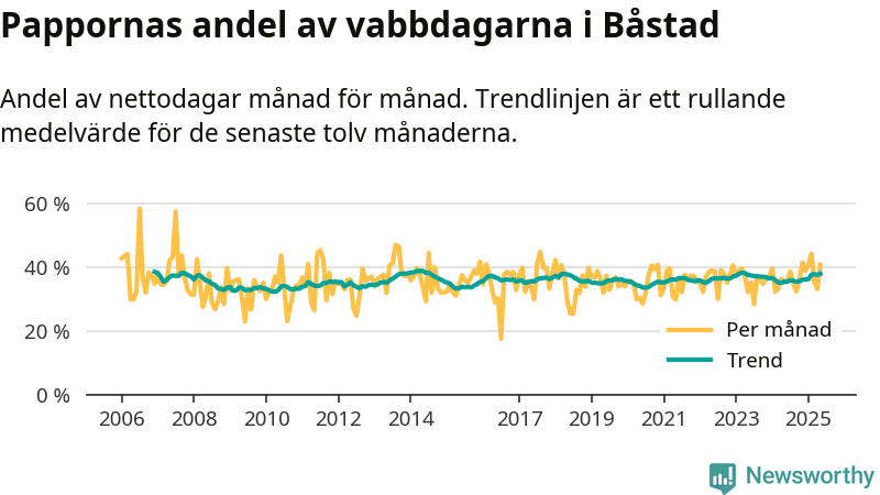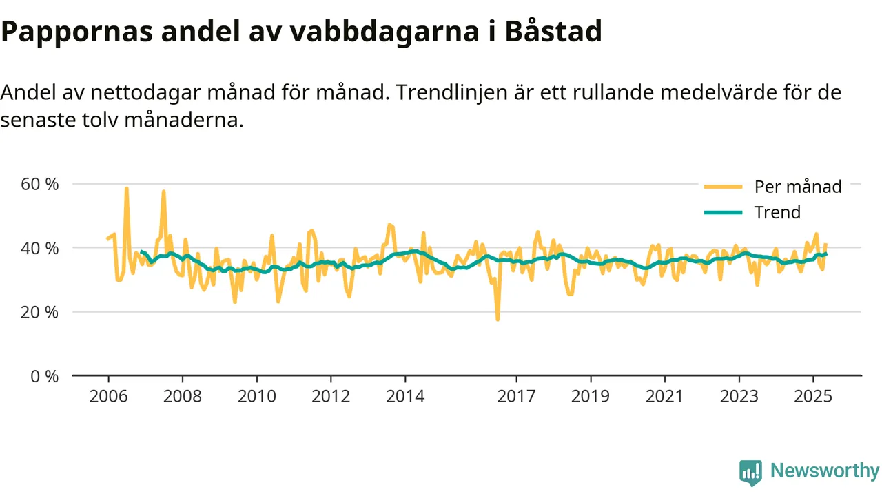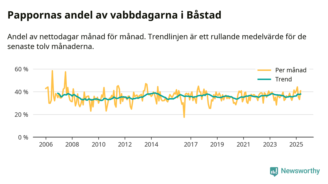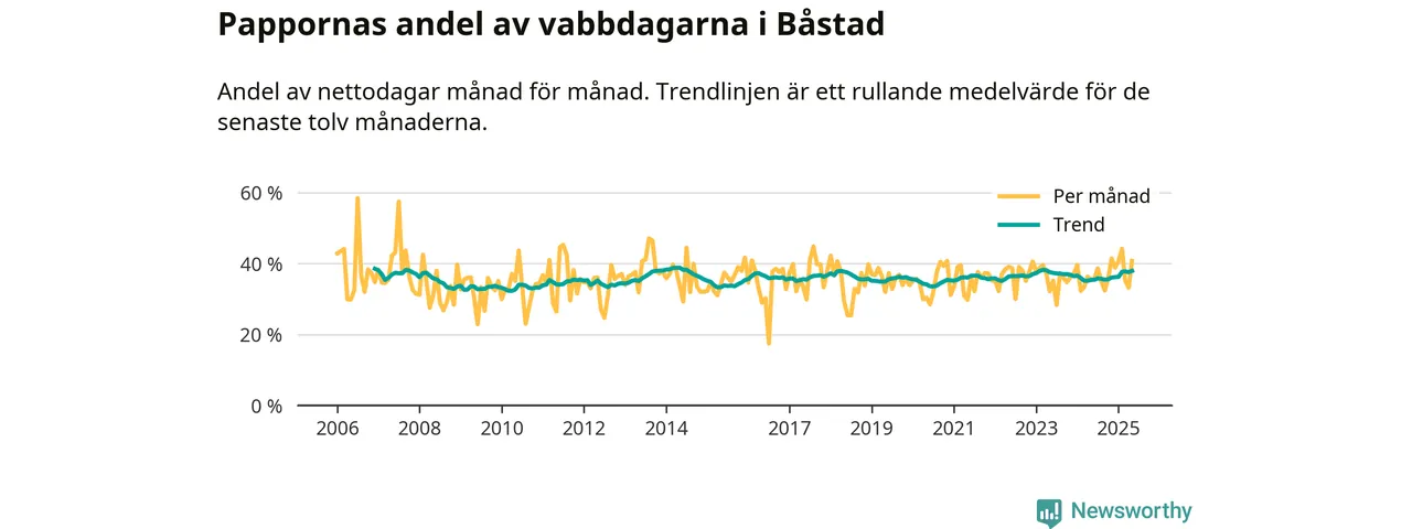 Pappor i Båstad vabbar ungefär som rikssnittet, men mer än andra män i Skåne län (36 procent). Skillnaderna inom landet är stora. Dorotea är den enda kommun i landet som når 50–50-fördelning.