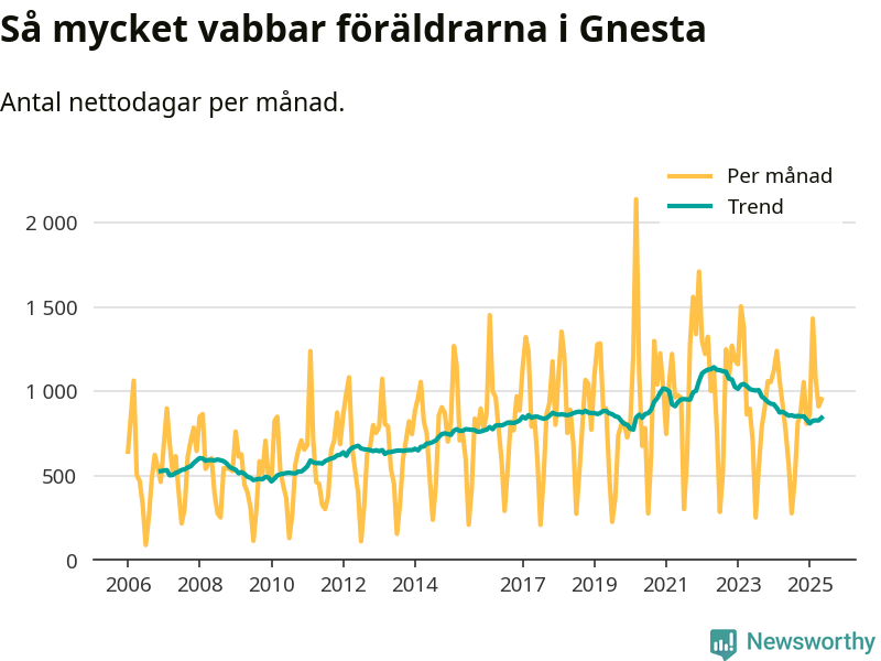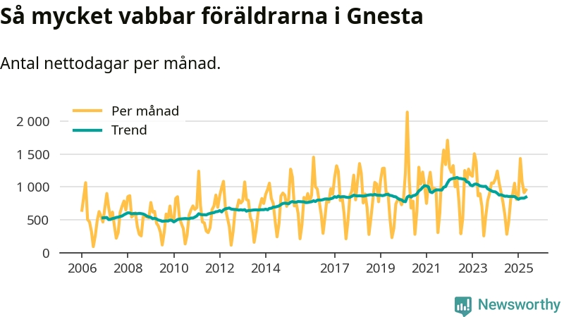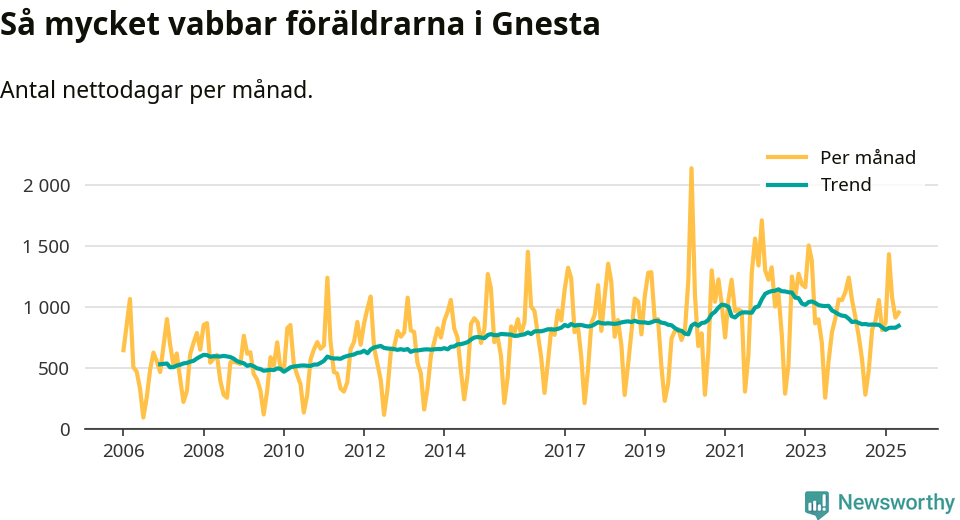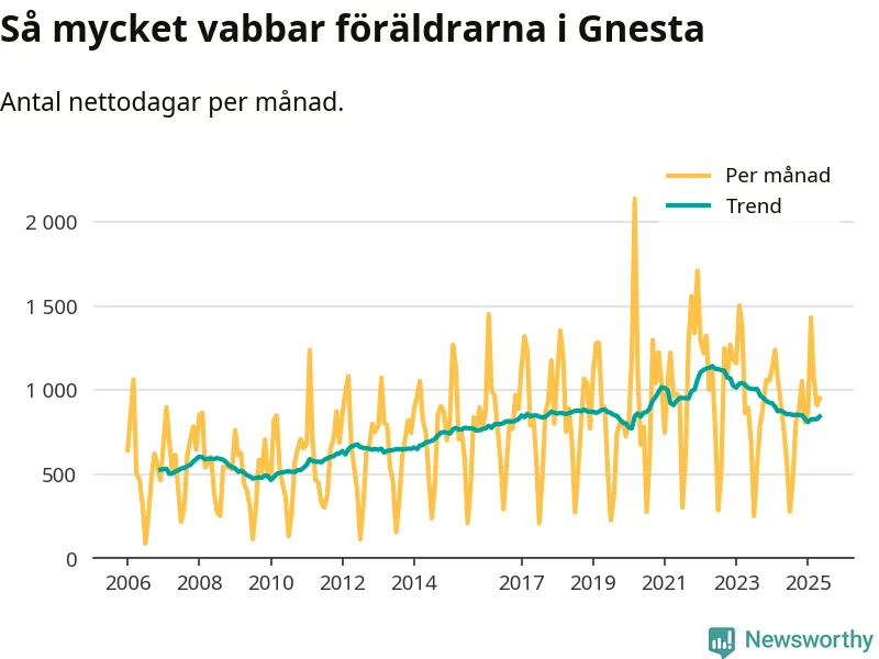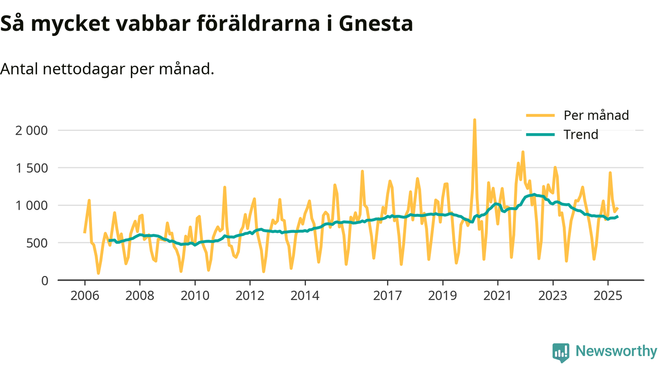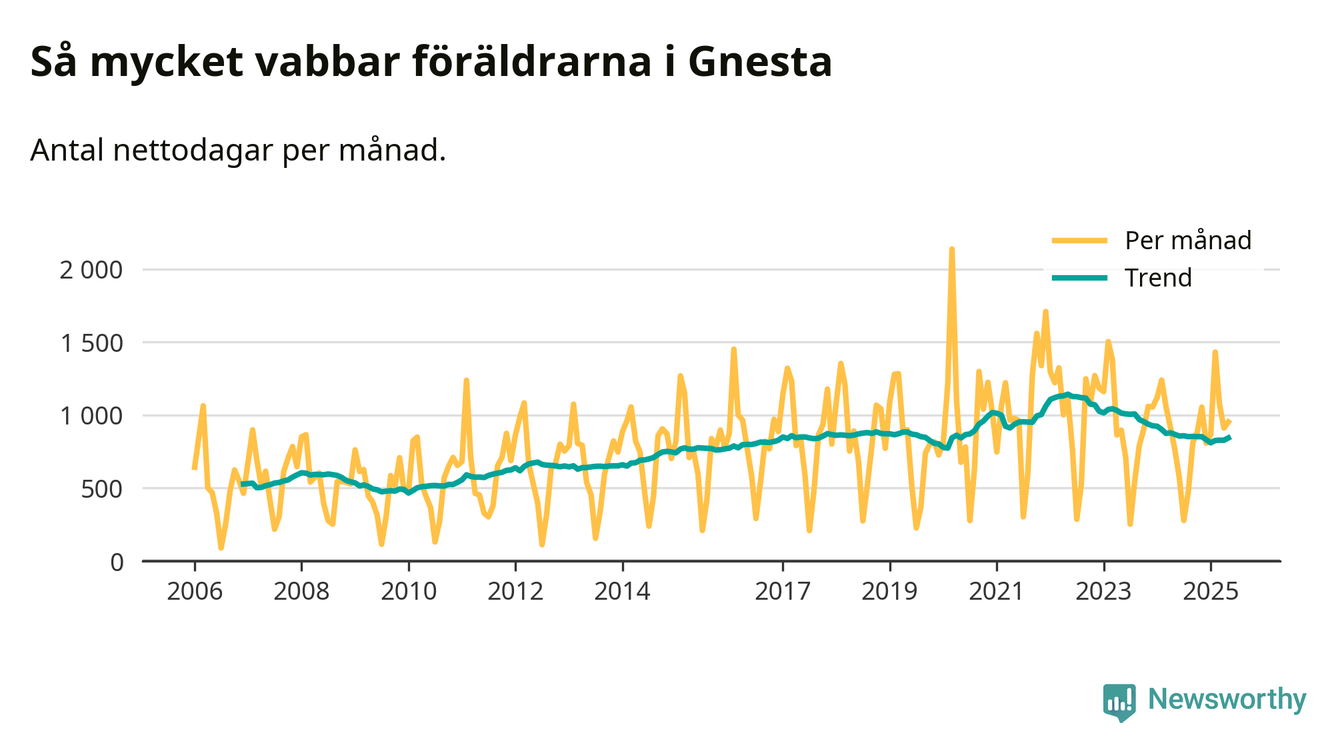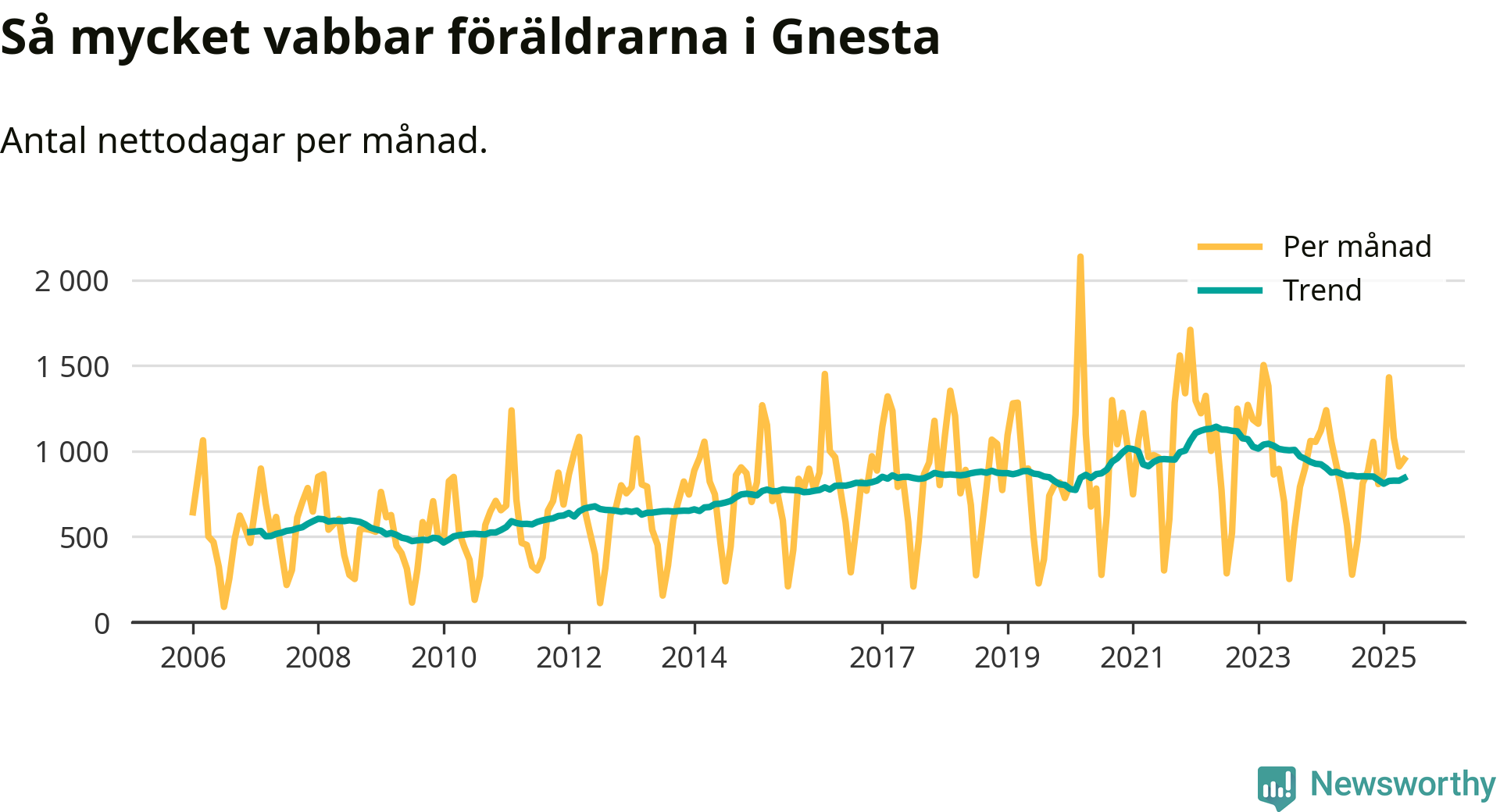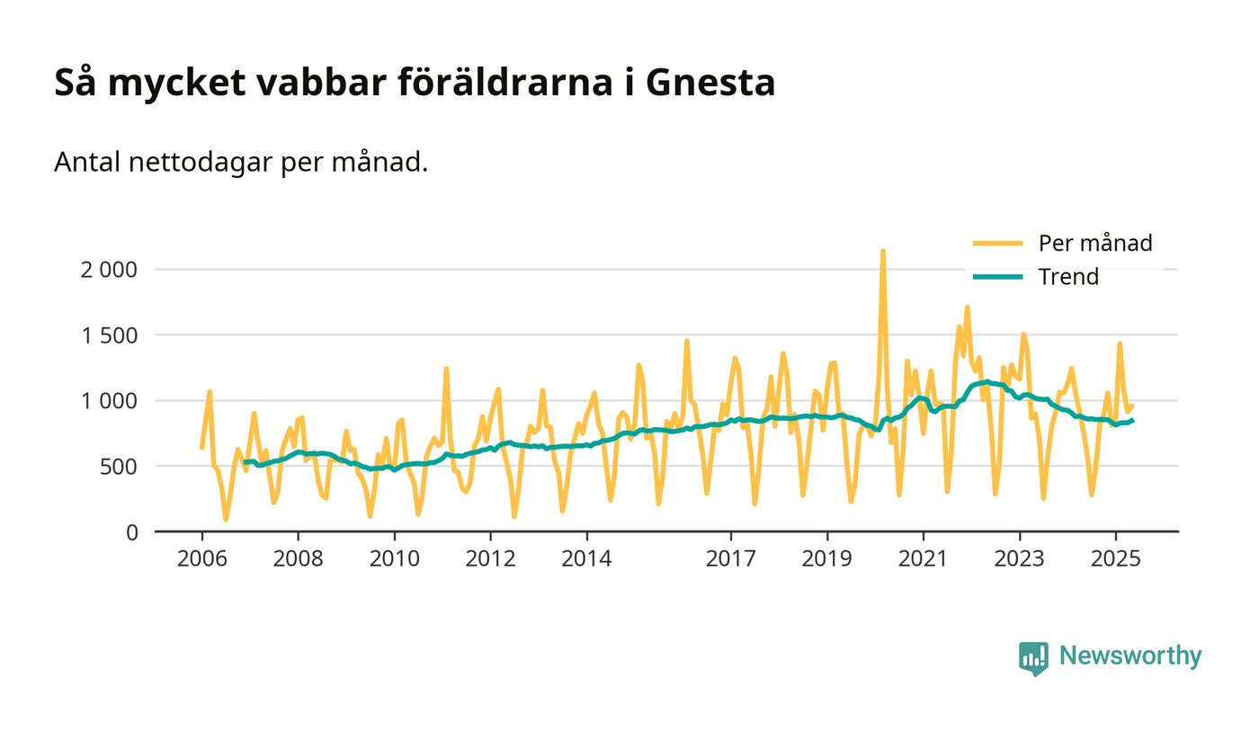 När coronapandemin drog in i mars 2020 peakade antalet vabbdagar både i Gnesta kommun och i riket som helhet. Under de senaste två åren har vabbuttaget börjat minska igen.