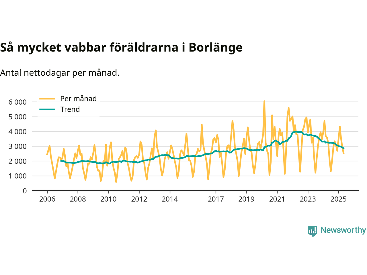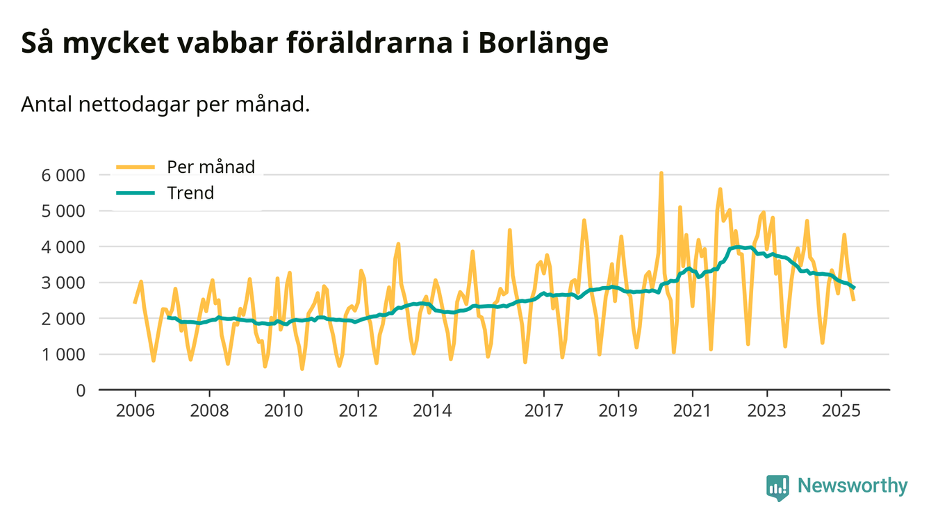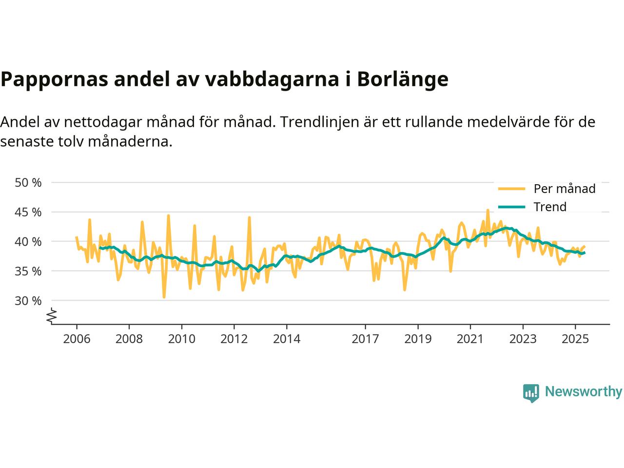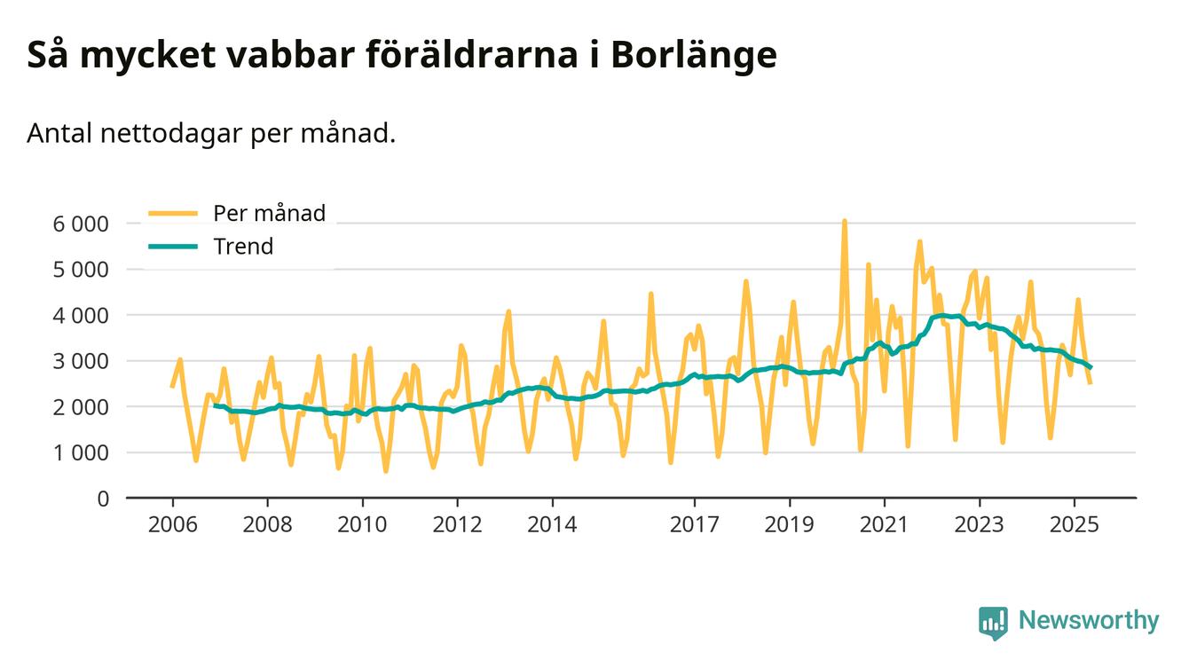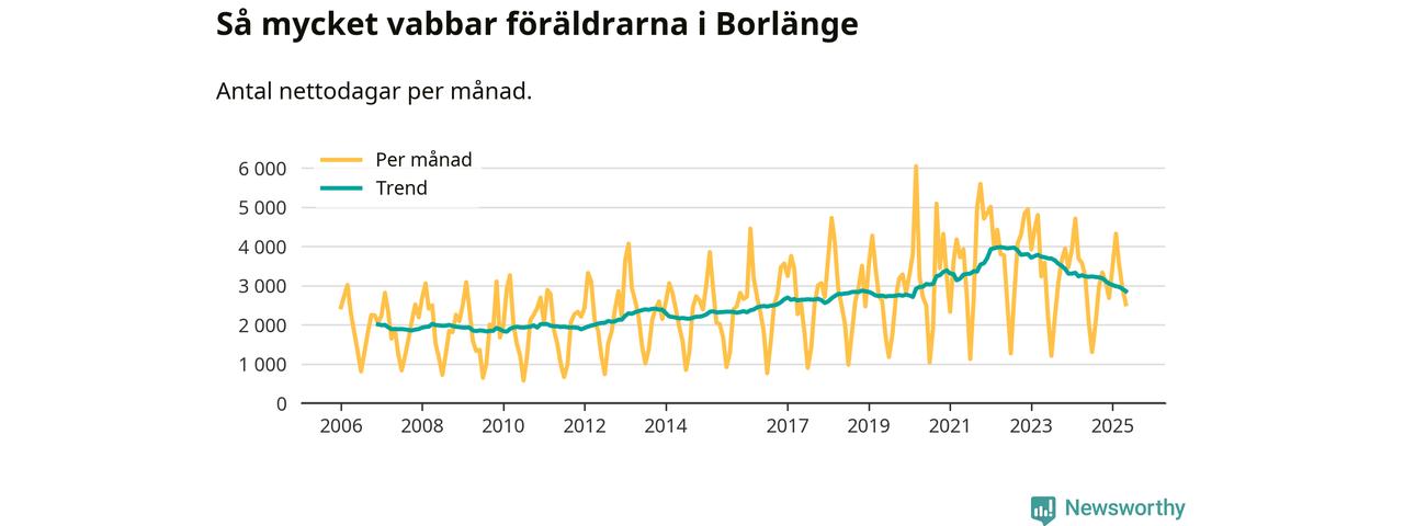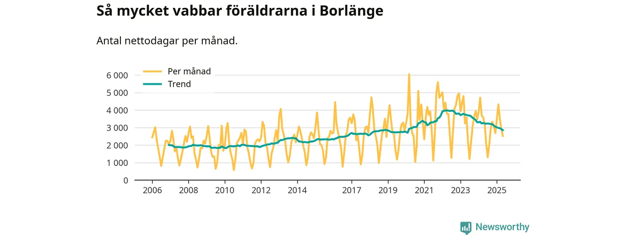 När coronapandemin drog in i mars 2020 peakade antalet vabbdagar både i Borlänge kommun och i riket som helhet. Under de senaste två åren har vabbuttaget börjat minska igen.