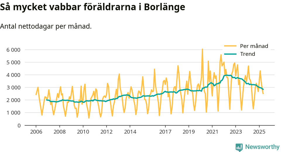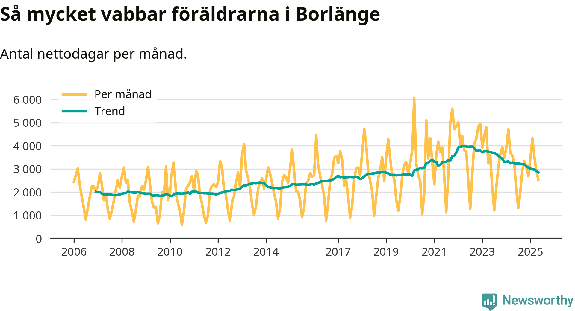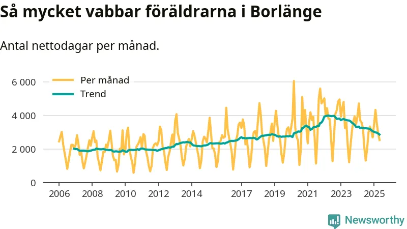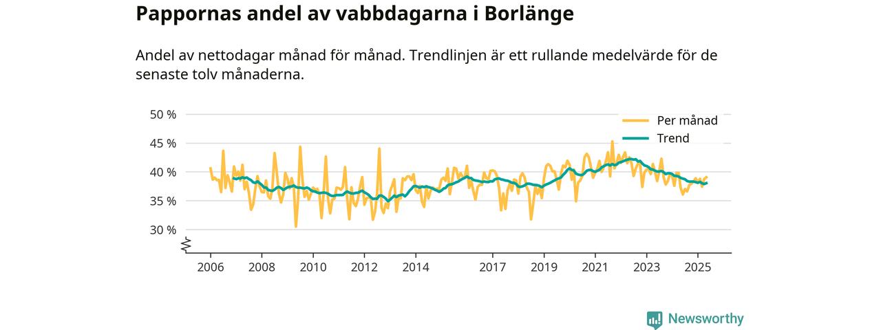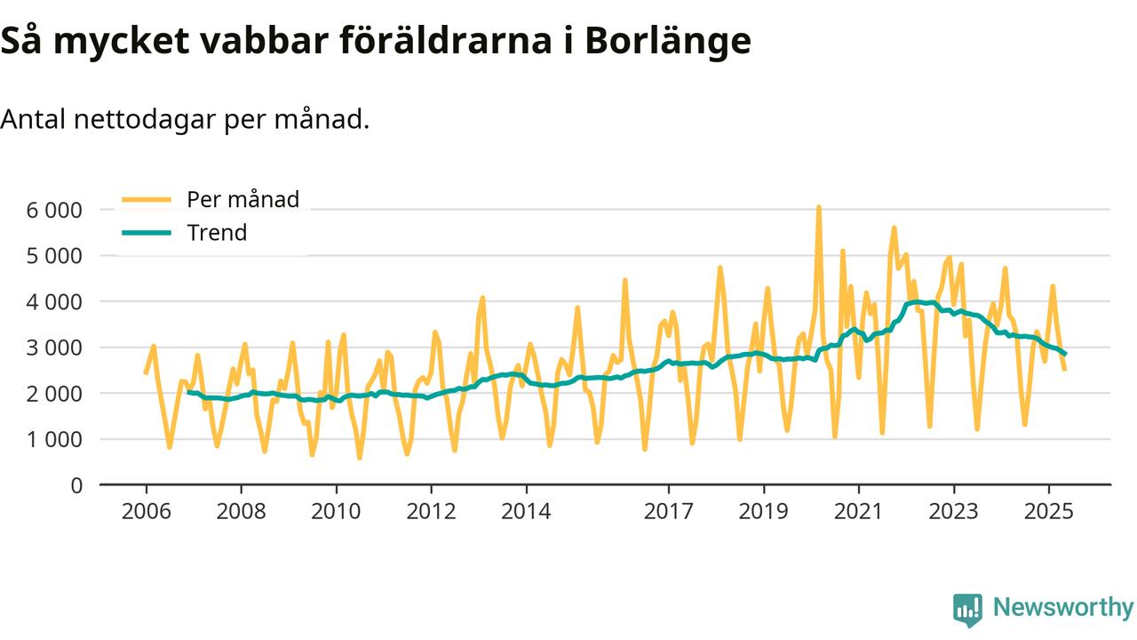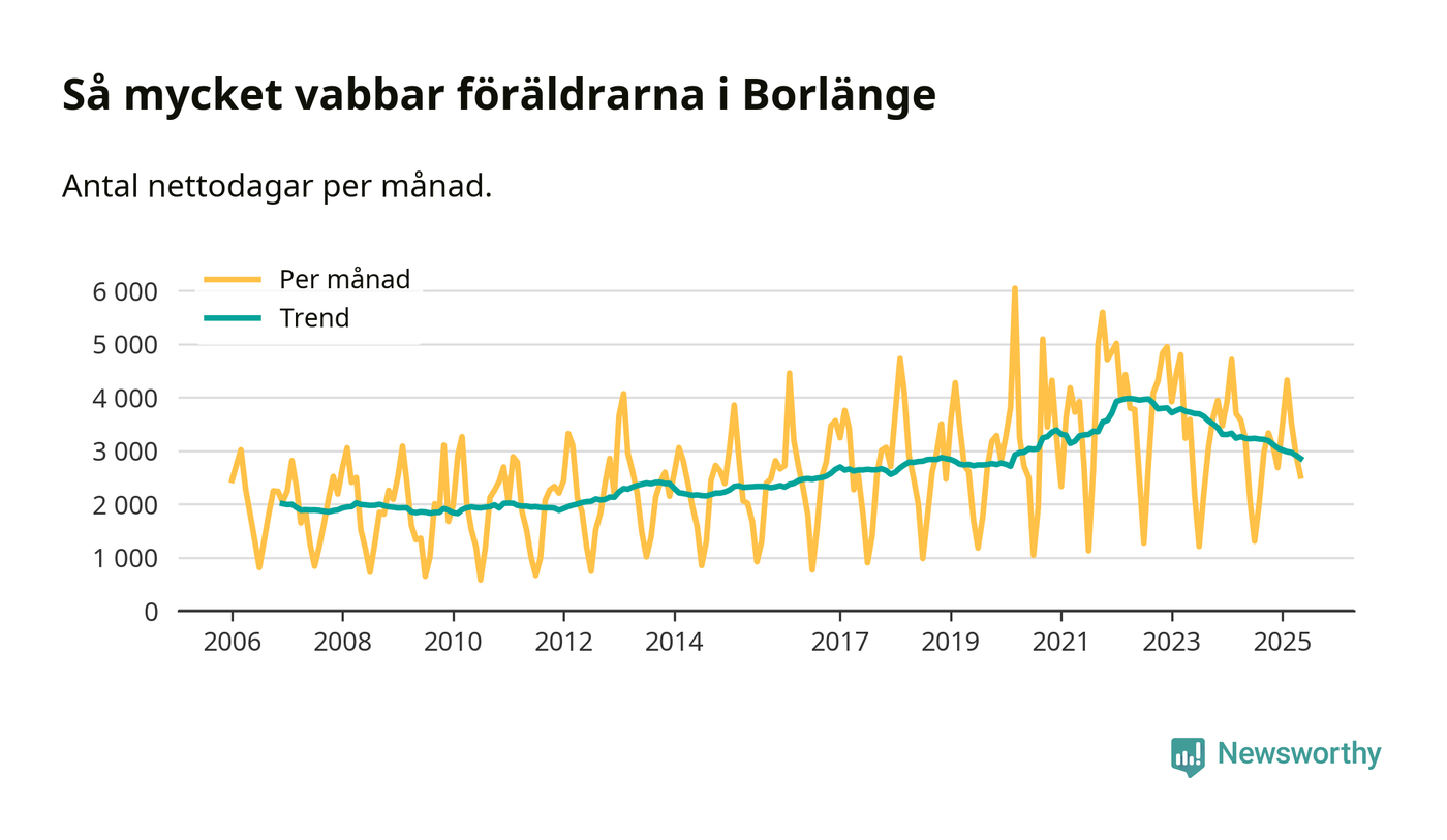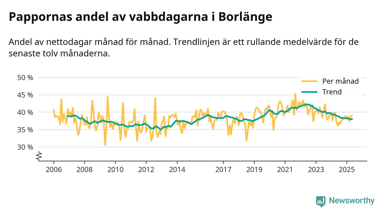 När coronapandemin drog in i mars 2020 peakade antalet vabbdagar både i Borlänge kommun och i riket som helhet. Under de senaste två åren har vabbuttaget börjat minska igen.