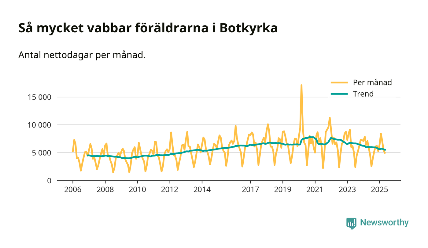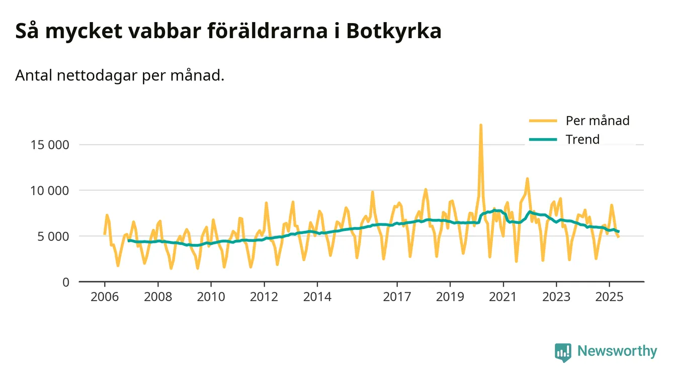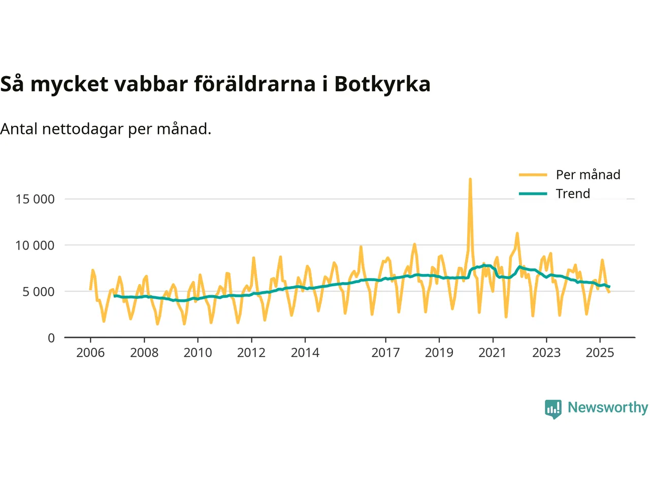 När coronapandemin drog in i mars 2020 peakade antalet vabbdagar både i Botkyrka kommun och i riket som helhet. Under de senaste två åren har vabbuttaget börjat minska igen.