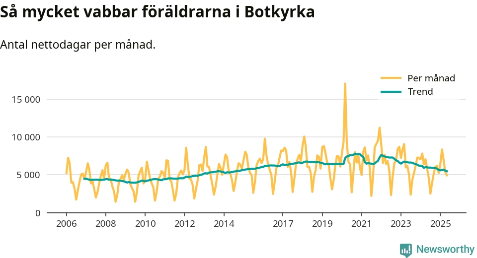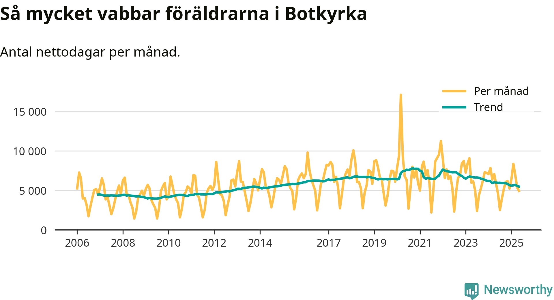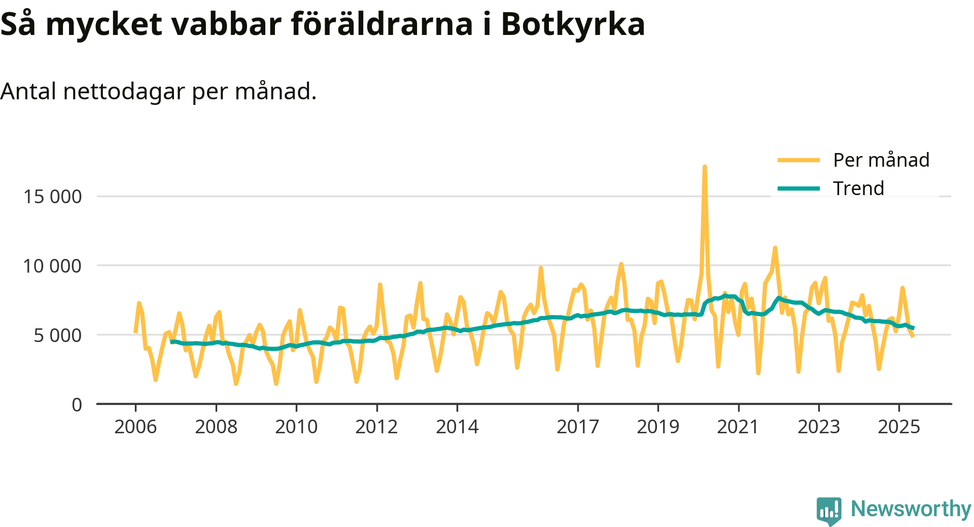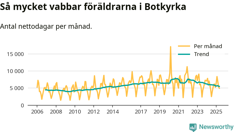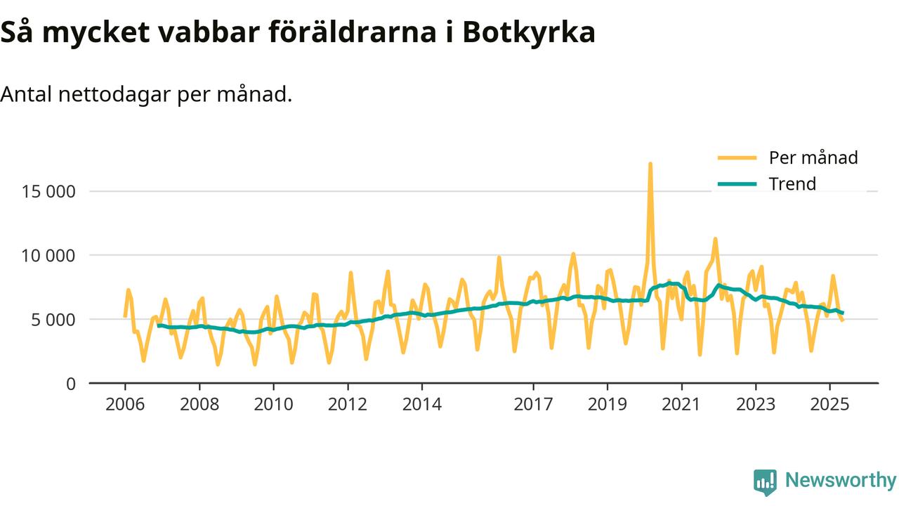 När coronapandemin drog in i mars 2020 peakade antalet vabbdagar både i Botkyrka kommun och i riket som helhet. Under de senaste två åren har vabbuttaget börjat minska igen.