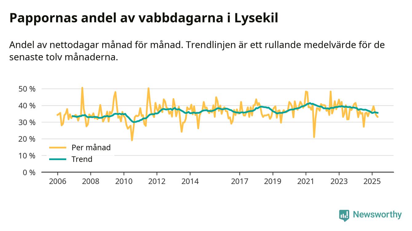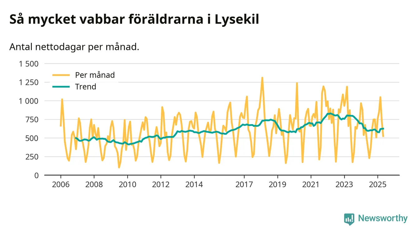 Lysekil ligger en bit från ett jämställt uttag. Under de senaste tolv månaderna har männen stått för 36 procent av all vabb i kommunen. I år har andelen varit lägre än på nästan sex år.