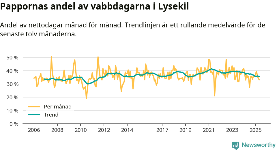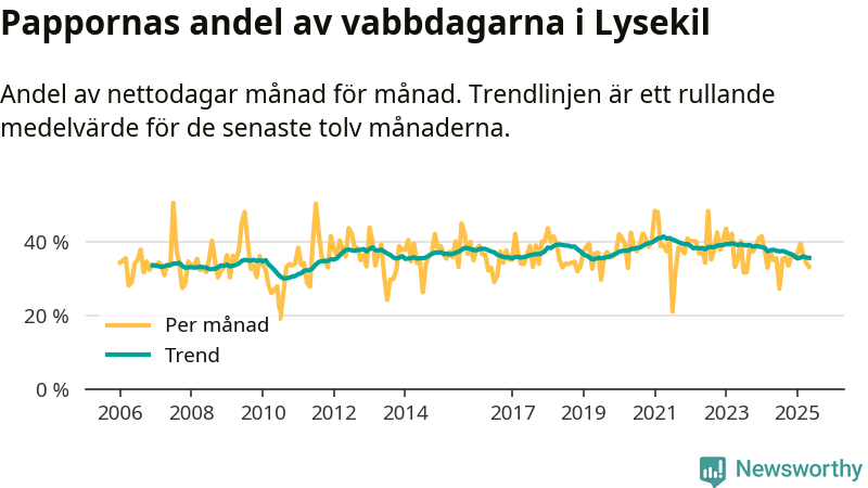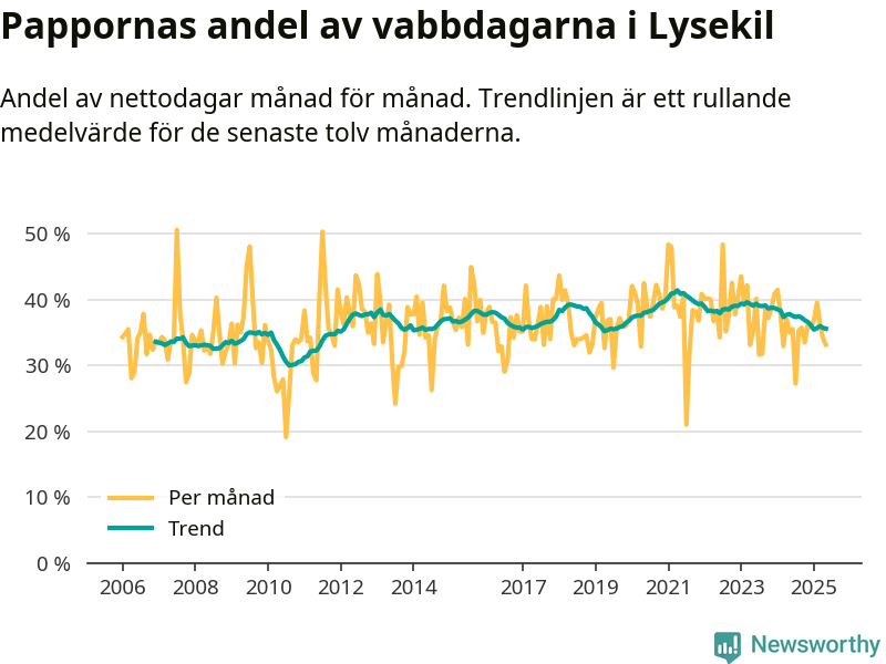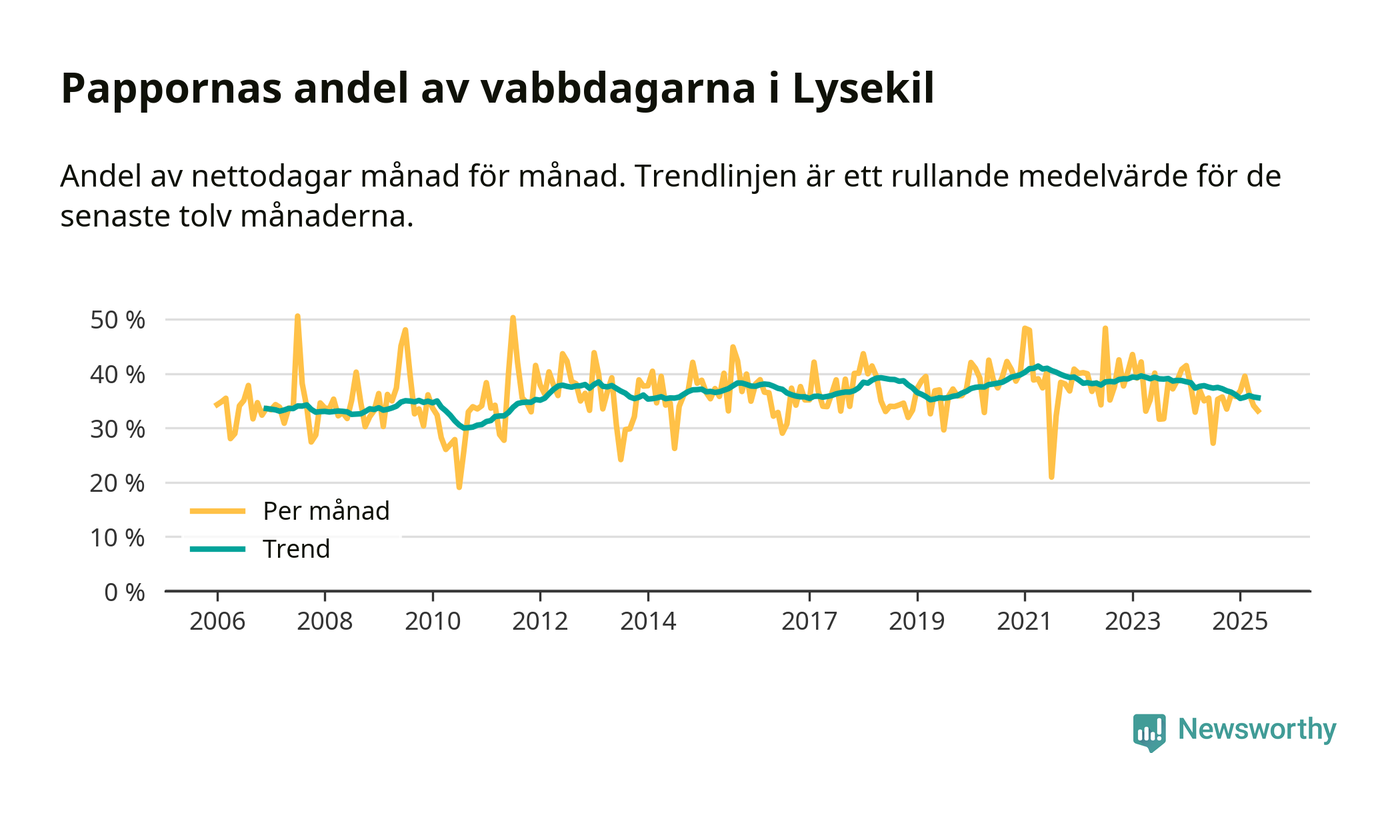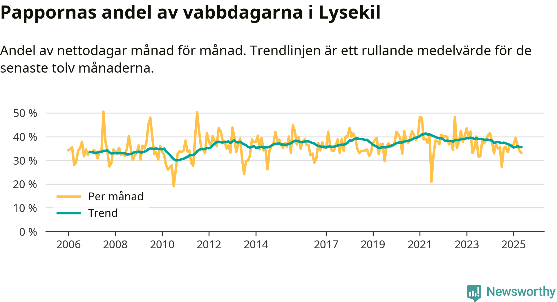 Pappor i Lysekil vabbar mindre än rikssnittet (38 procent), och även mindre än andra män i Västra Götalands län (38 procent). Skillnaderna inom landet är stora. Dorotea är den enda kommun i landet som når 50–50-fördelning.