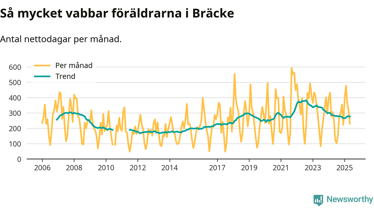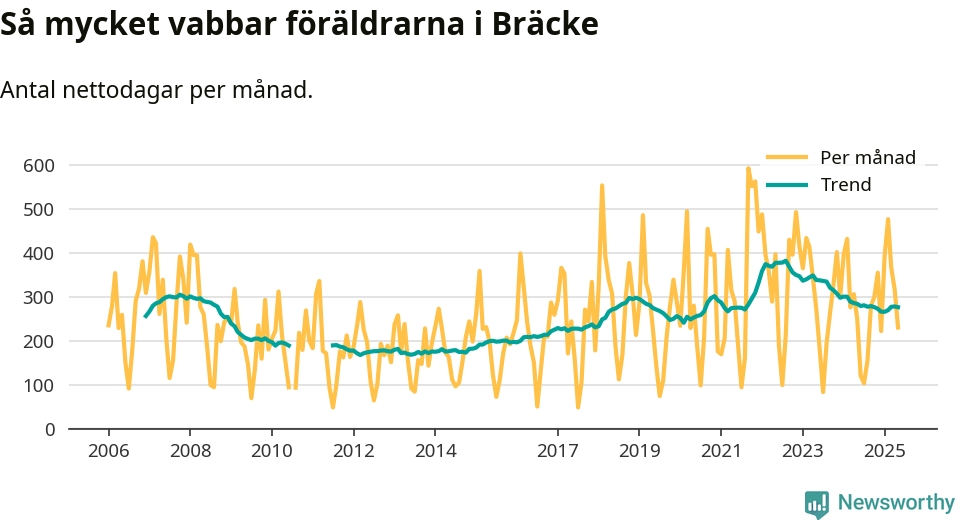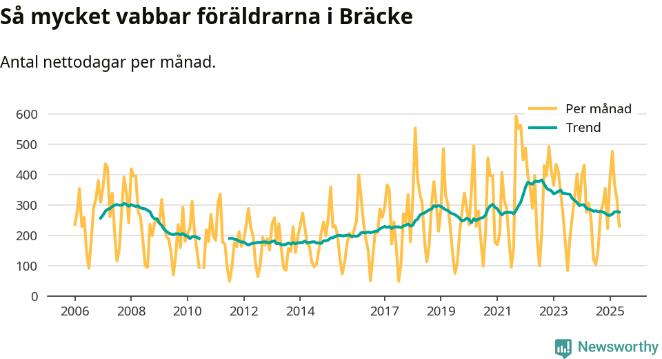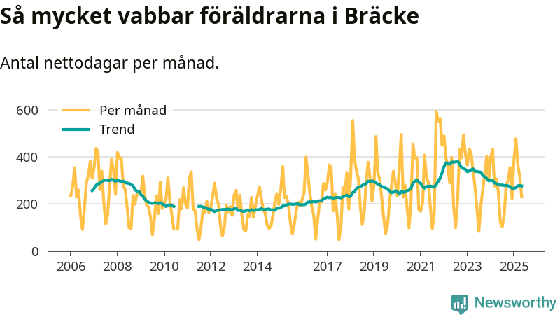 November är den månad då vabbsäsongen drar igång på allvar. Föräldrar i Bräcke kommer vara hemma med sjuka barn över 400 dagar bara den här månaden – och mammorna kommer att dra det största lasset.