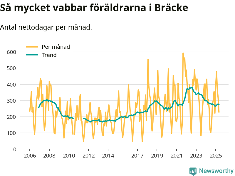 Trenden fortsätter – pappor jobbar, mammor stannar hemma när barnen är sjuka. I Bräcke kommun har föräldrarnas uttag det senaste året varit mer ojämställt än på flera år.