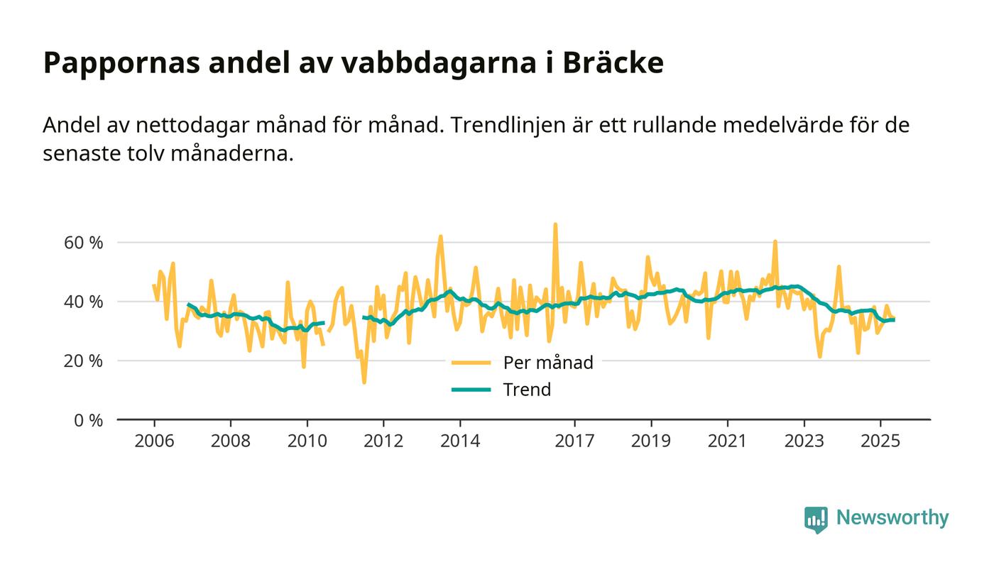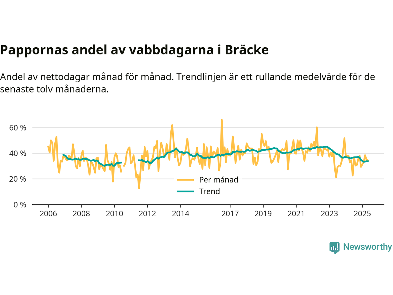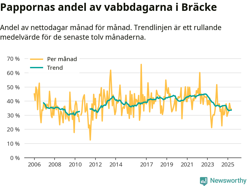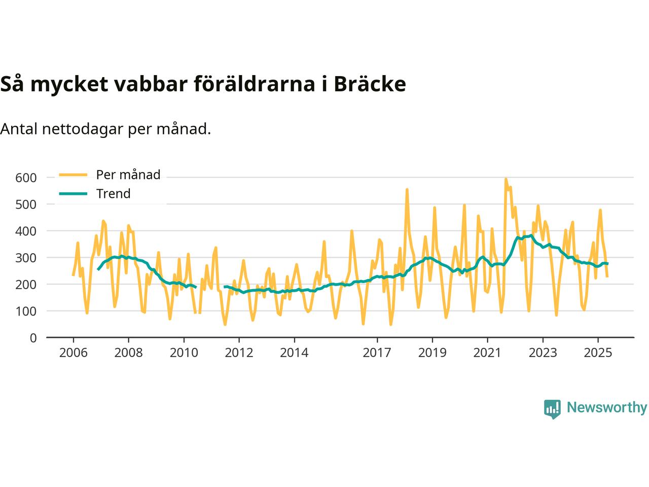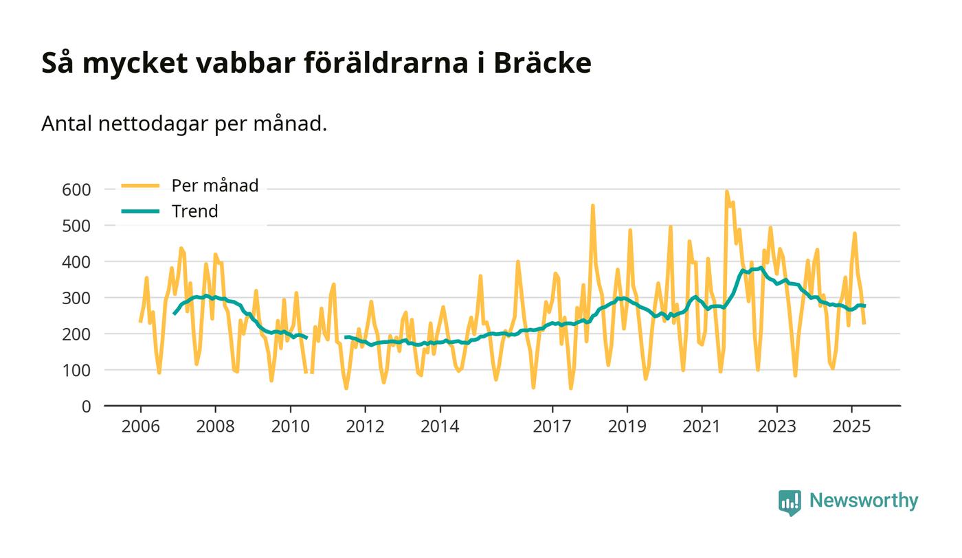 Bräcke ligger en bra bit från ett jämställt uttag. Under de senaste tolv månaderna har männen stått för 34 procent av all vabb i kommunen. I år har andelen varit lägre än på över 13 år.