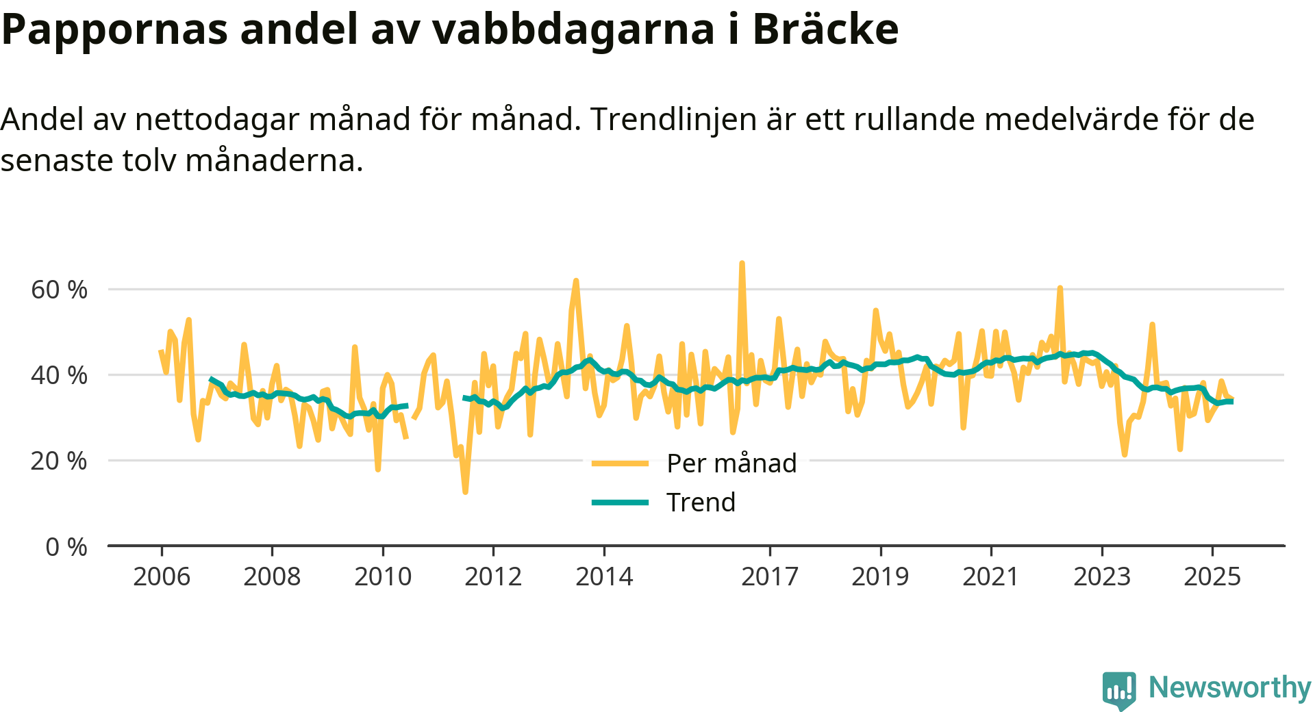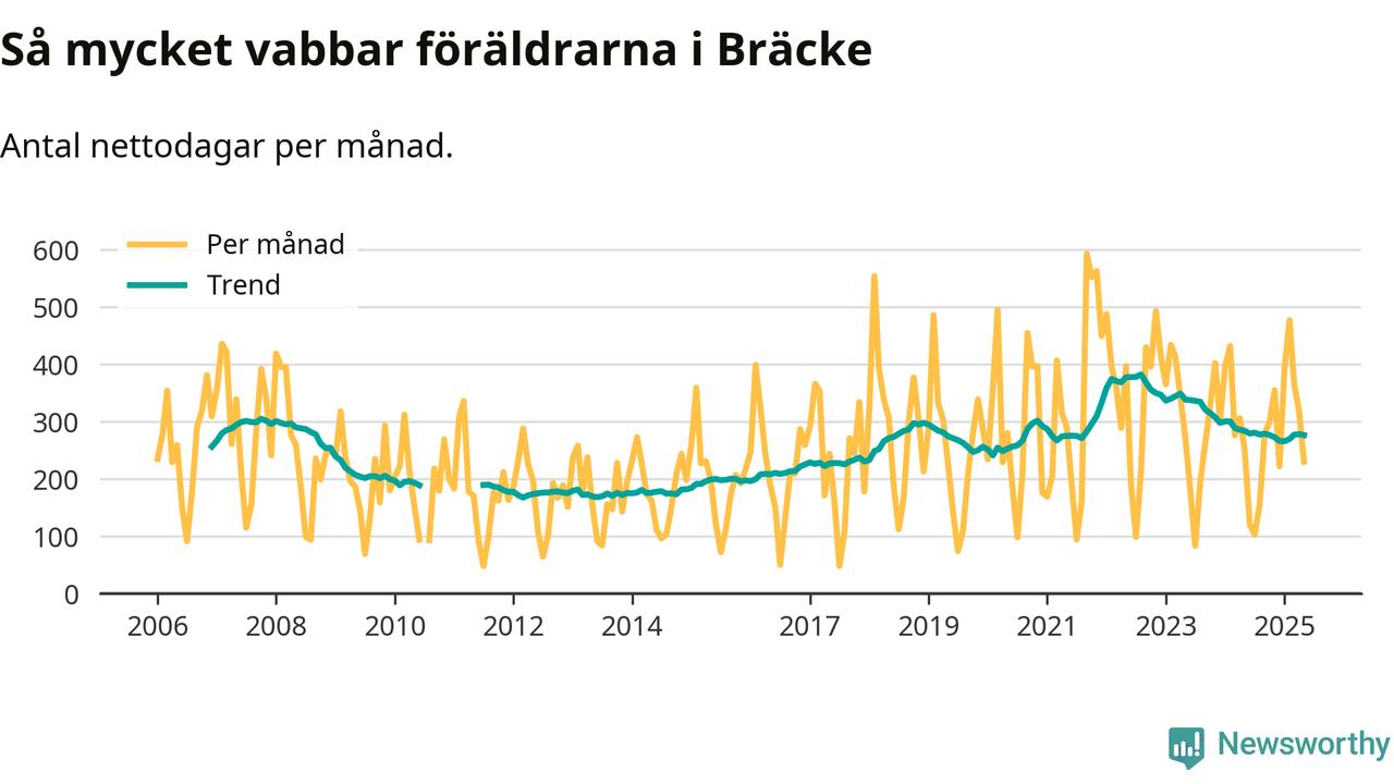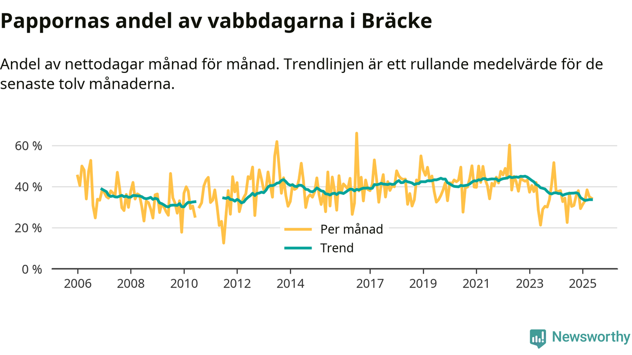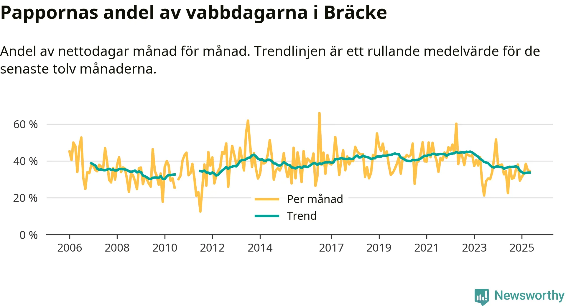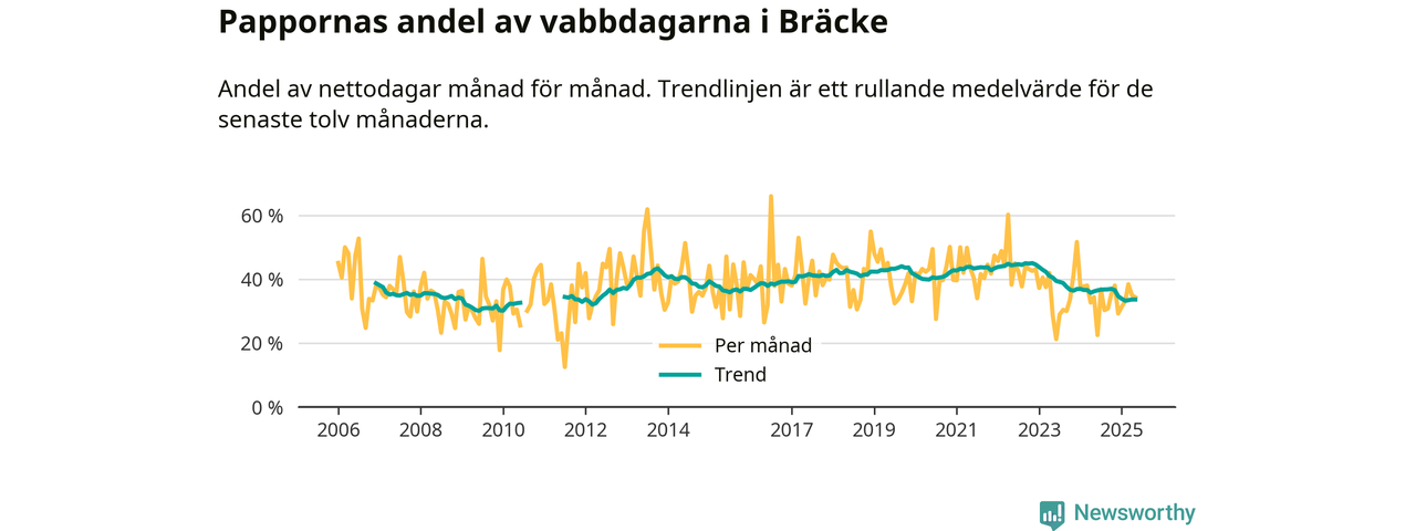 Bräcke ligger en bra bit från ett jämställt uttag. Under de senaste tolv månaderna har männen stått för 34 procent av all vabb i kommunen. I år har andelen varit lägre än på över 13 år.