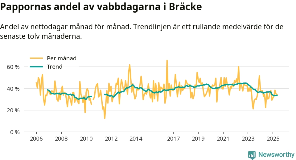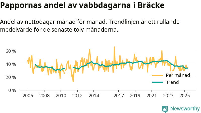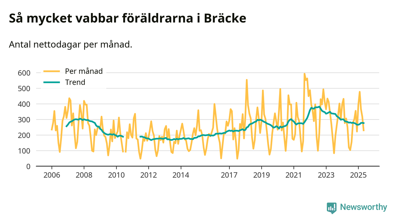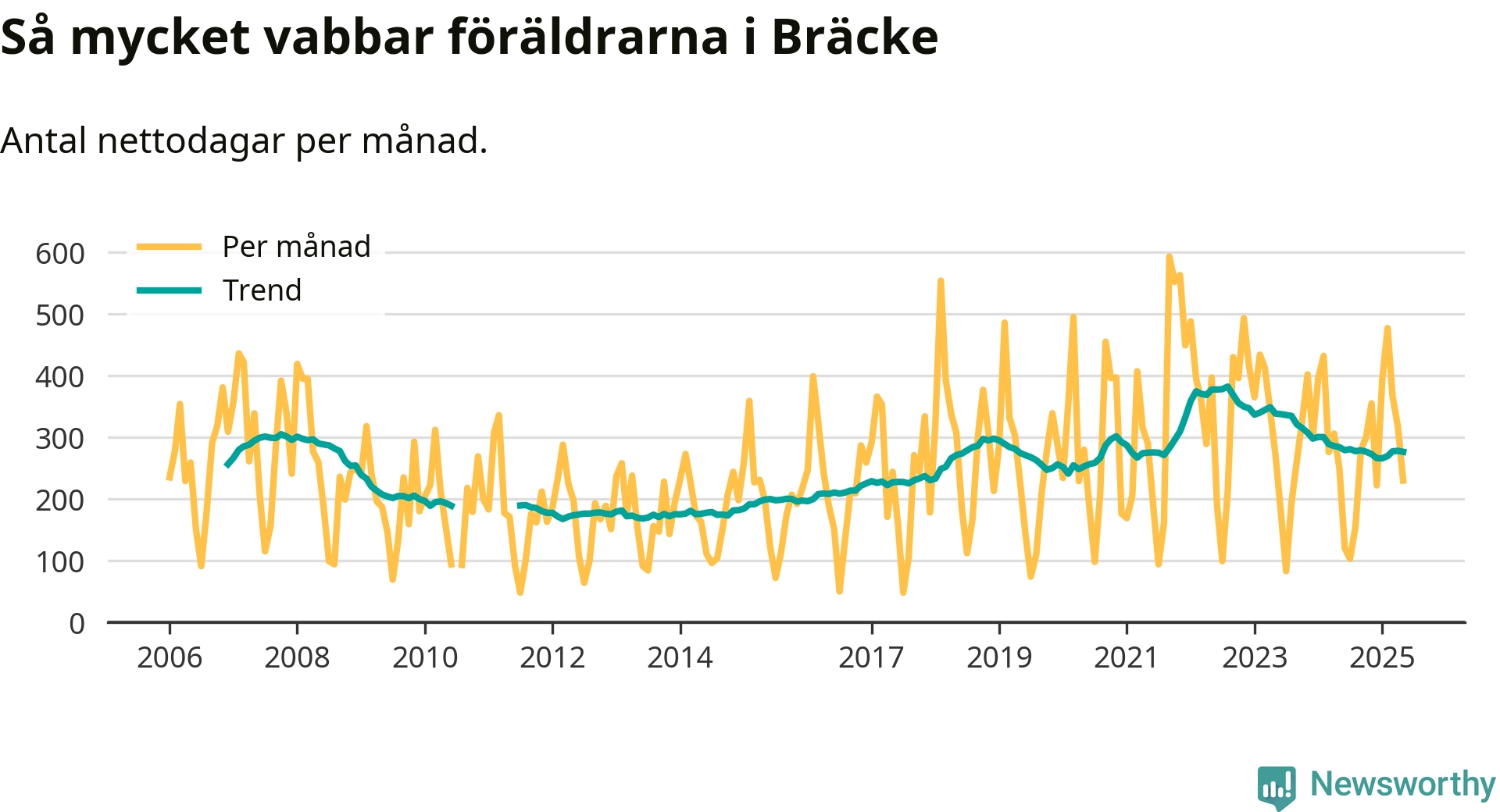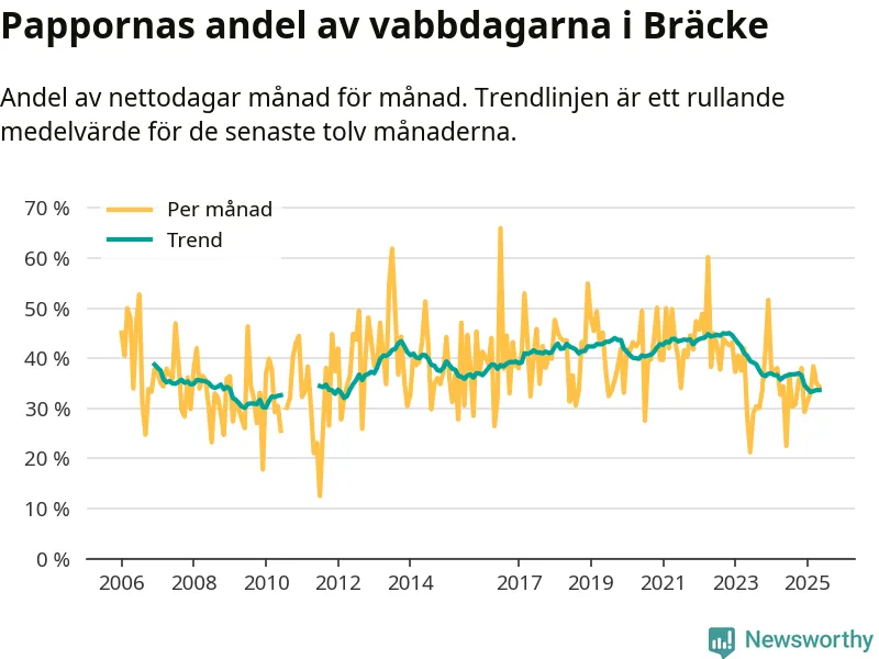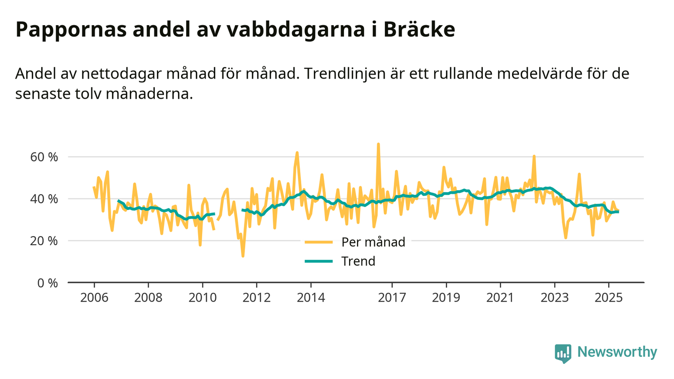 Bräcke ligger en bra bit från ett jämställt uttag. Under de senaste tolv månaderna har männen stått för 34 procent av all vabb i kommunen. I år har andelen varit lägre än på över 13 år.
