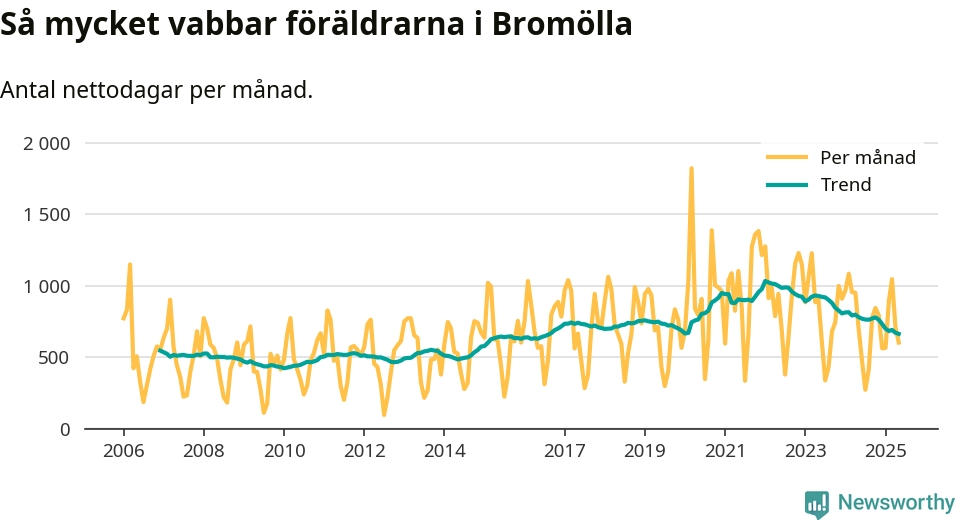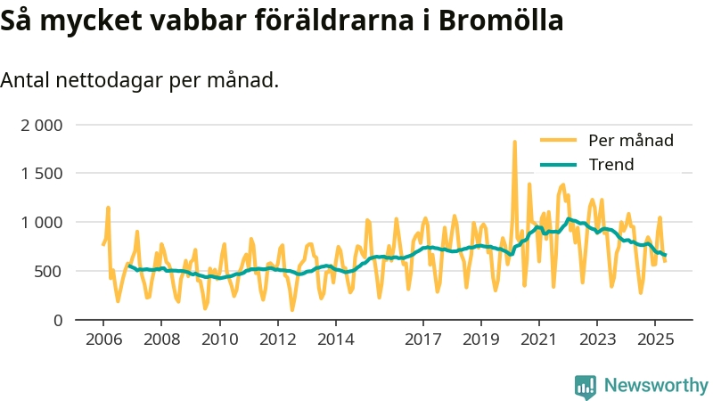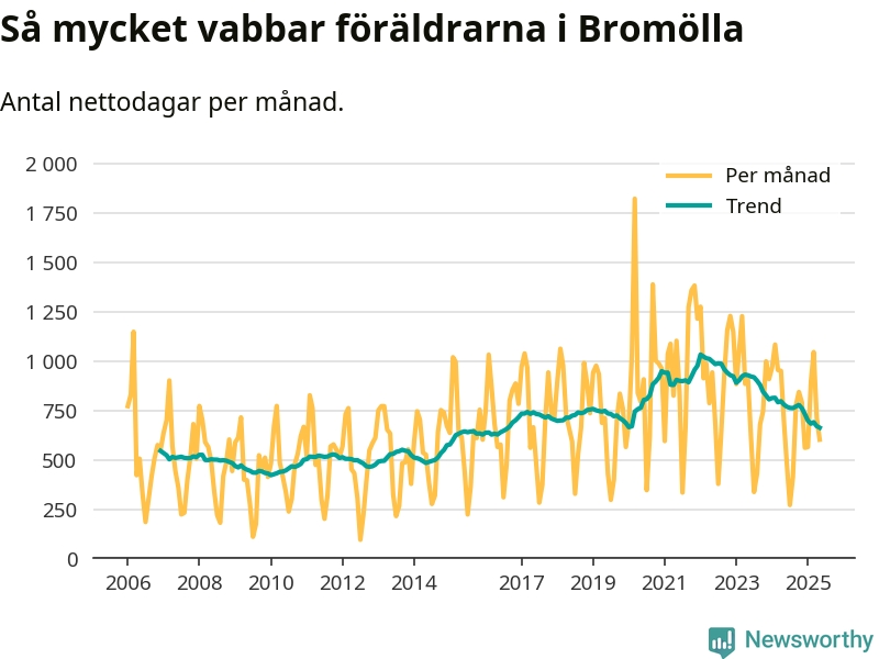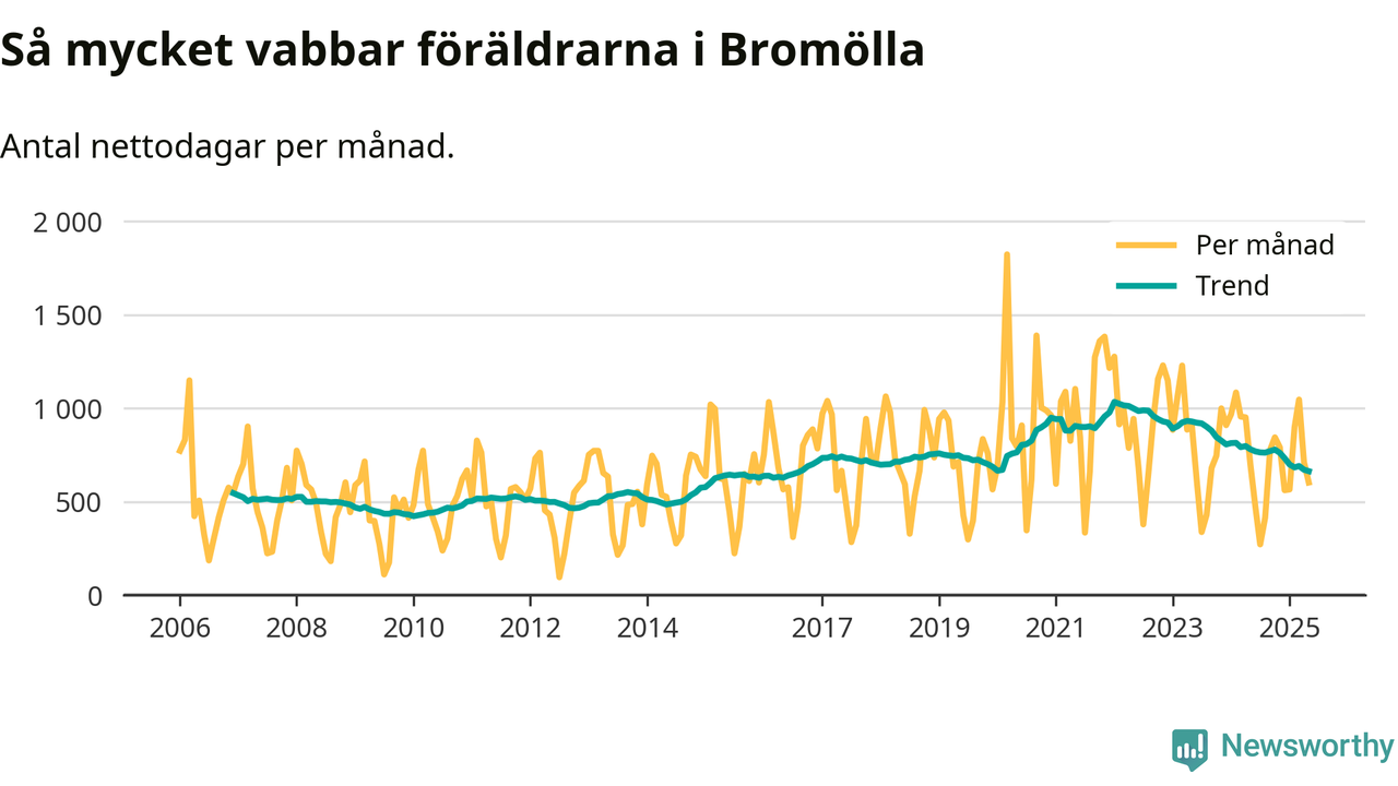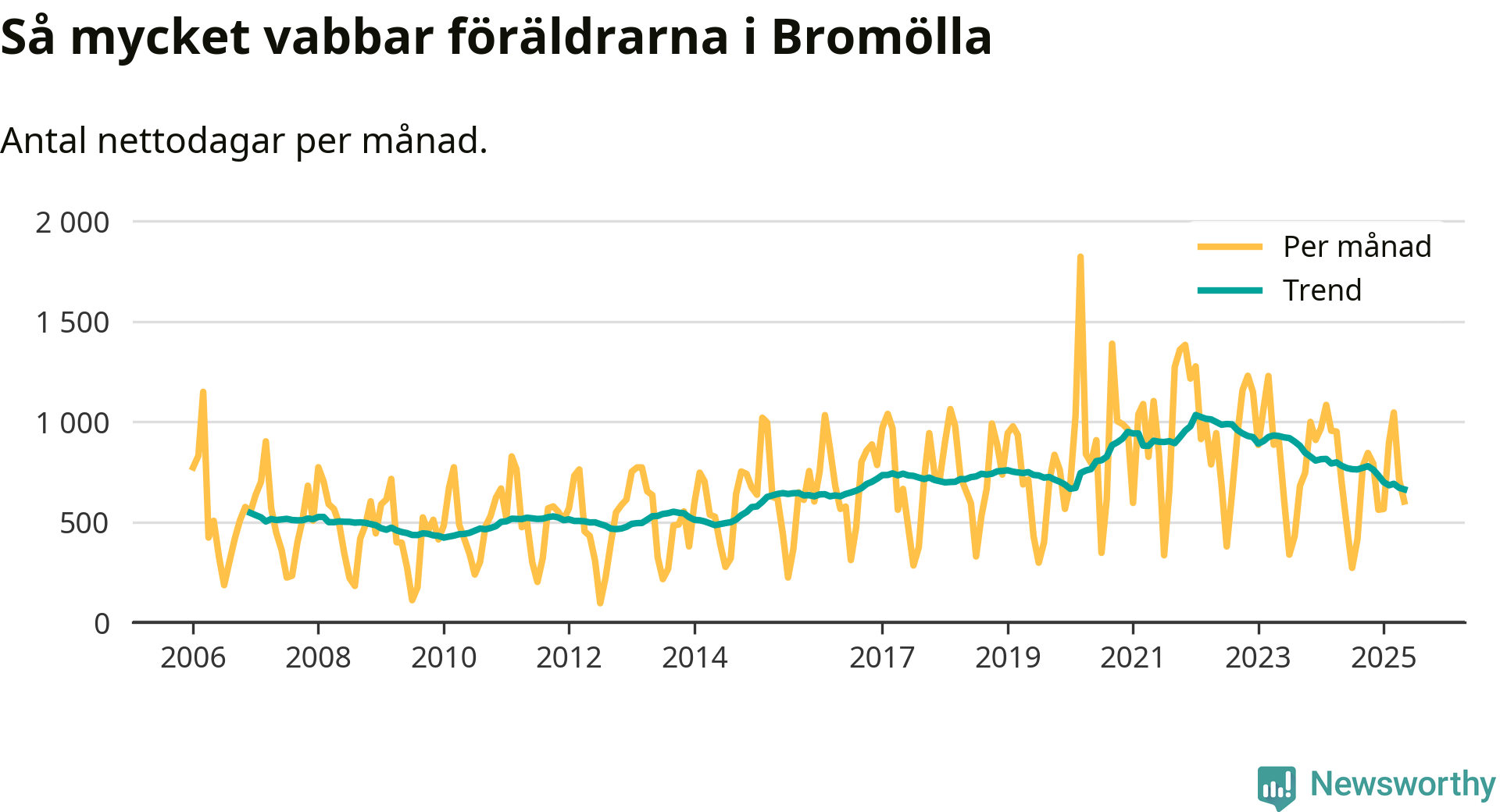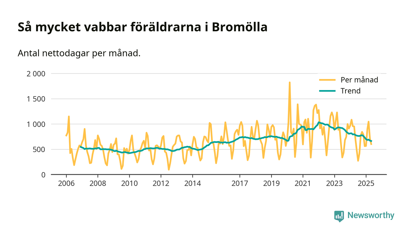 När coronapandemin drog in i mars 2020 peakade antalet vabbdagar både i Bromölla kommun och i riket som helhet. Under de senaste två åren har vabbuttaget börjat minska igen.
